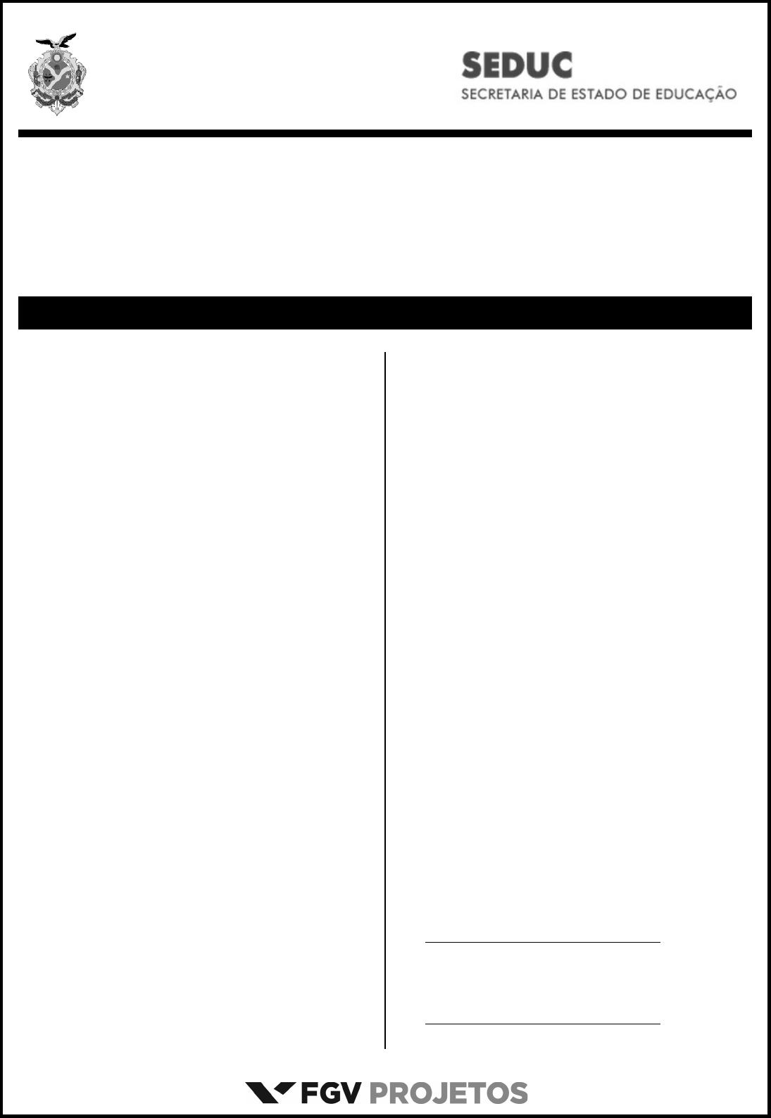 Governo do Estado do Amazonas Concurso Público 2014 Prova Escrita Objetiva e Discursiva Nível Superior – Professor Educação Especial – LIBRAS (20h e 40h) TIPO 1 – BRANCA Informações Gerais 1. Você receberá do fiscal de sala: a) uma folha de respostas destinada à marcação das respostas das questões objetivas; b) uma folha destinada à transcrição do texto definitivo da questão discursiva; c) esse caderno de prova contendo sessenta questões objetivas, cada qual com cinco alternativas de respostas (A, B, C, D e E) e uma questão discursiva. 2. Verifique se seu caderno está completo, sem repetição de questões ou falhas. Caso contrário, notifique imediatamente o fiscal de sala para que sejam tomadas as devidas providências. 3. As questões objetivas são identificadas pelo número situado acima do seu enunciado. 4. Ao receber a folha de respostas da prova objetiva e a folha de texto definitivo da questão discursiva, você deve: a) conferir seus dados pessoais, em especial seu nome, número de inscrição e o número do documento de identidade; b) ler atentamente as instruções para o preenchimento da folha de respostas das questões objetivas e para a transcrição do texto definitivo da questão discursiva; c) marcar na folha de respostas da prova objetiva e na folha de texto definitivo da questão discursiva o campo relativo à confirmação do tipo/cor de prova, conforme o caderno que você recebeu; d) assinar seu nome, apenas nos espaços reservados, com caneta esferográfica de tinta azul ou preta. 5. Durante a aplicação da prova não será permitido: a) qualquer tipo de comunicação entre os candidatos; b) levantar da cadeira sem a devida autorização do fiscal de sala; c) portar aparelhos eletrônicos, tais como bipe, telefone celular, agenda eletrônica, notebook, palmtop, receptor, gravador, máquina de calcular, máquina fotográfica digital, controle de alarme de carro etc., bem como relógio de qualquer modelo, óculos escuros ou quaisquer acessórios de chapelaria, tais como chapéu, boné, gorro etc. e, ainda, lápis, lapiseira (grafite), corretor líquido e/ou borracha. Tal infração poderá acarretar a eliminação sumária do candidato. 6. O preenchimento das respostas da prova objetiva e do texto definitivo da questão discursiva, de inteira responsabilidade do candidato, deverá ser feito com caneta esferográfica de tinta indelével de cor preta ou azul. Não será permitida a troca da folha de respostas e da folha de texto definitivo por erro do candidato. 7. O tempo disponível para a realização da prova é de quatro horas, já incluído o tempo para a marcação da folha de respostas da prova objetiva e a transcrição do texto definitivo da questão discursiva. 8. Reserve tempo suficiente para o preenchimento de suas respostas. Para fins de avaliação, serão levadas em consideração apenas as marcações realizadas na folha de respostas da prova objetiva e na folha de texto definitivo da questão discursiva, não sendo permitido anotar informações relativas às suas respostas em qualquer outro meio que não seja o próprio caderno de provas. 9. Somente depois de decorrida uma hora e meia do início da prova você poderá retirar-se da sala de prova, contudo sem levar o caderno de provas. 10. Somente no decorrer dos últimos sessenta minutos do período da prova, você poderá retirar-se da sala levando o caderno de provas. 11. Ao terminar a prova, entregue a folha de respostas da prova objetiva e a folha de texto definitivo da questão discursiva ao fiscal da sala e deixe o local de prova. Caso você se negue a entregar, será eliminado do concurso. 12. A FGV realizará a coleta da impressão digital dos candidatos na folha de respostas e na folha de texto definitivo. 13. Os candidatos poderão ser submetidos a sistema de detecção de metais quando do ingresso e da saída de sanitários durante a realização das provas. Ao sair da sala, ao término da prova, o candidato não poderá usar o sanitário. 14. Os gabaritos preliminares das provas objetivas serão divulgados no dia 02/09/2014, no endereço eletrônico www.fgv.br/fgvprojetos/concursos/seduc-am. 15. O prazo para interposição de recursos contra os gabaritos preliminares será das 0h00min do dia 03/09/2014 até as 23h59min do dia 04/09/2014, observado o horário oficial de Manaus, no endereço www.fgv.br/fgvprojetos/concursos/seduc-am, por meio do Sistema Eletrônico de Interposição de Recurso. Secretaria de Estado de Educação e Qualidade de Ensino do Estado do Amazonas – SEDUC/AM – 2014 FGV - Projetos Nível Superior – Professor – Educação Especial – LIBRAS (20h e 40h) Tipo 1 – Cor Branca – Página 3 Língua Portuguesa Texto Perfume de mulher hoje, no SBT Um estudante, atendendo a um anúncio, vai trabalhar como acompanhante de um coronel. De um coronel cego. De um coronel cego e inflexível. De um coronel cego, inflexível e aventureiro. De um coronel cego, inflexível, aventureiro e, no momento, em crise. De um coronel cego, inflexível, aventureiro, no momento em crise – mas que dança tango maravilhosamente bem. Faça como Chris O’Donnell, o estudante do filme. Atenda a esse anúncio. Assista a Tela de Sucessos hoje, às nove e meia da noite, no SBT. E descubra um coronel cego, inflexível, aventureiro, no momento em crise, que dança tango maravilhosamente bem e que ainda por cima tem a cara do Al Pacino. (JB, 19 de setembro de 1997) 01 Esse é um texto publicitário que pretende fazer com que o leitor assista a uma sessão de cinema num determinado canal de televisão. Sobre a estrutura desse texto, assinale a afirmativa correta. (A) A descrição predomina sobre a argumentação. (B) A atração é produzida pelos fatos narrados no filme. (C) O destaque é dado ao protagonista do filme, o estudante. (D) A referência ao ator Al Pacino tem força de argumento. (E) A composição do texto utiliza a estratégia do suspense. 02 A frase “