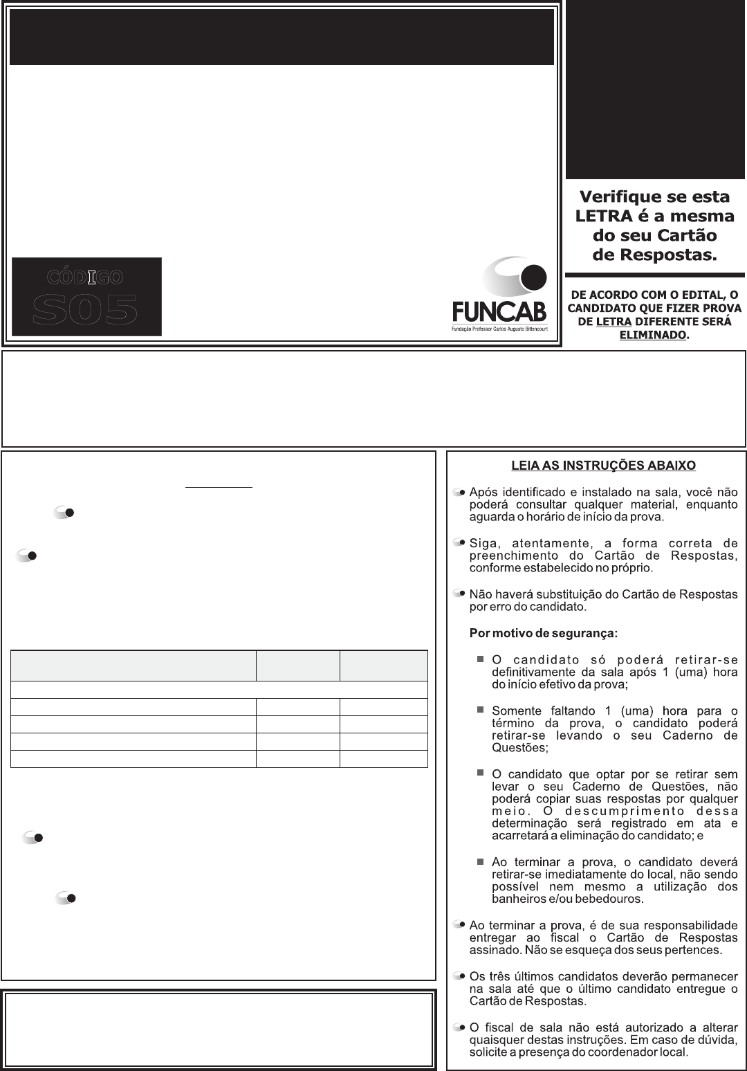 Técnico Especializado de Complexidade Intelectual Nível IV Ciências Contábeis – TRANSCREVA, EM ESPAÇO DETERMINADO NO SEU CARTÃO DE RESPOSTAS, A FRASE DE PAULO COELHO PARA EXAME GRAFOTÉCNICO “Imagine uma nova história para sua vida e acredite nela.” BOA PROVA! www.funcab.org VERIFIQUE SE ESTE MATERIAL ESTÁ EM ORDEM. CASO CONTRÁRIO, NOTIFIQUE IMEDIATAMENTE O FISCAL. RESERVE OS 30 (TRINTA) MINUTOS FINAIS PARA MARCAR SEU CARTÃO DE RESPOSTAS. ATENÇÃO DURAÇÃO DA PROVA: 3 horas e 30 minutos. ESTE CADERNO CONTÉM 55 (CINQUENTA E CINCO) QUESTÕES DE MÚLTIPLA ESCOLHA, CADA UMA COM 5 ALTERNATIVAS DE RESPOSTA – A, B, C, D e E – CONFORME DISPOSIÇÃO ABAIXO. PROCESSO SELETIVO SIMPLIFICADO para T S05 CÓDIGO EDITAL Nº 35/2015 MINISTÉRIO DA JUSTIÇA SECRETARIA EXTRAORDINÁRIA DE SEGURANÇA PARA GRANDES EVENTOS Disciplinas Quantidade de questões Valor de cada questão - Conhecimentos Básicos: Língua Portuguesa 15 1 Atualidades 5 1 Legislação e Ética na Administração Pública 5 1 - Conhecimentos Específicos 30 2,5 02 FUNCAB - Fundação Professor Carlos Augusto Bittencourt LÍNGUA PORTUGUESA Texto para responder às questões de 01 a 15. Lixo? Lixo serve pra tudo. A gente encontra a mobília da casa, cadeira pra pôr uns pregos e ajeitar, sentar. Lixo pra poder ter sofá, costurado, cama, colchão.Até televisão. É a vida da gente o lixão. E por que é que agora querem tirar ele da gente? O que é que eu vou dizer pras crianças? Que não tem mais brinquedo? Que acabou o calçado? Que não tem mais história, livro, desenho? E o meu marido, o que vai fazer? Nada? Como ele vai viver sem as garrafas, sem as latas, sem as caixas? Vai perambular pela rua, roubar pra comer? E o que eu vou cozinhar agora? Onde vou procurar tomate, alho, cebola? Com que dinheiro vou fazer sopa, vou fazer caldo, vou inventar farofa? Fale, fale. Explique o que é que a gente vai fazer da vida? O que a gente vai fazer da vida? Não pense que é fácil. Nem remédio pra dor de cabeça eu tenho. Como vou me curar quando me der uma dor no estômago, uma coceira [...]? Vá, me fale, me diga, me aconselhe. Onde vou encontrar tanto remédio bom? E esparadrapo e band-aid e seringa? O povo do governo devia pensar três vezes antes de fazer isso com chefe de família. Vai ver que eles tão de olho [...] aqui. Nesse terreno. Vai ver que eles perderam alguma coisa. É. Se perderam, a gente acha. A gente cata. A gente encontra. Até bilhete de loteria, lembro, teve gente que achou. . Vai ver que é isso, descobriram que lixo dá lucro, que pode dar sorte, que é luxo, que lixo tem valor. Por exemplo, onde a gente vai morar, é? Onde a gente vai morar? Aqueles barracos, tudo ali em volta do lixão, quem é que vai levantar? [...] Esse negócio de prometer casa que a gente não pode pagar é balela, é conversa pra boi morto. Eles jogam a gente é num esgoto. Pr'onde vão os coitados desses urubus?Acachorra, o cachorro? [...] Isso tudo aqui é uma festa. Os meninos, as meninas naquele alvoroço, pulando em cima de arroz, feijão. Ajudando a escolher. A gente já conhece o que é bom de longe, só pela cara do caminhão. Tem uns que vêm direto de supermercado, açougue. Que dia na vida a gente vai conseguir carne tão barato? Bisteca, filé, chã-de-dentro – o moço tá servido? Amoça? Os motoristas já conhecem a gente. Têm uns que até guardam com eles a melhor parte. É coisa muito boa, desperdiçada. Tanto povo que compra o que não gasta – roupa nova, véu, grinalda. [...] Agora, o que deu na cabeça desse povo? A gente nunca deu trabalho. A gente não quer nada deles que não esteja aqui jogado, rasgado, atirado. A gente não Muribeca Vai ver que é isso, coisa da Caixa Econômica quer outra coisa senão esse lixão pra viver. Esse lixão para morrer, ser enterrado. Pra criar os nossos filhos, ensinar o nosso ofício, dar de comer. Pra continuar na graça de Nosso Senhor Jesus Cristo. Não faltar brinquedo, comida, trabalho. Não, eles nunca vão tirar a gente deste lixão. Tenho fé em Deus, com a ajuda de Deus eles nunca vão tirar a gente deste lixo.Eles dizem que sim, que vão. Mas não acredito. Eles nunca vão conseguir tirar a gente deste paraíso. FREIRE, Marcelino. . Cotia:Ateliê, 2000. p. 23-5.Angu de sangue Sobre o texto leia as afirmativas a seguir. I. A frase que inicia o texto expressa uma ideia contrária ao senso comum, por isso provoca estranhamento. II. Não há trechos em que descreve o protagonista: o leitor o conhece apenas por sua fala. III. A presença dos interlocutores é concretizada no texto, através das reações que a fala da personagem provoca. Está correto apenas o que se afirma em: A) I. B) I e II. C) I e III. D) II e III. E) III. Questão 01 Releia: “E por que é que agora querem tirar ele da gente?” “Agora, o que deu na cabeça desse povo?” Pela leitura dessas frases, tem-se a indicação de que: A) o fato de os produtos virem do lixo interfere no aproveitamento deles pelos moradores do lixão. B) o lixão a céu aberto polui o ambiente, causando danos graves e/ou irreversíveis ao ambiente e à saúde. C) foi tomada alguma medida quanto ao lixão de que trata o texto. D) os lixões não têm utilidade, não servem para nada. E) as pessoas veem o lixão como um “paraíso”, pois é dele que tiram seu sustento. Questão 02 03 FUNCAB - Fundação Professor Carlos Augusto Bittencourt Na frase, “E por que é que agora querem tirar ele da gente?” há, de acordo com a norma culta, um problema de: A) mau emprego do pronome oblíquo. B) falta de concordância adequada. C) ausência de pontuação correta. D) inadequação vocabular. E) emprego incorreto de forma verbal. Questão 05 Em “O que é QUE eu vou dizer pras crianças?”, o componente destacado é um(a): A) pronome apassivador. B) conjunção subordinativa. C) partícula expletiva. D) pronome relativo. E) pronome interrogativo. Questão 06 “A gente não quer outra coisa senão esse lixã