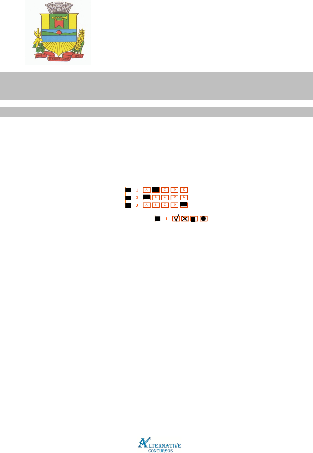 PREFEITURA DE DOUTOR MAURÍCIO CARDOSO ESTADO DO RIO GRANDE DO SUL EDITAL DE CONCURSO PÚBLICO N.º 005/2013 10 DE MARÇO DE 2013 CARGO: Agente Patrimonial INSTRUÇÕES Este Caderno de Questões contém 25 questões, constituídas com cinco opções (A, B, C, D, E) e uma única resposta correta. Em caso de divergência de dados e/ou de defeito no Caderno de Questões, solicite providências ao fiscal de sala. Você receberá juntamente com o Caderno de Questões, o Gabarito, o qual conterá o Cartão de Identificação e o Cartão Resposta. O Cartão de Identificação deverá ser preenchido atentamente com Nome, Nº de Inscrição e Assinatura. As respostas do Caderno de Questões deverão ser transcritas para o Cartão Resposta, na ordem de 01 a 25, com caneta esferográfica de tinta azul ou preta, de acordo com as orientações de preenchimento abaixo: Formas Incorretas: O Cartão Resposta é o único documento válido para a correção das provas e o não preenchimento correto implica a anulação da questão. Não será fornecido, em hipótese alguma, novo Cartão Resposta por erro de preenchimento por parte do candidato. O Gabarito é insubstituível e de inteira responsabilidade do candidato, por isso não deve ser amassado, dobrado, rasgado ou rasurado. Durante a realização das provas não será permitida qualquer consulta a materiais, sejam didáticos ou eletrônicos. O candidato que for flagrado fazendo uso desses materiais estará automaticamente eliminado do Concurso Público. A interpretação das questões é parte integrante da prova, não sendo permitido aos fiscais de sala auxiliar na interpretação. A saída da sala de prova, com a entrega do Caderno de Questões e Gabarito, somente será permitida após transcorrido 45 minutos do início da mesma. Ao concluir a prova e o preenchimento do Cartão Resposta, entregue o Caderno de Questões e o Gabarito ao fiscal de sala. A não entrega de qualquer um dos itens especificados acima, implicará na eliminação do candidato do Concurso Público. O tempo de duração total da prova é de 3 horas, incluído o tempo para preenchimento do Gabarito. O candidato poderá anotar suas respostas no gabarito disponível na última página da prova escrita objetiva para conferir com o gabarito oficial. Os 3 últimos candidatos ao terminarem a prova deverão permanecer juntos em sala para, juntamente com os fiscais de sala, conferirem os Gabaritos, assinarem a folha ata e o lacre dos envelopes que guardarão os Cartões de Identificação, os Cartões Resposta e os Cadernos de Questões. A desobediência a qualquer uma das determinações constantes do Edital de Concurso Público, do presente Caderno de Questões e de preenchimento do Gabarito, implicará na eliminação do candidato do Concurso Público. O gabarito preliminar e as provas escritas objetivas estarão disponíveis, no dia 10 de março de 2013, após as 21h00min, no site www.alternativeconcursos.com.br. É facultado ao candidato interpor recurso contra as questões da prova escrita objetiva através do email recursos@alternativeconcursos.com.br, no prazo de 11 a 15 de março de 2013. www.pciconcursos.com.br www.pciconcursos.com.br www.pciconcursos.com.br www.pciconcursos.com.br 2 Língua Portuguesa O poema a seguir servirá como base para responder as questões 01 e 02: O PÁSSARO INCUBADO O pássaro preso na gaiola é um geógrafo quase alheio: Prefere, do mundo que o cerca, não as arestas: o meio. É isso que o diferencia dos outros pássaros: ser duro. Habita cada momento que existe dentro do cubo. Ao pássaro preso se nega a condição acabado. Não é um pássaro que voa: É um pássaro incubado. Falta a ele: não espaços nem horizontes nem casas: Sobra-lhe uma roupa enjeitada que lhe decepa as asas. O pássaro preso é um pássaro recortado de seu domínio: Não é dono de onde mora, nem mora onde é inquilino. CACASO. Beijo na boca e outros poemas. São Paulo: Brasiliense, 1985. 01) De acordo com o poema: I. Trata-se de um texto literário. II. Ao usar a metáfora “roupa enjeitada” o autor refere-se à gaiola. III. O pássaro incubado torna-se, pelo meio em que vive um pássaro ditoso. a) Somente I e III estão corretos. b) Somente I e II estão corretos. c) Somente II e III estão corretos. d) Somente III está correto. e) Todos estão corretos. 02) “Falta a ele: não espaços nem horizontes nem casas: Sobra-lhe uma roupa enjeitada que lhe decepa as asas..” A figura de linguagem presente no verso sublinhado é: a) Metonímia. b) Antítese. c) Pleonasmo. d) Sinestesia. e) Polissíndeto. 03) Das assertivas a seguir somente uma apresenta erro em relação ao emprego da crase. Identifique-a: a) Ele seguiu o plano à risca, pois sabia que o chefe era rigoroso. b) À noite, sempre batia aquela saudade da infância. c) Quero resolver esse problema e deixar tudo às claras. d) Quando adentramos o quarto esta às escuras. e) A moça passou a noite de núpcias à bordo de um lindo navio. 04) “Tom Cruise é um ator célebre.” Reescrevendo a frase utilizando o superlativo absoluto sintético da palavra destacada temos: a) Tom Cruise é um ator celeberríssimo. b) Tom Cruise é um ator celeberísimo. c) Tom Cruise é um ator celebérrimo. d) Tom Cruise é um ator celeberílimo. e) Tom Cruise é um ator celeberrílimo. 05) Qual das palavras sublinhadas não corresponde a um verbo de ligação: a) A música daquele compositor virou tema de novela. b) O castelo tornou-se um lugar indescritível. c) A fisionomia das gêmeas continua bem diferente. d) O folião estava na avenida. e) O meu cachorro foi o mais comportado na competição. Matemática 06) Uma locomotiva percorreu 35 km em seu primeiro dia de trabalho. No segundo dia percorreu 70 km. No terceiro dia de trabalho percorreu 140 km e assim por diante. Considerando que no seu último dia de trabalho a locomotiva percorreu 4480 km, quantos dias ela trabalhou? a) 6 b) 7 c) 8 d) 9 e) 10 www.pciconcursos.com.br www