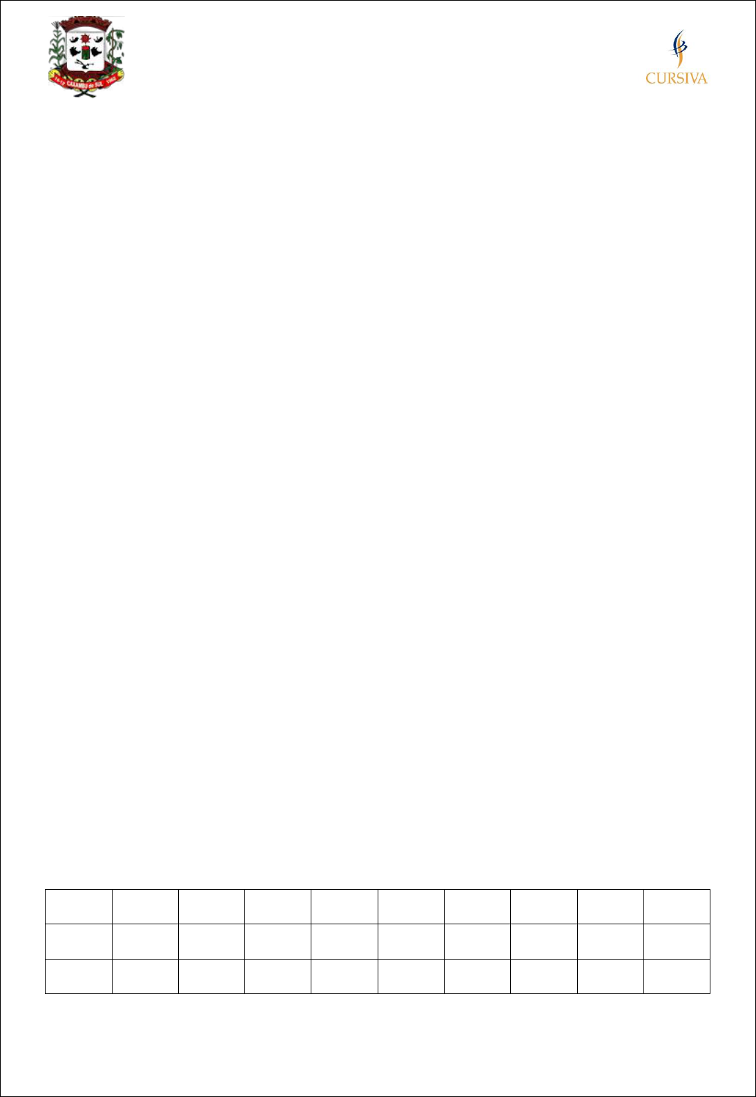 ESTADO DE SANTA CATARINA MUNICÍPIO DE CAXAMBU DO SUL PROCESSO SELETIVO Nº003/2017 Edital nº 03, de 22 de dezembro de 2017. CARGO: PROFESSOR DE EDUCAÇÃO FÍSICA CANDIDATO (A): ______________________________________________ FICA TERMINANTEMENTE PROIBIDO AOS CANDIDATOS: ✓ Comunicar-se com outros candidatos. ✓ Fazer qualquer tipo de consulta ou uso de equipamentos eletrônicos. ✓ Sair com material referente à prova. ✓ Ausentar-se do local da prova sem o acompanhamento de um fiscal. ORIENTAÇÕES IMPORTANTES 01 - Este caderno contém questões do tipo múltipla escolha. 02 - Verifique se o caderno contém falhas: folhas em branco, má impressão, páginas trocadas, numeração errada, etc. Encontrando falhas, levante a mão. O Fiscal o atenderá e trocará o seu caderno. 03 - Cada questão do tipo MÚLTIPLA ESCOLHA tem 4 (quatro) alternativas (A - B - C – D). Apenas 01 (uma) resposta é correta. Não marque mais de uma resposta para a mesma questão, nem deixe nenhuma delas sem resposta. Se isso acontecer, a questão será anulada. 04 - Para marcar as respostas definitivas no seu CARTÃO RESPOSTA do tipo MÚLTIPLA ESCOLHA, use caneta esferográfica com tinta preta. NÃO utilize caneta com tinta vermelha ou lápis. 05 - Ao receber o CARTÃO RESPOSTA preencha-o corretamente. 06 - Tenha cuidado na marcação da Folha de Respostas, pois ela não será substituída em hipótese alguma. 07 - Confira e assine a Folha de Respostas, antes de entregá-la ao Fiscal. NA FALTA DA ASSINATURA, A SUA PROVA SERÁ ANULADA. 08 – 40 minutos após o início das provas, você poderá retirar-se da sala SEM LEVAR ESTE CADERNO. 09 - Em nenhuma hipótese, o candidato poderá levar o Caderno de Provas e/ou o Cartão de Resposta. 10 - No encerramento das provas, há necessidade de pelo menos três candidatos presentes na sala. Isso faz parte das normas para transparência na fiscalização do Processo Seletivo. 11. A duração da prova será de Três Horas. Anote aqui seu Gabarito. 1. 2. 3. 4. 5. 6. 7. 8. 9. 10. 11. 12. 13. 14. 15. 16. 17. 18. 19. 20. 21. 22. 23. 24. 25. 26. 27. 28. 29. 30. www.pciconcursos.com.br www.pciconcursos.com.br 01. Assinale a alternativa que apresenta pronomes indefinidos variáveis: a) Tudo – Nada. b) Certa – Certos. c) Alguém – Ninguém. d) Cada – Algo. 02. A crase é facultativa em qual das alternativas abaixo: a) Começou a falar. b) Quero bife à milanesa. c) Dirigiu-se à Espanha. d) Andou a pé. 03. “Os dois apenas, entre céu e terra, Sentimos o espetáculo do mundo” (Carlos Drummond de Andrade) Nos versos acima ocorre: a) Silepse de gênero. b) Silepse de número. c) Onomatopéia. d) Silepse de pessoa. 04. “As casas, as ruas, as praças e os bares estavam desertos.” Na frase acima as vírgulas foram usadas para: a) Separar termos da mesma função. b) Isolar o aposto. c) Isolar o vocativo. d) Isolar adjuntos adverbiais isolados. 05. Consiste na inversão de sentido, afirmando-se o contrário do que se pensa, visando á sátira ou à ridicularização: a) Ironia. b) Hipérbole. c) Eufemismo. d) Zeugma. 06. Analise as três distâncias abaixo. É correto afirmar que a soma das três distâncias, em metros, é igual a: Distância I 0,02 km Distância II 150 cm Distância III 1220 mm a) 227,2 metros. b) 22,72 metros. c) 2,272 metros. d) 0,2272 metros. 07. Acerca dos números primos, é incorreto afirmar que: a) O número 13 é um número primo. b) Os números 10, 20 e 21 são primos entre si. c) O número 1 não é um número primo, pois é divisível por 1, somente, ou seja, não tem dois divisores distintos; d) O número 67 não é um número primo. 08. Uma aplicação de R$ 11.250,00 durante 3 meses a uma taxa de juros compostos de 4% ao mês rende um montante igual a: a) R$ 12.654,72 b) R$ 12.350,52 c) R$ 11.485,26 d) R$ 11.160,00 09. Considerando que uma carga de areia pesa 15320 quilos, é correto afirmar que, em gramas, essa quantia equivale a: a) 15,32 t b) 153,2 t c) 1532 t d) 15320 t 10. Carlos tem uma reserva de R$ 5.000,00 e economiza, por mês, a quantia de R$ 1.250,00 para conseguir adquirir um terreno. Considerando que o terreno que Carlos deseja comprar custa R$ 45.000,00, é correto afirmar que o tempo total necessário para reunir o valor faltante será de: a) 30 meses. b) 32 meses. c) 35 meses. d) 36 meses. 11. Analise as afirmativas abaixo, considerando o que reza o artigo 3º da Lei de Diretrizes e Bases da Educação Nacional. I - igualdade de condições para o acesso e permanência na escola; II - liberdade de aprender, ensinar, pesquisar e divulgar a cultura, o pensamento, a arte e o saber; III - pluralismo de idéias e de concepções pedagógicas; www.pciconcursos.com.br IV - respeito à liberdade e apreço à tolerância; V - coexistência de instituições públicas e privadas de ensino; Podemos afirmar que a) Todas as afirmativas são verdadeiras; b) Todas as afirmativas são falsas; c) Estão corretas apenas as afirmativas I, III e V; d) Estão corretas apenas as afirmativas I e V. 12. De acordo com a LDB a verificação do rendimento escolar observará os seguintes critérios, exceto: a) avaliação contínua e cumulativa do desempenho do aluno, com prevalência dos aspectos quantitativos e dos resultados ao longo do período sobre os de eventuais provas finais; b) possibilidade de aceleração de estudos para alunos com atraso escolar; c) possibilidade de avanço nos cursos e nas séries mediante verificação do aprendizado; d) aproveitamento de estudos concluídos com êxito. 13. De acordo com o artigo 13 da LDB, é incorreta a alternativa: Os docentes incumbir-se-ão de: a) participar da elaboração da proposta pedagógica do estabelecimento de ensino; b) elaborar e cumprir plano de trabalho, segundo a proposta pedagógica do estabelecimento de ensino; c) zelar pela aprendizagem dos alunos; d) estabelecer estratégias de recuperação para os alunos de menor rendimento somente quando a escola solicitar. 14. Sobre o 
