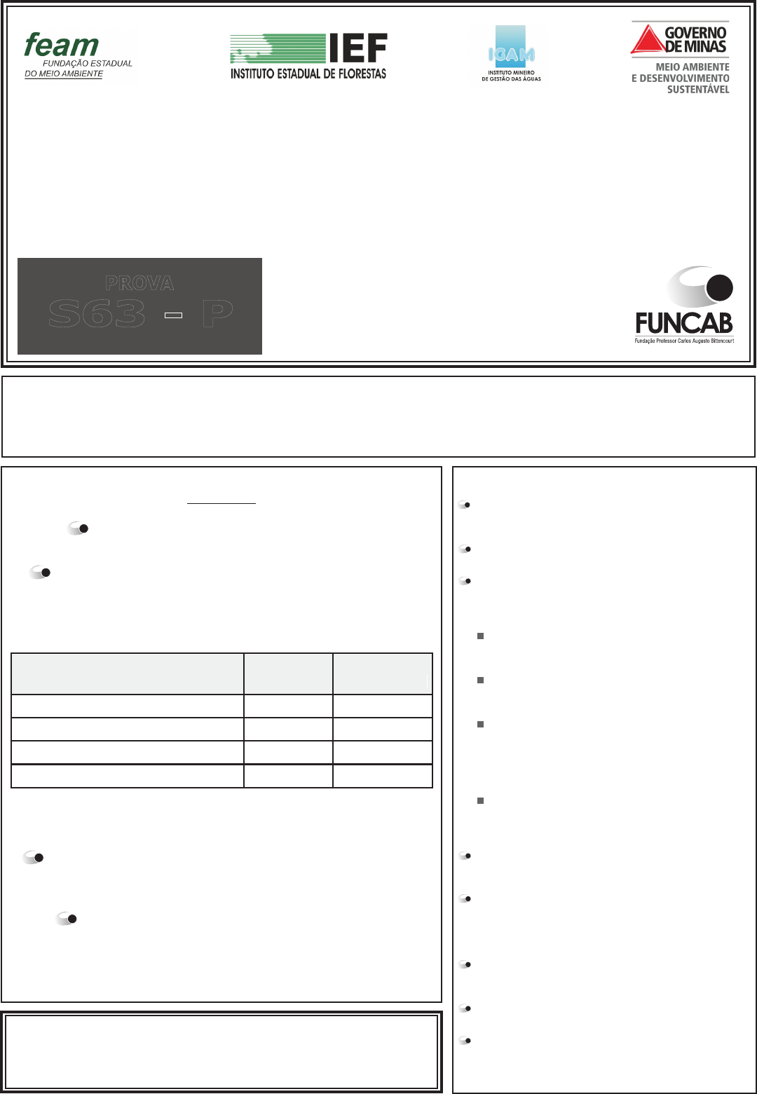 TRANSCREVA, EM ESPAÇO DETERMINADO NO SEU CARTÃO DE RESPOSTAS, A FRASE DO ESCRITOR GUIMARÃES ROSA PARA EXAME GRAFOTÉCNICO “A água de boa qualidade é como a saúde ou a liberdade: só tem valor quando acaba.” BOA PROVA! www.funcab.org VERIFIQUE SE ESTE MATERIAL ESTÁ EM ORDEM, CASO CONTRÁRIO, NOTIFIQUE IMEDIATAMENTE O FISCAL. RESERVE OS 30 (TRINTA) MINUTOS FINAIS PARA MARCAR SEU CARTÃO DE RESPOSTAS. ATENÇÃO DURAÇÃO DA PROVA: 5 horas. ESTE CADERNO CONTÉM 60 (SESSENTA) QUESTÕES DE MÚLTIPLA ESCOLHA, CADA UMA COM 4 ALTERNATIVAS DE RESPOSTA – A, B, C e D – CONFORME DISPOSIÇÃO ABAIXO, e REDAÇÃO: Geografia CONCURSO PÚBLICO para o cargo de Analista Ambiental IGAM– GOVERNO DO ESTADO DE MINAS GERAIS SECRETARIA DE ESTADO DE MEIO AMBIENTE E DESENVOLVIMENTO SUSTENTÁVEL – SEMAD PROVA S63 - P Verifique se o tipo de prova deste caderno de questões confere com o seu cartão de respostas. ATENÇÃO: Após identificado e instalado na sala, você não poderá consultar qualquer material enquanto aguarda o horário de início da prova. Siga, atentamente, a forma correta de preenchimento do Cartão de Respostas, conforme estabelecido no próprio. Não haverá substituição do Cartão de Respostas por erro do candidato. O candidato só poderá retirar-se definitivamente da sala após 1 (uma) hora do início efetivo da prova; Somente faltando 1 (uma) hora para o término da prova, o candidato poderá retirar-se levando o seu Caderno de Questões; O candidato que optar por se retirar sem levar o seu Caderno de Questões não poderá copiar s u a s r e s p o s t a s p o r q u a l q u e r m e i o . O d e s c u m p r i m e n t o d e s s a d e t e r m i n a ç ã o s e r á registrado em ata e acarretará a eliminação do candidato; e Ao terminar a prova, o candidato deverá se retirar imediatamente do local, não sendo possível nem m e s m o a u t i l i z a ç ã o d o s b a n h e i r o s e / o u bebedouros. Ao terminar a prova, é de sua responsabilidade entregar ao fiscal o Cartão de Respostas assinado e Folha de Resposta da Redação. Não se esqueça dos seus pertences. A Redação deverá ser desenvolvida na Folha de Respostas, personalizada e desidentificada pelo candidato, que deverá destacar o canhoto que contém seus dados cadastrais. A Folha de Respostas da Redação é o único documento válido para a correção. O preenchimento da Folha de Respostas será de sua inteira responsabilidade. Não haverá substituição da Folha de Respostas por erro do candidato. Os três últimos candidatos deverão permanecer na sala até que o último candidato entregue o Cartão de Respostas. O fiscal de sala não está autorizado a alterar qualquer dessas instruções. Em caso de dúvida, solicite a presença do coordenador local. Por motivo de segurança: LEIA AS INSTRUÇÕES ABAIXO Disciplinas Quantidade de questões Valor de cada questão Língua Portuguesa 15 1 Legislação Ambiental 10 1 Gestão Pública e Noções de Direito 15 1 Conhecimentos Específicos 20 1 www.pciconcursos.com.br 02 LÍNGUA PORTUGUESA FUNCAB - Fundação Professor Carlos Augusto Bittencourt Leia o texto abaixo e responda às questões propostas. Verdade ou mentira, o que eu vou contar aqui é meio esquisito e merece ser lido com alguma atenção. [...] Por mais impressionante que seja a história, procure controlar os nervos. [...] Houve uma mulher que amou um amor de verdade. Por mais estranho que pareça, foi isso que me contaram exatamente. Um dia ela conheceu um homem, então descobriu que seu amanhecer já não era o mesmo, e os dois trocaram juras eternas, e, o que é mais fantástico ainda, essa mulher, pelo que consta, amou mesmo esse homem, só a ele, muito e sempre. Parece que ele não era especialmente bonito, rico nem inteligente, era boa gente apenas e (segundo fontes seguras) tinha um sorriso engraçado. Ela também era uma pessoa normal (pelo menos aparentemente) e só apresentou esse comportamento estapafúrdio em toda a sua vida. Os motivos que levaram essa mulher a amar tanto esse tal homem, de forma tão descabida e excessiva, nunca ficaram provados. Primeiro levantaram a hipótese de um surto de loucura passageiro. (Um atestado de insanidade resolveria a questão sem a necessidade de uma análise mais apurada.) Não era. [...] O fato foi tomando proporções maiores à medida que o tempo passava e o amor daquela mulher não diminuía. [...] Houve quem apostasse que aquele amor todo era mentira da mulher, com a clara intenção de aparecer na mídia. [...] A mulher foi ficando meio assustada com aquela agonia de gente e de repórter, confere daqui, examina de lá, até que acabou fugindo, coitada.Aquilo já estava impossível. O homem ficou muito triste, é óbvio, por perder um amor assim tão interessante. Há quem garanta que até hoje ele passa o dia bebendo na esquina e chora constantemente. Dela, nunca mais se teve notícia. Possivelmente se auto exilou em algum lugar ignorado. Verdade ou mentira flashes FALCÃO, Adriana. São Paulo: Planeta, 2003. p. 43-44. (Fragmento) O doido da garrafa. Questão 01 Pode-se afirmar que a intenção da autora não é destacar aspectos individuais das personagens, mas sim chamar atenção do le i tor para um comportamento que os destaca do conjunto de seres humanos, porque: A) o foco do texto está no fato, aparentemente inacreditável, de terem vivido um grande amor. B) o caráter extraordinário das personagens está em suas características particulares. C) mais importante do que o amor é a caracterização da verdade e da mentira. D) o objetivo do texto é chamar atenção para a reação amorosa da mulher . Questão 02 Vários artigos foram utilizados para fazer referência às personagens do texto. Observe os pares de enunciados abaixo. I. Houve UMA mulher que amou um amor de verdade./ A mulher foi ficando meio assustada com aquela agonia de gente [...] II. [...] ela conheceu UM homem [...]/ O homem ficou muito triste é óbvio [...] Por q
