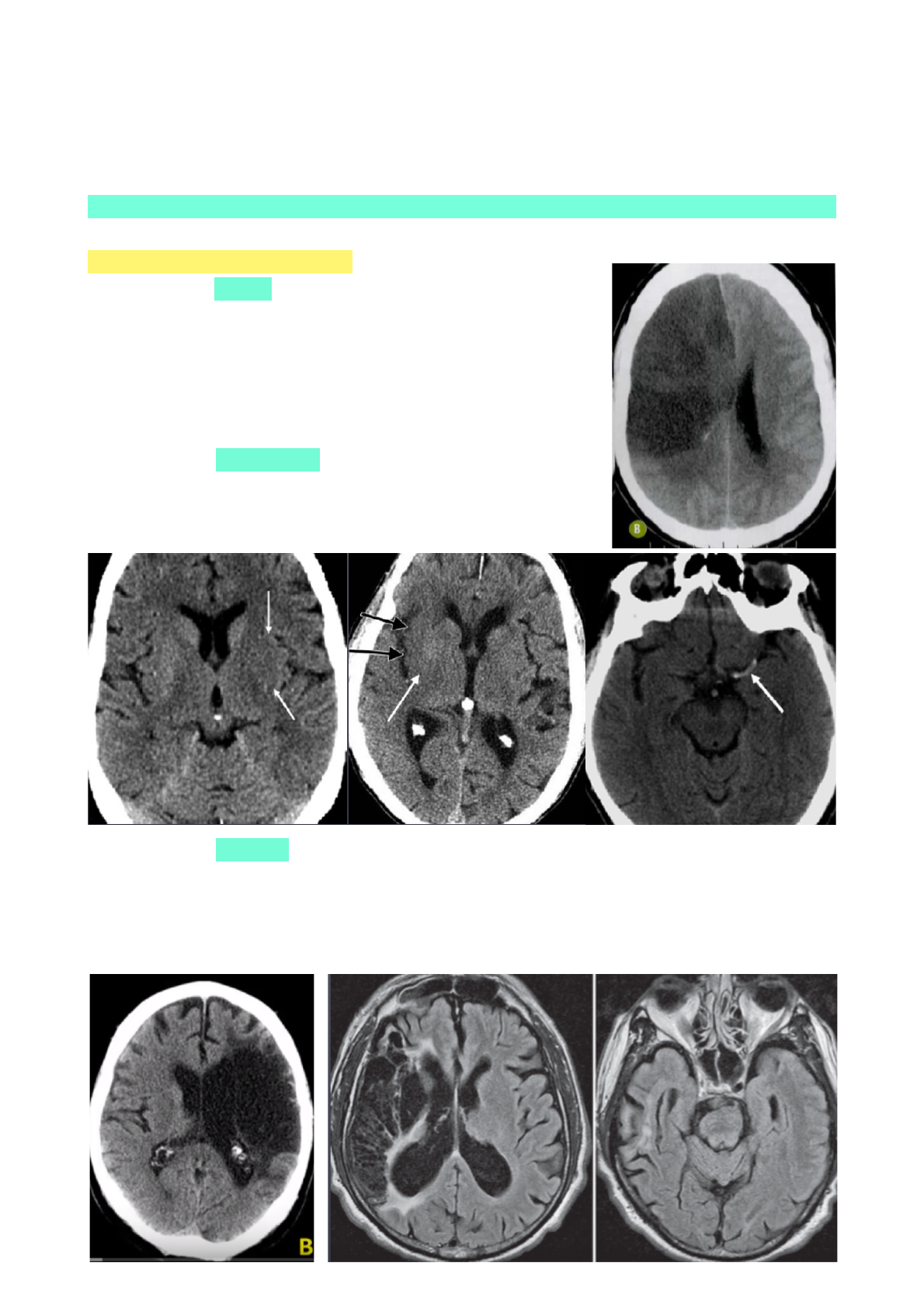 Ádila Cristie Matos Martins UC9 Aula 4, IMAGINOLOGIA ACIDENTE VASCULAR ENCEFÁLICO • É quando ocorre um distúrbio no fluxo sanguíneo, gerando uma perda súbita de função. Pode ser ISQUÊMICO (redução ou paralisação do fluxo) ou HEMORRÁGICO (ruptura vascular). AVE ISQUÊMICO • AVE isquêmico é causados por uma obstrução nas artérias do cérebro. TOMOGRAFIA COMPUTADORIZADA: AVE ISQUÊMICO AGUDO: são sinais que aparecem em 24 horas • Edema citotóxico • Apagamento da diferenciação córtico-subcortical • Efeito expansivo (diminui sulcos) • Hipodensidade na região isquemiada • Desvio da linha média AVE ISQUÊMICO HIPERAGUDO: são sinais que aparecem em 6 horas • Núcleo lentiforme obscurecido • Sinal da fita insular (perda da diferenciação) • Sinal da arteria hipertensa (por conta do trombo) AVE ISQUÊMICO CRÔNICO: • Fenômeno ex-vácuo (aumento ventricular ipisilateral) • Encefalomalácea (efeito cicatricial) • Líquor ocupa o local degenerado • Pode levar a demência vascular Ádila Cristie Matos Martins UC9 Aula 4, IMAGINOLOGIA RESSONÂNCIA MAGNÉTICA: maior sensibilidade e especificidade que a TC; detecta alterações precoces depois de 30 minutos. Detecta edema citotóxico. • DIFUSÃO: é uma sequência que observa a difusão das moléculas de água pelo tecido. Em um AVE isquêmico há uma área de restrição a difusão que obedece território vascular. Na RM a área lesada apresenta-se com HIPERSINAL. Para confirmação, usa-se o MAPA ADC (coeficiente de difusão aparente). Essa sequência que quantifica o deslocamento das moléculas pelo tecido. Se realmente for um AVE isquêmico, a área lesada estará com HIPOSINAL. *ASPECTS: é uma forma de classificar um AVE isquêmico no território da cerebral média. Quanto maior o número de territórios acometidos, maior a extensão do AVE. • 3D TOF (sem contraste): avalia vasos do encefalo. PERFUSÃO: pode ser feita na TC ou na RM. • CORE ISQUÊMICO: área que morreu - não resgata / irreversível. • PENUMBRA: tem hipofluxo sanguíneo, mas ainda é passiva de recuperação. * O AVE isquêmico pode degenerar com focos de hemorragia. Ádila Cristie Matos Martins UC9 Aula 4, IMAGINOLOGIA AVE HEMORRAGICO • O AVE hemorrágico se caracteriza pelo sangramento em uma parte do encéfalo, em consequência do rompimento de um vaso sanguíneo. Pode ocorrer para dentro do cérebro ou tronco cerebral (hemorrágico intraparenquimatoso) ou para dentro das meninges (hemorragia subaracnóidea). * EPICENTRO: onde está o hematoma. TOMOGRAFIA COMPUTADORIZADA: pode afastar a hipótese de hemorragia. RESSONÂNCIA MAGNÉTICA: pode ver os focos hemorrágicos de AVE isquêmicos, principalmente no T2 e gradiente eco (GRE). ______________________________________________________________________________________ (Adendos) * HEMORRAGIA SUBARACNOIDEA: sangue ocupa os sulcos, cisternas, fissuras… É uma sangue extra- axial. ESCALA DE FISHER: 1. TC não detecta sangue 2. < 1mm Ádila Cristie Matos Martins UC9 Aula 4, IMAGINOLOGIA 3. > 1mm 4. Extensão para parênquima ou para dentro do ventrículo. * HEMORRAGIA SUBDURAL: encontra-se embaixo da dura-mater (entre a dura e a aracnoide). É côncavo- convexo - geralmente é sangramento VENOSO. * EFEITO HEMATÓCRITO - plasma em cima e hemácias em baixo - sangue novo. * HEMORRAGIA EPIDURAL: entre a dura e a calota craniana. É biconvexo - geralmente ARTERIAL, dessa forma, pode ser mais rápido.