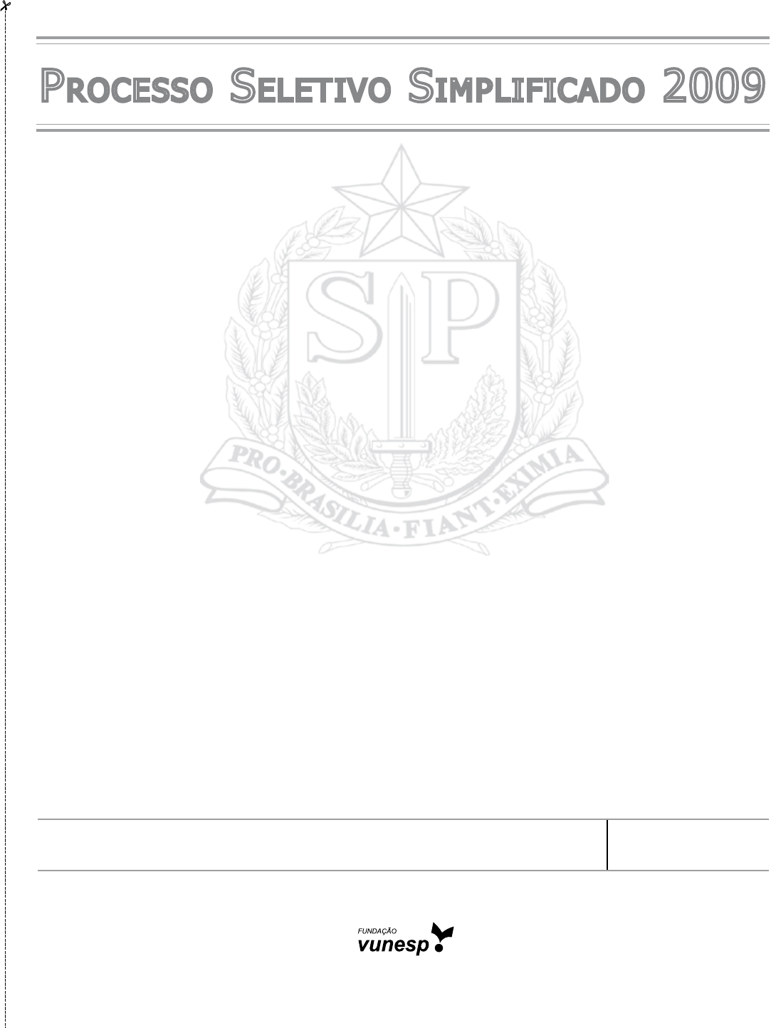 Preencha com seu nome e número de inscrição os esPaços indicados na caPa e na última folha deste caderno. esta Prova contém 60 questões. a Prova terá duração de 4 horas. Para cada questão, existe somente uma alternativa correta. com caneta de tinta azul ou Preta, assinale na folha de resPostas a alternativa que julgar correta. o candidato somente Poderá entregar a folha de resPos- tas e sair do Prédio dePois de transcorridas 2 horas, contadas a Partir do início da Prova. ao terminar a Prova você levará somente a caPa deste caderno, com suas resPostas anotadas no rascunho. aguarde a ordem do fiscal Para abrir este caderno de questões. Nome do candidato Inscrição 20.12.2009 tarde Processo seletivo simPlificado 2009 GOVERNO DO ESTADO DE SÃO PAULO Secretaria de eStado da educação 6. Prova objetiva Professor de educação básica ii (educação esPecial) 2SEED0902/06-PEBII-EducaçãoEspecial-20-tarde Processo seletivo simPlificado 2009 Rascunho 3 SEED0902/06-PEBII-EducaçãoEspecial-20-tarde HABILIDADES GERAIS Para responder às questões de números 01 a 04, considere, espe- cificamente, o conteúdo do livro Educação especial no Brasil: história e políticas públicas (Mazzotta, 1996). 01. Mazzotta informa que alguns brasileiros, inspirados nas expe- riências realizadas na Europa e nos Estados Unidos, iniciam a organização de serviços para atendimento aos deficientes. Isso ocorreu (A) no início do século XX. (B) no século XIX. (C) no começo do século XVIII. (D) no fim do século XVIII. (E) no século XVII. 02. O autor também afirma que a inserção da educação especial (de deficientes, dos excepcionais) na política educacional brasileira vem a ocorrer (A) no final dos anos 50 e início da década de 60 do século XX. (B) no meio da década de 70 do século XX. (C) no final dos anos 80 e início da década de 90 do século XIX. (D) no final dos anos 80 e início da década de 90 do século XX. (E) no meio da década de 90 do século XIX. 03. No Brasil, a organização de movimentos de portadores de deficiência vem mostrando a importância de sua participação I. ao reforçar a ideia de que quem entende de deficiente é o deficiente; II. no planejamento e na execução de serviços e recursos a eles destinados; III. na elaboração de leis sobre vários aspectos da vida social. Está correto o contido em (A) I, apenas. (B) II, apenas. (C) I e II, apenas. (D) II e III, apenas. (E) I, II e III. 04. O Estado de São Paulo, pelo menos desde o Código de Edu- cação (1968) e o Plano de 1970-1971, deixa clara sua opção pelo atendimento integrado no regime comum do ensino, sem desconsiderar o regime especial de ensino para os alunos que não podem se beneficiar dos recursos integrados. O Plano de 1970-1971 utilizava, textualmente, a expressão (A) preferencialmente na rede regular de ensino. (B) preferencialmente na rede especializada de ensino. (C) preferivelmente nos estabelecimentos de ensino comum. (D) preferivelmente nos estabelecimentos de ensino especial. (E) preferencialmente nas instituições especiais de ensino. 4SEED0902/06-PEBII-EducaçãoEspecial-20-tarde 05. De acordo com Mittler (2003), a inclusão educacional envolve um processo de reforma e de reestruturação da escola como um todo, para assegurar a seus alunos o acesso a todas as oportunidades oferecidas por ela. Para tanto, deve-se (A) impedir a divulgação de relatórios de aproveitamento do aluno com deficiência. (B) diminuir as atividades de lazer, esporte e recreação. (C) garantir ensino de qualidade a todos os alunos, inclusive os com deficiências graves. (D) aumentar as matrículas para acabar com a exclusão social e escolar. (E) garantir o ensino de qualidade, menos para as minorias linguísticas e étnicas. 06. Mantoan (2006) afirma que Inovações educacionais como a inclusão, abalam a identidade profissional e o lugar con- quistado pelos professores numa dada estrutura de ensino, atentando contra a experiência, os conhecimentos e o esforço que fizeram para adquiri-los. Para a autora, a maior dificuldade encontra-se em (A) preparar maior número de aulas expositivas sobre o conteúdo das disciplinas. (B) perceber o que cada aluno consegue aprender do conteúdo estudado. (C) participar de maior número de reuniões de equipe. (D) frequentar laboratórios, bibliotecas e exposições culturais. (E) fazer mais relatórios e projetos escolares. 07. Carvalho (2005), em seu livro Educação inclusiva com os pingos nos is, ressalta que o entendimento de projeto político- pedagógico numa escola inclusiva deve ser de (A) descrição das dificuldades de cada aluno. (B) relação de conteúdos desenvolvidos pelas disciplinas. (C) um meio para a cristalização do ato pedagógico. (D) revisão das novas metodologias. (E) um processo de construção contínua. Para responder às questões de números 08 a 12 considere, espe- cificamente, o conteúdo do documento Parâmetros curriculares nacionais: adaptações curriculares. (MEC/SEF/SEESP, 1999) 08. Regis é um aluno que apresenta fraqueza muscular, falta de coordenação motora e se cansa com muita facilidade. Sua professora permite que ele termine suas tarefas em casa. Esse é um exemplo de adaptação que diz respeito à modificação (A) da avaliação. (B) de objetivos. (C) dos conteúdos. (D) da temporalidade. (E) de técnicas. 09. A maior parte das adaptações curriculares utilizadas na escola é facilmente realizada pelo professor no planejamento de suas atividades docentes. Dentre essas adaptações, há as avaliativas que se constituem (A) na organização didática de agrupamentos e de espaço. (B) na adaptação e/ou modificação de técnicas e instrumentos. (C) na modificação do nível de complexidade das atividades. (D) na modificação da seleção dos materiais previstos. (E) na eliminação e/ou modificação de conteúdos secundários. 5 SEED0902/06-PEBII-EducaçãoEspecial-20-tarde 10. A modalidade educação