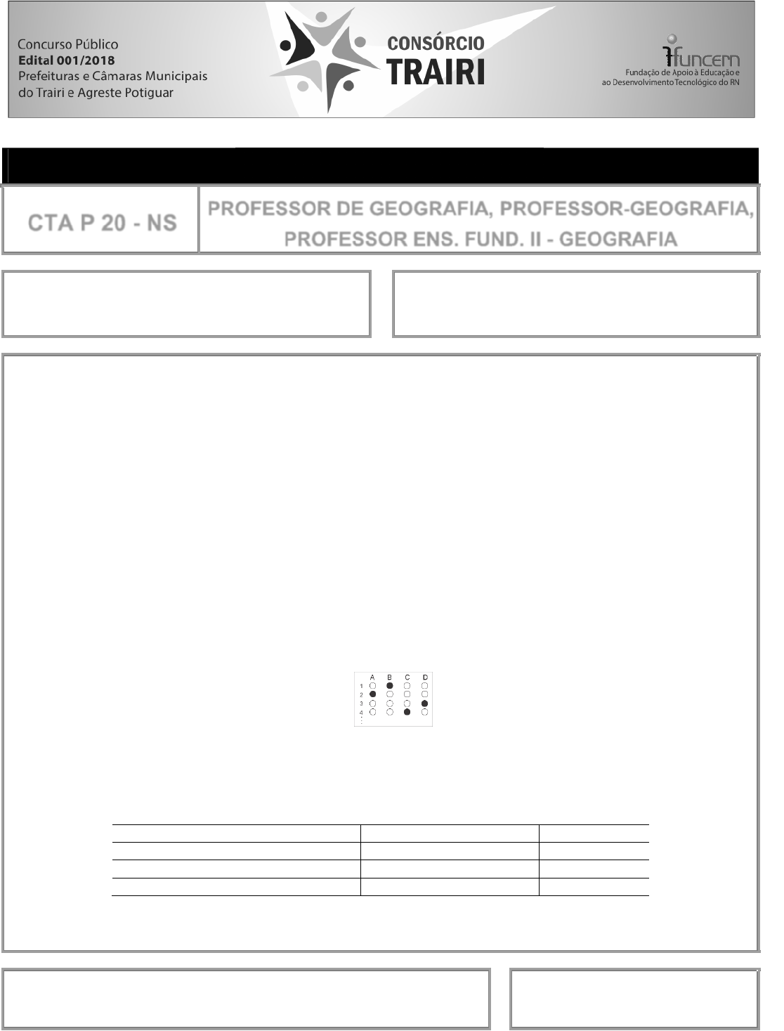 Caderno de Provas CTA P 20 - NS PROFESSOR DE GEOGRAFIA, PROFESSOR-GEOGRAFIA, PROFESSOR ENS. FUND. II - GEOGRAFIA Edital Nº. 01/2018 – Prefeituras e Câmaras Municipais do Trairi e Agreste Potiguar 21 de outubro de 2018 INSTRUÇÕES GERAIS PARA A REALIZAÇÃO DA PROVA Use apenas caneta esferográfica azul ou preta. Escreva o seu nome completo e o número do seu documento de identificação no espaço indicado nesta capa. A prova terá duração máxima de 3 (três) horas, incluindo o tempo para responder a todas as questões do Caderno de Provas e preencher as Folhas de Respostas. Antes de retirar‐se definitivamente da sala, entregue as Folhas de Respostas ao fiscal. O Caderno de Provas só poderá ser levado pelo candidato após o encerramento do prazo estabelecido para a sua aplicação. Este Caderno de Provas contém, respectivamente, 10 (dez) questões de Língua Portuguesa, 20 (vinte) de Conhecimentos Específicos. Se o Caderno de Provas contiver alguma imperfeição gráfica que impeça a leitura, comunique isso imediatamente ao Fiscal. Cada questão de múltipla escolha apresenta apenas uma resposta correta. Para a marcação da alternativa escolhida na Folha de Respostas, pinte completamente o campo correspondente conforme a figura a seguir: Os rascunhos e as marcações feitas neste Caderno de Provas não serão considerados para efeito de avaliação. Interpretar as questões faz parte da avaliação; portanto, não adianta pedir esclarecimentos aos Fiscais. O preenchimento das Folhas de Respostas é de sua inteira responsabilidade. A quantidade de questões e respectivas pontuações desta prova estão apresentadas a seguir: Disciplina Número de questões Pontos Língua Portuguesa (Objetivas) 10 questões 30 pontos Conhecimentos Específicos (Objetivas) 20 questões 70 pontos Total de questões 30 questões 100 pontos NOME COMPLETO: DOCUMENTO DE IDENTIFICAÇÃO: _________________________ www.pciconcursos.com.br CONCURSO PÚBLICO – PREFEITURAS E CÂMARAS MUNICIPAIS DO TRAIRI/AGRESTE POTIGUAR EDITAL Nº. 001/2018 Prefeituras e Câmaras Municipais do Trairi/Agreste Potiguar – Concurso Público - 2018 1 QUESTÕES DE MÚLTIPLA ESCOLHA LÍNGUA PORTUGUESA NÍVEL SUPERIOR O texto abaixo servirá de base para as questões 1 e 2. Noção de erro de português é afetada pela ideia de que, vista do passado, toda evolução é corrupção Aldo Bizzocchi Somos um povo que adora discutir a própria língua. E quando o fazemos, um dos assuntos que invariavelmente vêm à baila é a famigerada questão do erro gramatical. Muito se tem debatido a respeito, e a suposta existência de erros em nossa fala (bem como na escrita) ensejou até o surgimento de uma nova profissão, por sinal lucrativa, a de consultor gramatical. Igualmente, peritos no assunto têm mantido com sucesso colunas em jornais, sites, programas de rádio ou televisão com o propósito de ensinar as pessoas a falar corretamente o seu próprio idioma. Isso porque, segundo o diagnóstico catastrofista desses entendidos, nunca se falou tão mal o português como agora, nossa língua caminha inelutavelmente para a ruína e a dissolução, já não se escreve mais como antigamente, e toda uma interminável cantilena de rabugices. (...) É preciso, então, definir claramente o que é o erro em matéria de língua. É evidente que, se um estrangeiro tentando falar português disser “O meu mulher ser muito bonita”, cometerá um erro, a ponto de se poder dizer que isso não é português. Da mesma forma, quando cometemos um lapsus linguae, isto é, um equívoco involuntário do qual temos consciência, estamos diante de um erro linguístico. Mas o que se costuma chamar de “erro de português” é uma expressão linguística que nada tem de acidental, já que é sistemática e, geralmente, proferida por pessoas de menor nível escolar e socioeconômico, embora possa ocorrer até nos mais altos escalões da sociedade. Para a linguística, que é a ciência da linguagem humana, esse fenômeno não pode ser chamado de erro. Se a língua é um sistema de signos que se articulam segundo leis definidas para permitir a comunicação e o pensamento humanos, toda expressão linguística, mesmo a das pessoas iletradas, cumpre esse papel com eficiência. (...) A maioria dos chamados erros constitui, na verdade, um uso linguístico inadequado à situação de comunicação. Para entendermos melhor essa inadequação, vamos fazer uma analogia entre a língua que falamos e a roupa que usamos. Ninguém em sã consciência vai a uma cerimônia de formatura de camiseta e bermudas tampouco vai à praia de terno. Assim como há uma roupa adequada a cada ocasião, há uma forma de expressão linguística, chamada registro ou nível de linguagem, adequada a cada situação de discurso. (...) Mas e aquelas pessoas que moram na periferia ou na zona rural e dizem “pobrema”, “cardeneta” ou “puliça”, elas não estão falando errado? Do ponto de vista normativo, sim. Mas, como disse, a gramática normativa só se aplica a situações e ambientes formais. O registro deve, antes de tudo, estar adequado ao contexto social da comunicação. Pessoas que vivem num meio de baixa escolaridade e pronunciam “pobrema” estão adaptadas ao seu habitat. Se você duvida, experimente entrar numa favela do Rio vestindo roupa social e vá conversar com os traficantes usando linguagem de magistrado para ver o que lhe acontece. Não estou dizendo com isso que o linguajar das pessoas não-escolarizadas deva ser incentivado. É evidente que, como cidadãos, devemos lutar para acabar com a pobreza e a ignorância. Nesse sentido, não apenas pronunciar “pobrema” é errado; morar em favelas ou andar maltrapilho é muito mais. No entanto, muitos brasileiros moram em barracos ou na rua e só têm uma roupa – muitas vezes esfarrapada – para vestir e só um registro para falar. Sua fala é pobre como é pobre a sua existência, tanto física quanto men
