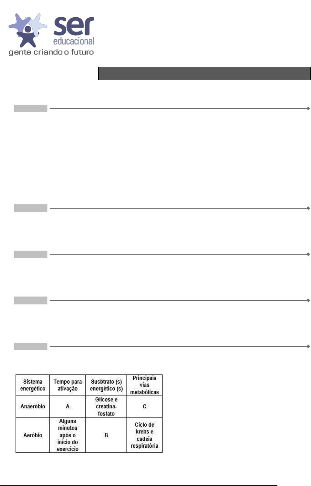 Página 1 de 2 GRADUAÇÃO EAD AV2 2019.1A 30/03/2019 QUESTÃO 1. Sobre o consumo de lipídios no exercício físico, analise as sentenças abaixo e, em seguida, assinale a alternativa que contém apenas as sentenças verdadeiras. I. O consumo de lipídios deve estar entre 20 e 30% do VET, a mesma recomendação para população geral. II. O tipo de lipídio mais recomendado são os saturados, pois possuem propriedades específicas que reduzem o risco cardiovascular. III. Quanto a distribuição, é recomendado o consumo de 10% de lipídios insaturados e 20% de saturados. IV. Quando há objetivo de perda de peso, é ideal utilizar o mínimo da faixa recomendada. R: I e IV. QUESTÃO 2. Os carboidratos são considerados nutrientes “poupadores” de proteínas porque: R: seu consumo inibe a degradação de proteínas para obtenção de energia. QUESTÃO 3. São especificações de suplementos proteicos exigidas pela Anvisa, EXCETO: R: Devem ser suplementados com aminoácidos de cadeia ramificada. QUESTÃO 4. São recomendações do consumo de carboidratos antes do exercício, EXCETO: R: Preferir consumir fontes de carboidratos ricos em fibra próximo ao exercício físico. QUESTÃO 5. O quadro abaixo esquematiza os sistemas energéticos aeróbio e anaeróbio e suas principais características. Assinale a alternativa que substitui corretamente as letras A, B e C no quadro. R: Ao iniciar o exercício; carboidratos, lipídios e proteínas; via glicolítica e sistema creatina fosfato. NUTRIÇÃO NA PRÁTICA ESPORTIVA Página 2 de 2 QUESTÃO 6. “Condicionalmente essencial em algumas situações metabólicas, esse aminoácido é suplementado visando evitar a imunossupressão que pode ser desencadeada por sessões de treinamento longas e/ou intensas. ” O texto refere-se a: R: Glutamina. QUESTÃO 7. Em um exercício de força, a adequada ingestão de proteínas de alto valor biológico é importante para estimular a síntese proteica e promover um balanço nitrogenado positivo. Diante disso, em qual das alternativas abaixo encontramos a recomendação ideal de proteínas para um praticante de treinamento de força? R: Entre 1,6g/kg/dia e 1,7g/kg/dia. QUESTÃO 8. Para melhorar o rendimento na prática da atividade física, diversos atletas fazem uso de recursos ergogênicos para que possam atingir suas metas esportivas. Nesse contexto, em qual das alternativas abaixo encontramos um recurso ergogênico mecânico? R: Roupas esportivas. QUESTÃO 9. Durante o processo de adaptac ̧ão do organismo ao exercício físico ocorre o aumento da produção de enzimas consideradas antioxidantes. Em qual das alternativas abaixo podemos encontrar duas enzimas que protegem o organismo contra o estresse oxidativo? R: Glutationa peroxidase e superóxido dismutase. QUESTÃO 10. A whey protein é um tipo de suplemento obtido a partir do soro do leite e é conhecida por ser um suplemento completo em aminoácidos essenciais. De acordo com o seu conteúdo, elas podem ser classificadas em simples, concentradas e isoladas. Em qual das alternativas abaixo encontramos a correta proporção do conteúdo proteico em uma whey protein simples, concentrada e isolada, respectivamente? R: 30% 80% e 90%