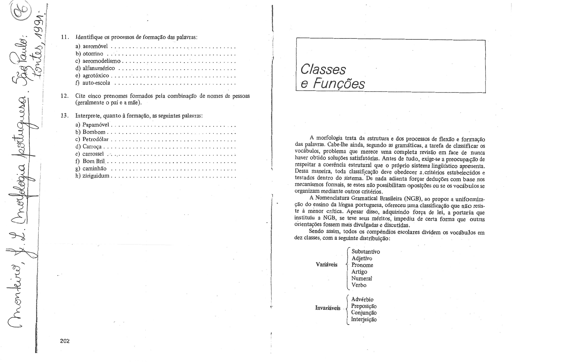 mente deveria ter dito "classificaqZo dos vociibulos", j i que a i inseriu o artigo