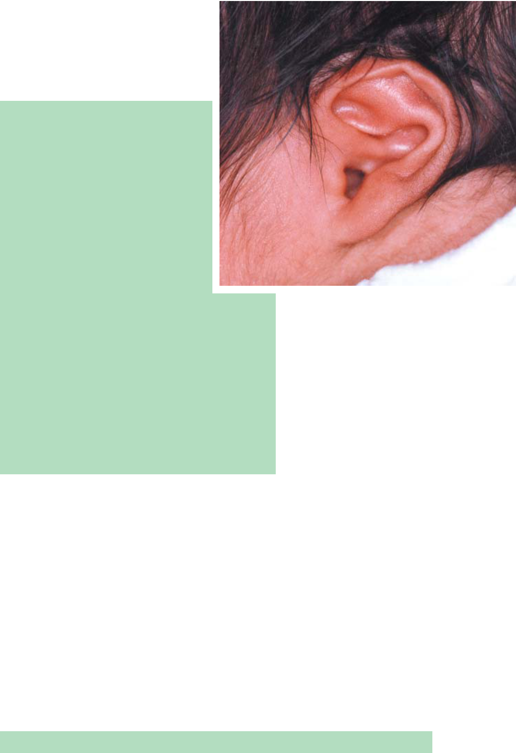 18 MALFORMAÇÕES CONGÊNITAS DA ORELHA EXTERNA PAULO DE TARSO LIMA 736 GENÉTICA BASEADA EM EVIDÊNCIAS – SÍNDROMES E HERANÇAS CAPÍTULO 18 - MALFORMAÇÕES CONGÊNITAS DA ORELHA EXTERNA GENÉTICA BASEADA EM EVIDÊNCIAS – SÍNDROMES E HERANÇAS 737CAPÍTULO 18 - MALFORMAÇÕES CONGÊNITAS DA ORELHA EXTERNA Capítulo 18 MALFORMAÇÕES CONGÊNITAS DA ORELHA EXTERNA PAULO DE TARSO LIMA INTRODUÇÃO Malformações da orelha externa, média ou interna representam uma significante classe das anomalias congênitas devido à sua freqüência e ao transtorno que provocam nos indivíduos portadores destas alterações. A orelha externa é uma importante referência no estudo das variações fenotípicas, das malformações congênitas não graves e das chamadas malformações menores. Analisando – se todos os tipos de malformações congênitas , as malformações da orelha externa provocam um importante estigma social, envolvendo por vezes um grande envolvimento psicológico e emocional dos pacientes e seus familiares. As alterações de forma da orelha externa são observadas em praticamente todas as síndromes cromossômicas mais usuais e mesmo nas síndromes mais raras coexiste a malformação da orelha, como uma característica consistente. As alterações da orelha externa presentes na trissomia do 18 e na síndrome de Down, são exemplos desta relação. As malformações da orelha externa são um achado bastante usual, sendo que estas anomalias auriculares variam de alterações quase não perceptíveis, à completa ausência do apêndice auricular. ANATOMIA A orelha externa representa para o cirurgião um verdadeiro desafio quando na sua reconstrução total. A grande dificuldade existente quando na sua reconstrução se dá devido a existência de vários planos, caracterizados por seus relevos e reentrâncias . A orelha é constituída por um arcabouço de cartilagem elástica, envolvida por um delicado envelope de pele. O arcabouço desnudado deste envelope cutâneo, caracteriza com precisão os contornos apresentados pela orelha, com exceção da região do lóbulo que é constituído apenas por tecido fibroadiposo A vascularização da orelha externa se dá pela artéria temporal superficial e pelos vasos auriculares posteriores; sua inervação é constituída 738 GENÉTICA BASEADA EM EVIDÊNCIAS – SÍNDROMES E HERANÇAS CAPÍTULO 18 - MALFORMAÇÕES CONGÊNITAS DA ORELHA EXTERNA pelo nervo auricular maior e pelos nervos occipital e auriculotemporal, é presente também na região conchal (Figura 18.1). Curiosamente a orelha externa apresenta nove músculos, três extrínsecos (responsáveis pelo posicionamento da orelha em relação ao crânio) e seis intrínsecos (responsáveis pela conformação doe relevos auriculares). Entre este músculos o músculo auricular posterior e os músculos transverso e oblíquo determinam uma grande importância quanto à forma e posição da orelha externa. EMBRIOLOGIA APLICADA A orelha, orelha externa, média e interna , é uma estrutura anatômica composta de tecidos de origens diversas, apresentando assim uma complexa origem embrionária. A orelha externa e média, se originam do primeiro e segundo arcos branquias, e do sulco existente entre estes arcos. A orelha interna, por contrapartida, desenvolve-se de uma placa espessada no ectoderma superficial, o placóide ótico, que aparece em cada lado da cabeça, ao nível do romboencéfalo. Ao fim do terceira semana, este placóide ótico invagina-se e afunda- se abaixo do ectoderma superfícial para formar a vesícula ótica (otocisto). Da diferenciação da vesícula ótica se origina os diversos segmentos da orelha interna. Do desenvolvimento do recesso tubotimpânico a partir da primeira bolsa faríngea, desenvolve-se a cavidade timpânica e a tuba auditiva. Das cartilagens do primeiro e segundo arcos branquias, origina-se os três ossículos constituintes da orelha média. A orelha externa desenvolve-se de seis protuberâncias, que desenvolvem-se nas bordas superiores dos primeiro e segundo arcos branquiais ao redor da sexta semana de gestação. De cada protuberância se originará um segmento da orelha externa; da primeira protuberância o tragus, da segunda a raiz da hélix, da terceira a hélix, da quarta o segmento superior Figura 18.1: Aspecto lateral da orelha externa direita: 1) Hélix; 2) Escafa; 3) Fossa Triangular; 4) Concha; 5) Antihélix; 6) Tragus; 7) Antitragus; 8) Incisura Intertragica; 9) Lóbulo. 1 2 3 4 5 6 7 8 9 GENÉTICA BASEADA EM EVIDÊNCIAS – SÍNDROMES E HERANÇAS 739CAPÍTULO 18 - MALFORMAÇÕES CONGÊNITAS DA ORELHA EXTERNA da orelha, da quinta, a antihélix e da sexta protuberância o antitragus. O lóbulo auricular têm a sua origem da base do primeiro arco branquial. A orelha externa ao redor da oitava semana de gestação já se conforma em semelhança com a orelha adulta. Da extremidade do primeiro sulco branquial forma-se o canal auditivo externo (Figura 18.2). O importante é notarmos com esta breve descrição da embriologia da orelha, que a orelha média e externa desenvolvem-se de áreas comuns, diferenciando-se da origem embrionária da orelha interna (Figura 18.3). Este fato explica o envolvimento freqüente da orelha média e seus ossículos (surdez de condução) quando na presença de uma microtia, porém justifica- se pela embriologia destas estruturas, o raro envolvimento da orelha interna e a ocorrência de um quadro de surdez neuro-sensorial. Figura 18.2: Diferenciação embriológica da orelha externa. A orelha desenvolve- se de seis protuberâncias, que originam-se da superfície externa do primeiro e segundo arcos faríngeos. (Fig. 18.2 Cortesia do Dr. Arnold Tamarin). Figura 18.3: Momentos de diferenciações embriológicas da orelha externa. A B C D E F G H A B 740 GENÉTICA BASEADA EM EVIDÊNCIAS – SÍNDROMES E HERANÇAS CAPÍTULO 18 - MALFORMAÇÕES CONGÊNITAS DA ORELHA EXTERNA MICROTIA Malformação complexa da orelha externa