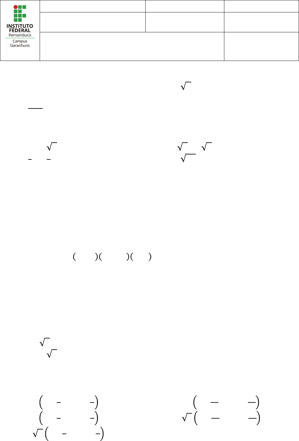 Disciplina: Circuitos Elétricos 2 Turma: 2TEE Noite Período: 2017.1 Prof.: Kleber Paulo Prova: Lista de Exercícios Data: 13/02/2017 Estudante: __________________________________________________ Matrícula: ____________________________ Nota: _________________ 1) Identifique a parte real e imaginária de cada um dos números complexos abaixo: a) 𝑧 = 2 + 𝑗3 b) 𝑧 = −1 − 𝑗4 c) 𝑧 = *+,-. d) 𝑧 = 𝑗 3 e) 𝑧 = 10 f) 𝑧 = 0 2) Informe o conjugado dos números complexos abaixo: a) 𝑧 = 2 + 𝑗 3 b) 𝑧 = *- + 𝑗 *0 c) 𝑧 = −4 + 𝑗3 d) 𝑧 = 2 − 𝑗 5 e) 𝑧 = 𝑗 10 3) Dados 𝒛𝟏 = −𝟏 − 𝒋𝟑 e 𝒛𝟐 = 𝟐 − 𝒋𝟓, calcule: a) 𝑧* + 𝑧- b) 𝑧* − 𝑧- c) 𝑧*𝑧- d) 2𝑧* − 3𝑧- 4) Efetue o produto 𝟒 + 𝒋 𝟐 + 𝒋𝟑 −𝒋𝟐 . 5) Calcule: a) 𝑗09 b) 𝑗*:. c) 𝑗0:9 6) Represente na forma trigonométrica os seguintes números complexos: a) 𝑧 = −4 3 − 𝑗4 b) 𝑧 = 1 − 𝑗 3 c) 𝑧 = −7 − 𝑗7 d) 𝑧 = 𝑗8 e) 𝑧 = −5 7) Represente na forma algébrica os seguintes números complexos: a) 𝑧 = 2 cos @0 + 𝑗 sen @0 b) 𝑧 = 3 cos @C + 𝑗 sen @C c) 𝑧 = 3 cos @- + 𝑗 sen @- d) 𝑧 = 10 cos 0@- + 𝑗 sen 0@- e) 𝑧 = 2 cos 0@. + 𝑗 sen 0@. 8) Represente no mesmo plano complexo os seguintes números: a) 𝑧* = 3 + 𝑗5 b) 𝑧- = −2 + 𝑗4 c) 𝑧0 = 1 − 𝑗3 d) 𝑧. = 4 e) 𝑧9 = −4 − 𝑗5 f) 𝑧9 = 𝑗7 9) No plano cartesiano apresentado na figura abaixo, estão representados três números complexos 𝒛𝟏, 𝒛𝟐, 𝒛𝟑 na forma vetorial. Resolva: a) 𝑧* + 𝑧- + 𝑧0 b) 2𝑧* − 𝑧- c) 𝑧*𝑧- d) 𝑧* 𝑧0 10) Calcule as divisões indicadas: a) -+,0*+,- b) *0+,- c) *+,, d) *+,E*F,0 e) -90F,. f) *F,*+, + *+,*F, g) **F, + **+, Exercícios retirados do livro – Introdução à Análise de Circuitos – Boylestad 11) Converta os seguintes números na forma polar. a) 4 + 𝑗3 b) 2 + 𝑗2 c) 4 + 𝑗12 d) −8 − 𝑗16 e) 0.02 − 𝑗0.003 f) 200 − 𝑗0.02 g) 1000 + 𝑗50 h) −1000 + 𝑗4000 i) −0.4 + 𝑗0.08 j) 8 + 𝑗4 k) −6×10F0 − 𝑗6×10F0 l) −1000 + 𝑗20 12) Converta os seguintes números na forma retangular. a) 6∠40° b) 12∠120° c) 2000∠ − 90° d) 0.0064∠200° e) 48∠2° f) 5×10F.∠ − 20° g) 42∠0.15° h) 2002∠ − 60° i) 0.006∠ − 120° j) 8×10F0∠ − 220° k) 15∠180° l) 1.2∠ − 89.9° 13) Efetue as seguintes adições em forma retangular. a) 4.2 + 𝑗6.8 + 7.6 + 𝑗0.2 b) 142 + 𝑗7 + 9.8 + 𝑗42 + 0.1 + 𝑗0.9 c) 4×10FC + 𝑗76 + 7.2×10FE − 𝑗5 14) Efetue as seguintes subtrações em forma retangular. a) 9.8 + 𝑗6.2 − 4.6 + 𝑗4.6 b) 167 + 𝑗243 − −42.3 − 𝑗68 c) −36 + 𝑗78 − −4 − 𝑗6 + 10.8 − 𝑗72 15) Efetue as seguintes operações com números polares e deixe na forma polar. a) 6∠20° + 8∠80° b) 42∠45° + 62∠60° − 70∠120° c) 20∠ − 120° − 10∠ − 150° + 8∠ − 210° 16) Efetue as seguintes multiplicações em forma retangular. a) 2 + 𝑗3 6 + 𝑗8 b) 7.8 + 𝑗 4 + 𝑗2 7 + 𝑗6 c) 400 − 𝑗200 −0.01 − 𝑗0.5 −1 + 𝑗3 17) Efetue as seguintes multiplicações em forma polar. a) 2∠60° 4∠ − 40° b) 6.9∠8° 7.2∠ − 72° c) 0.002∠120° 0.5∠60° 40∠80° 18) Efetue as seguintes divisões em forma polar. a) 42∠10° / 7∠60° b) 0.006∠120° / 30∠60° c) 4.36∠ − 20° / 40∠ − 210° 19) Efetue as seguintes divisões e deixe a resposta em forma retangular. a) 8 + 𝑗8 / 2 + 𝑗2 b) 8 + 𝑗42 / −6 − 𝑗4 c) −4.5 − 𝑗6 / 0.1 − 𝑗0.8 20) Efetue as operações a seguir e expresse as respostas em forma retangular. a) .+,0 + CF,N0+,0 F -+,0 b) N∠C:°-∠:° + *::+,.:: c) C∠-:° *-:∠F.:° 0+,N-∠F0:° 21) Efetue as operações a seguir e expresse as respostas em forma polar. a) :..∠C:° O 0::∠.:°0+,P b) *:.:-∠*:° O *, 0 *COF, P::
