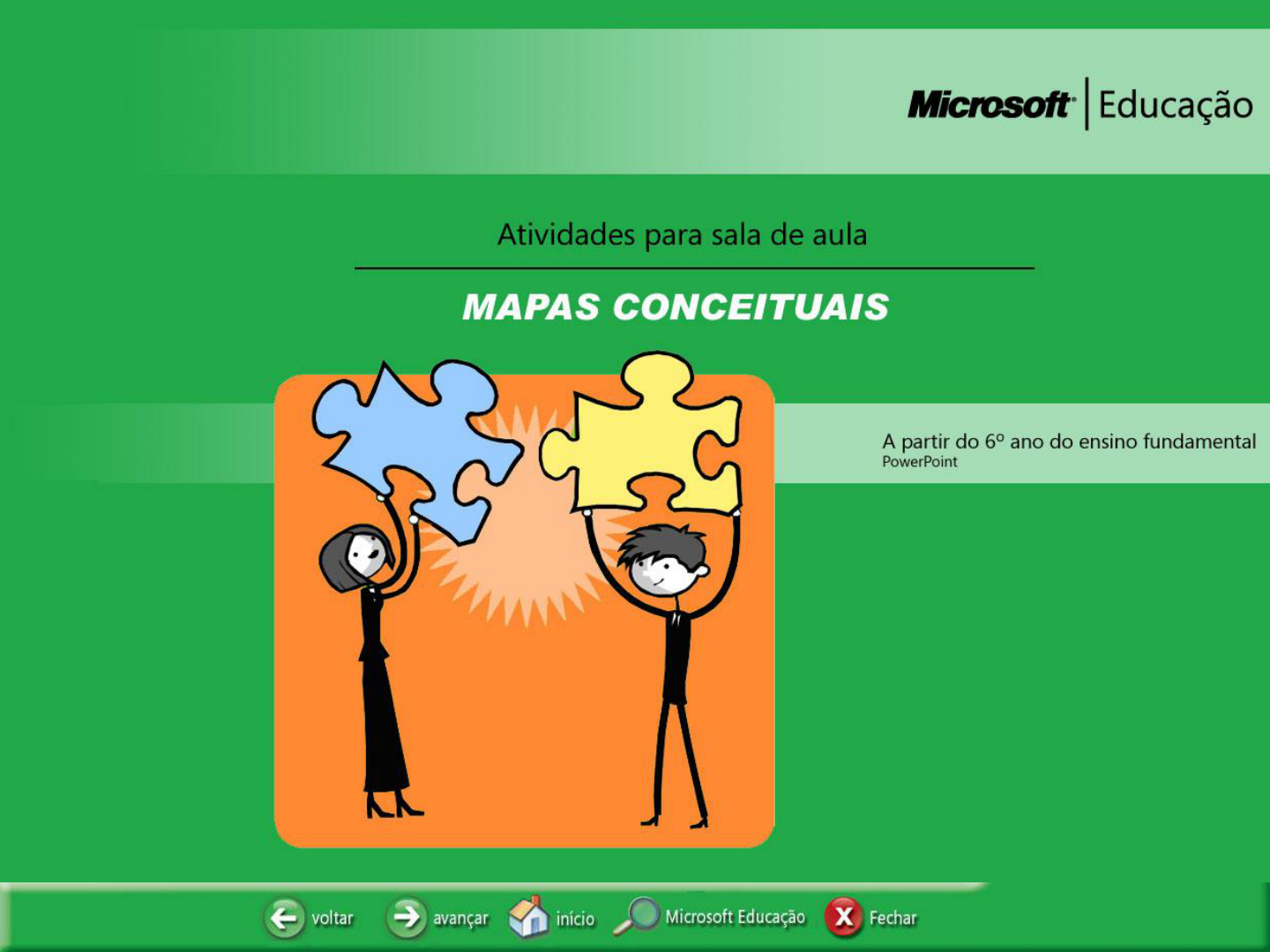 MAPAS CONCEITUAIS MAPAS CONCEITUAIS APRESENTAÇÃO Estudar de forma mais produtiva e independente é uma grande conquista. Ao ensinar estratégias de estudo, você fará com que seus alunos aprendam a sistematizar conteúdos longos e à priorizar idéias. O emprego de Mapas Conceituais nesta tarefa é perfeito. Com esta ferramenta, você deixará claro conceitos difíceis. Além disso, poderá avaliar o aprendizado geral da matéria. Nesta atividade, vamos mostrar como resumir de forma eficiente qualquer assunto. A idéia é que conteúdos sejam fixados a partir da montagem de Mapas Conceituais pelos próprios alunos. Palavras-chaves são selecionadas por eles, e então, diagramas são estruturados no programa PowerPoint. A atividade é concluída com a apresentação e análise das melhores forma de sintetizar o conteúdo proposto. Vamos lá! Os seus alunos só tem a ganhar com a matéria na ponta da língua! ! A atividade aqui desenvolvida foi criada pela Prof.a Dra. Cristiana Mattos Assumpção e detalhada em um plano de aula completo. Converse com a professora: cmattos@colband.com.br LINHAS GERAIS Público alvo: A partir do 6º ano do ensino fundamental Disciplina: Multidisciplinar Tema transversal: Língua Portuguesa Softwares necessários: PowerPoint Tempo previsto: 4 aulas MAPAS CONCEITUAIS ÍNDICE ! ROTEIRO DA ATIVIDADE A atividade está divida em 2 encontros. Na primeira parte, na sala de aula, os alunos aprendem o que são Mapas Conceituais e como podem aplicá-lo. Já na segunda parte, eles são levados ao laboratório de informática, e então, montam os diagramas a partir do conteúdo proposto. Acompanhe as etapas a seguir. Veja o Plano de aula e boa sorte! Leia e imprima o Plano de aula, na qual está detalhado todas as informações pedagógicas sobre a atividade. NA SALA DE AULA (2 AULAS) Etapa 1 – Introdução ao Tema Etapa 2 – Como montar um Mapa Conceitual Etapa 3 – Preenchimento da folha de atividade NO LABORATÓRIO DE INFORMÁTICA (2 AULAS) Etapa 1 – Leitura e seleção das palavras-chave Etapa 2 – Montagem do diagrama Etapa 3 – Conclusão da atividade créditos Plano de aula Nome: Mapas conceituais como ferramenta de estudo Público alvo: A partir do 6º ano do ensino fundamental Disciplina: Interdisciplinar Tema transversal: Português Softwares necessários: Microsoft PowerPoint Tempo previsto: 4 aulas Objetivos: - Permitir ao aluno sintetizar o que está estudando; - Aprender a priorizar idéias ao montar um fluxograma; - Possibilitar ao aluno que analise seu próprio processo de pensamento; - Saber como usar o software PowerPoint. Planejamento da Atividade: Na sala de aula (2 aulas): - Explicar o que são Mapas Conceituais; - Mostrar exemplo de como sintetizar um texto e montar um fluxograma; - Apresentar a proposta de trabalho aos alunos; - Distribuir a folha de atividade. No laboratório de informática (de 2 aulas): - Seleção das palavras-chave; - Execução da atividade no PowerPoint; - Apresentação dos grupos. MAPAS CONCEITUAIS NA SALA DE AULA ETAPA 1 – INTRODUÇÃO AO TEMA Inicie a aula explicando o que é um Mapa Conceitual e como pode ajudar na compreensão de textos e sínteses para estudo. Distribua um texto curto sobre um tópico da matéria desejada. Dê aproximadamente 15 minutos para lerem. Discuta com os alunos quais são as principais idéias e as frases mais importantes. Então, monte na lousa um diagrama do texto em questão. Explique aos alunos como você chegou as palavras-chave. Veja um exemplo no arquivo Mapa Conceitual DICA Mapas Conceituais são representações gráficas semelhantes a diagramas, que indicam relações entre conceitos ligados por palavras. Esta estrutura vai desde os mais abrangentes até os menos inclusivos podendo ser indicado por palavras ou até mesmo frases. São utilizados principalmente para hierarquizar conteúdos de forma a facilitar o aprendizado por meio de construções significativas do próprio aluno. Mapa Conceitual EXEMPLOS DE MAPAS CONCEITUAIS A. Veja abaixo como montar um Mapa Conceitual simples: Passo 1 - No texto escolhido grife as frases e conceitos mais importantes. Globalização econômica A globalização é um fenómeno capitalista e complexo que começou na época dos descobrimentos e que se desenvolveu a partir da Revolução Industrial. Mas o seu conteúdo passou despercebido por muito tempo, e hoje muitos economistas analisam a globalização como resultado do pós Segunda Guerra Mundial, ou como resultado da Revolução Tecnológica. Apesar das contradições há um certo consenso a respeito das características da globalização que envolve o aumento dos riscos globais de transações financeiras, perda de parte da soberania dos Estados com a ênfase das organizações supra-governamentais, aumento do volume e velocidade como os recursos vêm sendo transaccionados pelo mundo, através do desenvolvimento tecnológico etc. Além das discussões que envolvem a definição do conceito, há controvérsias em relação aos resultados da globalização. Tanto podemos encontrar pessoas que se posicionam a favor como contra (movimentos anti-globalização). A Globalização é sem dúvidas um fenómeno moderno dos nossos dias. Com a evolução dos novos meios de comunicação cada vez mais rápidos e mais eficazes, têm se propagado. Há, no entanto, aspectos tanto positivos quanto negativos: No que concerne aos aspectos negativos há a facilidade com que tudo circula não havendo grande controle como se pode facilmente depreender pelos atentados de 11 de Setembro nos EUAs. Além disso, a grande instabilidade econômica que se cria no mundo, pois qualquer fenómeno que acontece num determinado país atinge rapidamente outros países criando-se contágios como epidemias se alastram a todos os pontos do globo como se de um único ponto se tratasse. Os países cada vez estão mais dependentes uns dos outros e já não há possibilidade de se isolarem. Como aspectos positivos, temos se