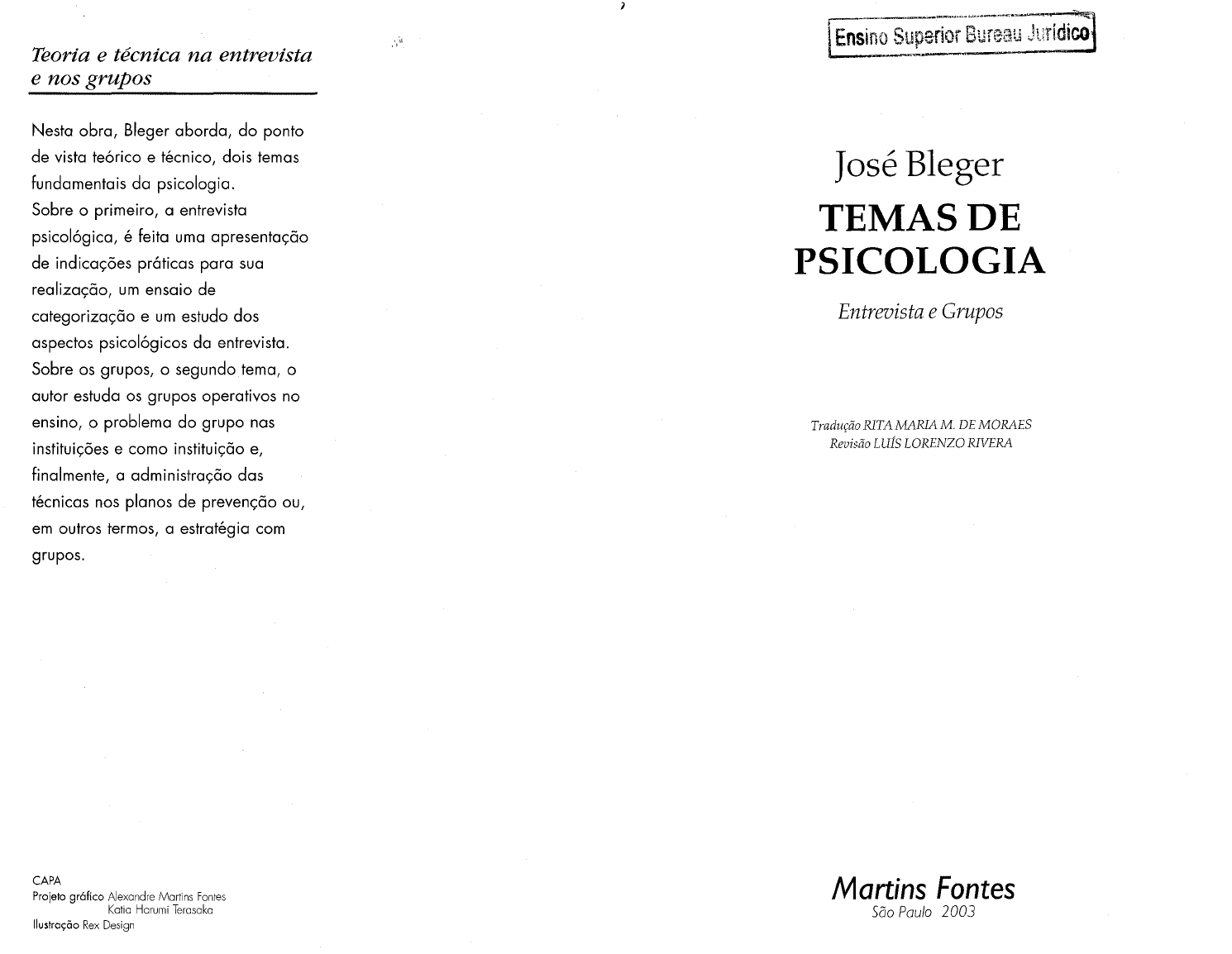 Temas de psicologia: entrevista e grupos I José Bleger ; tradução