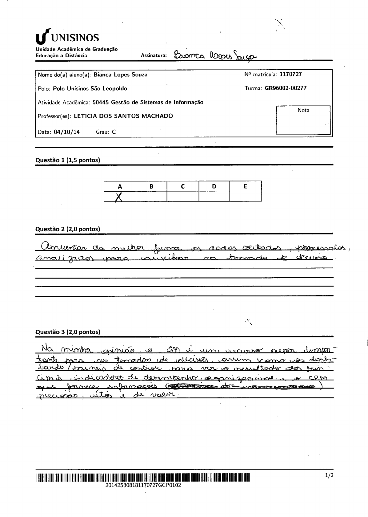 -1,5 E ok ok 5,00 ??? Não respondeu? ok -1,5 C