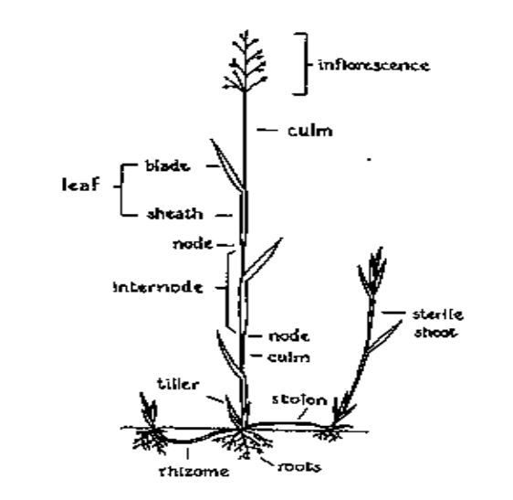 Aula Prática 1 – Morfologia de Forrageiras Estrutura morfológica de gramíneas: Ver e identificar as estruturas, fotografando cada uma delas. - Raiz: fasciculada (cabeleira) e adventícias; 80% das raízes das gramíneas chegam a 20-30cm de profundidade. - Caule: colmo- típico (não se ramifica), com nós e entre-nós; Associado a cada nó tem origem uma folha (formam um entrenó: gema lateral, bainha da folha, lâmina foliar). - No ápice da planta há o meristema apical (tecido de formação de células diferenciadas que vai dar origem às formas vegetativas e reprodutivas). - Perfilhamento: produção ou emissão de perfilhos, característica mais abundante em gramíneas. É um processo de brotação. - Podem possuir rizomas subterrâneos, nas perenes e estolões: decumbentes, de comprimento variável; - Folhas: séssil, invaginantes, de disposição alternada, com lâmina comprida, lanceolada, com nervuras paralelinérveas. - Inflorescência: as espiguetas estão dispostas em paniculas, rácemos ou espigas; - Fruto: tipo cariopse. - Exemplos: quicuio, canarana, milho, aveia cana, colonião, etc... Para correta identificação de uma gramínea, em seu estado adulto, é necessário observar as seguintes características morfológicas: - Todas as gramíneas têm seções de colmos separadas por nós consistentes, - Toda folha de uma gramínea se origina em um nó, sendo que as folhas se orientam sucessivamente em dois sentidos, - Todas as gramíneas tem folhas constituídas de duas partes: bainha e lâmina. Uma destas partes, contudo, pode ser muito reduzida, a ponto de praticamente não existir, - Nenhuma planta de qualquer outra família apresenta juntas estas três características. Estrutura morfológica de leguminosas: - Raiz: axial, pivotante; - Caule: variável (herbáceo, arbustivo e arbóreo); - Folhas compostas, alternadas e estipuladas; - Inflorescência: rácemo, Inflorescência: normalmente em rácemo ereto ou penduloso. Algumas espécies desenvolvem inflorescências globosas (Mimosoideae). - Flores: diclamídeas (c cáliomce e corola), unicarpelares (carpelo único) e multiovuladas. Regulares (uni e bisexuais) na subfamilia Mimosoidea (Mimosoideae),Irregulares e bisexuais na subfamilias Cesalpinoidea (Cesalpinoideae) e Papilionoidea (Papilionoideae). Cálice: com 5 sépalas mais ou menos soldadas. Corola: 5 pétalas mais ou menos soldadas: Em Mimosoideas, são pequenas e iguais. Em Cesalpinoideas há muita variabilidade, umas têm aspecto de Mimosoideas e outras ao das Papilionoideas. Em Papilionoideas as 5 pétalas se organizam de forma particular: 1 grande com forma de mariposa (estandarte), 2 laterais (asas) e 2 centrais mais ou menos soldadas (quilha). - Fruto: tipo legume (vagem). - Exemplo: leucena, alfafa, siratro, cornichão, trevos etc. - As leguminosas possuem associação com bactérias fixadoras de N atmosférico e quem promove o crescimento das plantas forrageiras é a adubação nitrogenada (nitrogênio). 1