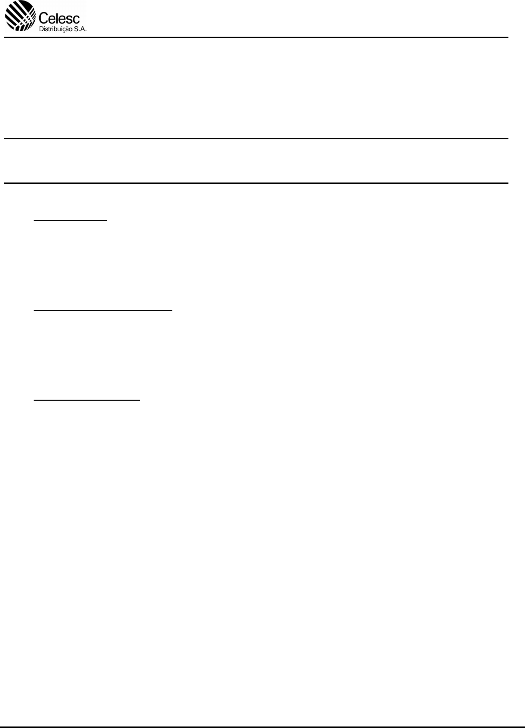 SISTEMA DE SERVIÇOS E CONSUMIDORES SUBSISTEMA MEDIÇÃO CÓDIGO TÍTULO FOLHA I-321.0037 TELEMEDIÇÃO DO GRUPO B EM EDIFÍCIOS DE USO COLETIVO PADRONIZAÇÃO APROVAÇÃO ELABORAÇÃO VISTO ASAD RES. DCL N° 003/2018 - 10/01/2018 DVAM DPGT MANUALDE PROCEDIMENTOS 1/14 1. FINALIDADE Estabelecer os requisitos mínimos para homologação, especificação e instalação de telemedição em edifícios atendidos pela rede de distribuição da Celesc em baixa tensão. 2. ÂMBITO DE APLICAÇÃO Aplica-se à Celesc Distribuição S.A., às unidades consumidoras ligadas em baixa tensão situadas na área de concessão e aos instaladores, fabricantes e fornecedores de materiais. 3. ASPECTOS LEGAIS a) NBR 5410 – Instalações elétricas em baixa tensão; b) NR 10 – Segurança em instalações e serviços em eletricidade; c) E-321.0004 – Caixas para aplicação em medição descentralizada e com utilização de Barramento Blindado; d) E-321.0003 – Barramento Blindado (Bus-way); e) NT – 03 – Fornecimento de Energia Elétrica à edifícios de uso coletivo. CÓDIGO: I-321.0037 FL. 2/14 PADRONIZAÇÃO APROVAÇÃO ELABORAÇÃO VISTO ASAD RES. DCL N° 003/2018 - 10/01/2018 DVAM DPGT 4. CONCEITOS BÁSICOS 4.1. Caixa de Medição Compartimento destinado a acomodar medidores de energia elétrica e demais equipamentos de medição e seus acessórios. 4.2. Medidor de Energia para Telemedição Equipamento registrador de grandezas elétricas, dotado de porta de comunicação, podendo opcionalmente efetuar o corte/reconexão do consumidor à distância. 4.3. Barramento RS-485 Meio de transmissão de dados por cabeamento, sendo largamente aceito em praticamente todo tipo de indústria. 4.4. Bloco RJ-11 Conjunto de até 6 (seis) tomadas tipo RJ-11 constituindo um único corpo metálico blindado ou plástico, conforme Desenho No 06, sendo utilizado para concentrar os cabos de saída dos medidores de energia. 4.5. Bloco de Conexão Ininterrupta Conjunto de até 6 (seis) tomadas para conectores tipo agulha que tem a finalidade de interligar os cabos de comunicação principais das prumadas. 4.6. Amplificador de Sinal Equipamento que permite a centralização dos dados e comunicação a grandes distâncias ou número acima do pré-determinado de medidores, compensando ainda o nível de atenuação desse sinal com amplificadores de modo a obter mais clareza e precisão das informações. 4.7. Conversor RS-485 para RS-232 Equipamento que realiza a conversão do padrão RS-485 para RS-232, visando à compatibilidade com a remota de comunicação e o barramento RS-485. CÓDIGO: I-321.0037 FL. 3/14 PADRONIZAÇÃO APROVAÇÃO ELABORAÇÃO VISTO ASAD RES. DCL N° 003/2018 - 10/01/2018 DVAM DPGT 4.8. Remota de Comunicação Equipamento móvel capaz de trafegar dados de medição por meio da tecnologia celular, GPRS ou 3G, possibilitando a leitura remota dos medidores de energia. 4.9. Cabo de Rede de Comunicação Cabo de controle, com dois pares trançados, de cobre eletrolítico estanhado, tempera mole classe 2, AFD 2P-24 AWG (0,61 mm²), isolação polietileno termoplástico (PE) 70ºC, identificados em cores distintas; com blindagem individual por par de fitas de poliéster aluminizada + corda dreno aluminizada classe 2; protegidos por capa de PVC, antichama, com diâmetro externo aproximado 7,0 mm. Resistência elétrica a 20º centígrados menor que 83 Ω/km. Resistência de isolamento a 20º centígrados maior ou igual 5.000 MΩ/km. Capacitância mínima 77 pF/km. Rigidez dielétrica entre condutores e blindagem 400Vca aplicados durante 1(um) minuto. Tensão de operação (Vrms) de 250 Volts. Peso aproximado de 0,050 kg/m. 4.10. Medição Descentralizada Medição de energia realizada de forma distribuída pelo empreendimento e mais próxima ao consumidor final. 4.11. Medição Centralizada Medição de energia realizada de forma centralizada em um único local do empreendimento, com livre e fácil acesso ao quadro de medição. 4.12. Vistoria Procedimento realizado pela Celesc D na unidade consumidora, previamente à ligação, com a finalidade de verificar a adequação aos padrões técnicos e de segurança da Celesc. Os demais conceitos abordados nesta Normativa poderão ser encontrados na literatura relacionada no item 3, Aspectos Legais. CÓDIGO: I-321.0037 FL. 4/14 PADRONIZAÇÃO APROVAÇÃO ELABORAÇÃO VISTO ASAD RES. DCL N° 003/2018 - 10/01/2018 DVAM DPGT 5. PROCEDIMENTOS GERAIS 5.1. Condições Gerais 5.1.1. Será permitida a medição nos andares ou distribuídas pelo empreendimento, desde que atendidos os requisitos mínimos abordados neste tópico. 5.1.2. Os projetos de telemedição, quando houver equipamentos homologados e disponíveis, terão a funcionalidade de corte e reconexão do consumidor remotamente. 5.1.3. Quando utilizado barramento blindado, deverão ser seguidos os padrões de caixas homologadas pela Celesc D e específicos para aplicação em medição descentralizada, conforme Especificação E-321.0004. 5.1.4. Quando utilizados cabos para distribuição de energia interna ao empreendimento, serão admitidos os demais padrões de caixa homologados e disponíveis no site da Celesc D, porém deverá ser previsto o espaço necessário para instalação dos equipamentos de comunicação dentro destas montagens. 5.1.5. Deverá ser prevista uma tubulação de PVC rígido (antichamas), com diâmetro mínimo de 32 mm em paralelo com o sistema de distribuição de energia interno (barramento blindado ou cabos) e em toda a prumada para acomodação dos cabos de comunicação da infraestrutura de rede. 5.1.6. Quando se tratar de medição descentralizada, no pavimento térreo, deverá ser instalada caixa conforme Desenho No 9 da Especificação E-321.0004, na qual ficará concentrado o barramento RS-485 que sobe pela prumada e os demais barramentos para atendimento aos medidores das unidades consumidoras de uso comum. Quando o empreendimento for constituído de mais de uma torre, cada uma 