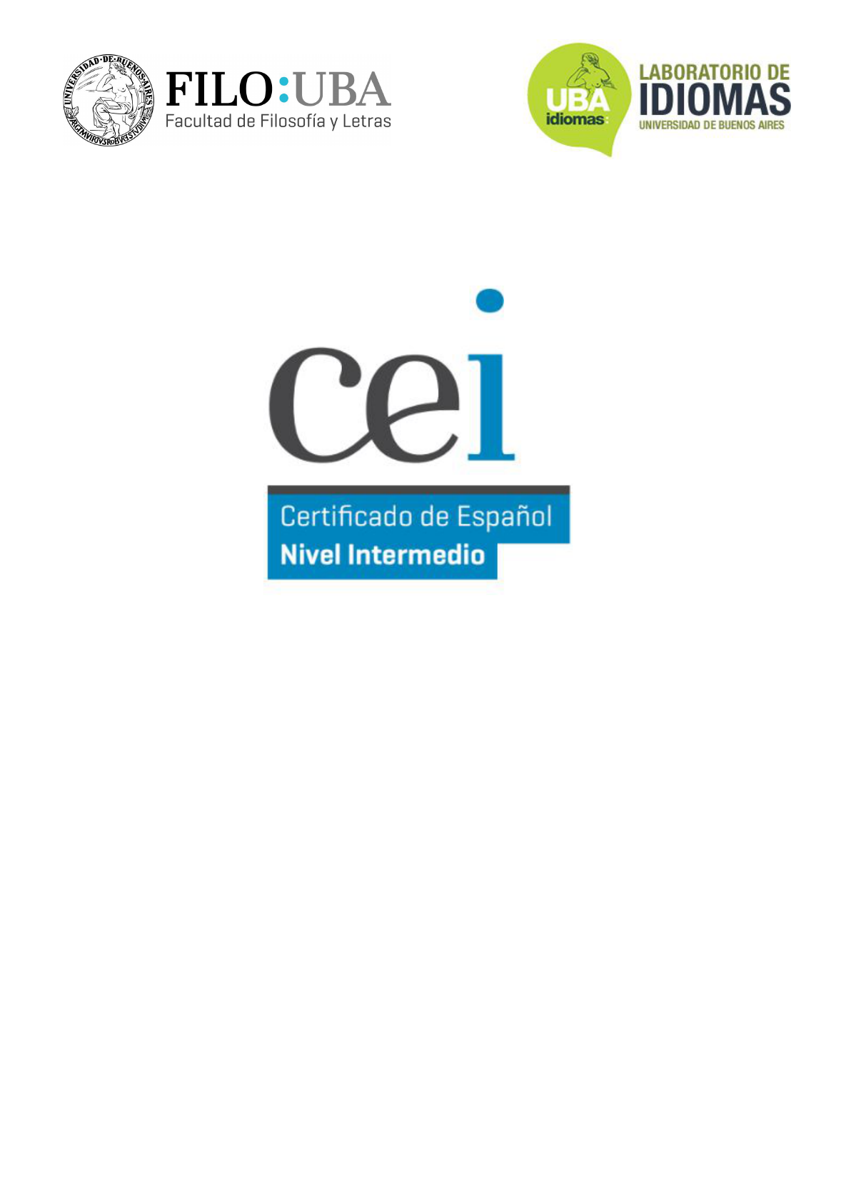CERTIFICADO DE ESPAÑOL -NIVEL INTERMEDIO- MODELOS DE EXÁMENES Contenidos 1. El examen escrito. Generalidades. 2. Primera parte: Comprensión auditiva (Actividad 1) 3. Segunda parte: Comprensión lectora (Actividades 2 y 3) 4. Tercera parte: Producción escrita (Actividades 4 y 5) 5. El examen oral CEI - Modelos de exámenes 2 1. El examen escrito. Generalidades. El examen escrito consta de tres partes: En la primera parte, en la actividad 1, que evalúa la comprensión auditiva, los candidatos escuchan un audio (o un video) y deben realizar una actividad con la información obtenida. Los estudiantes escuchan el audio, o ven el video, dos veces, y pueden tomar notas para luego responder a la consigna. Las notas no se tienen en cuenta para la evaluación, solamente se considera la respuesta a la actividad propuesta. En las consignas se puede pedir completar frases, responder preguntas, completar un gráfico, describir un proceso; entre otras operaciones.. La segunda parte, que consta de las actividades 2 y 3, evalúa la comprensión lectora. Los candidatos deben leer dos textos y responder a las consignas. En general hay un ejercicio de completamiento de un resumen a partir de a información leída, un ejercicio de Verdadero/Falso, o responder preguntas; entre otras posibilidades. En la tercera parte, que evalúa la producción escrita, encontramos las actividades 4 y 5. En ellas se les pide a los candidatos que escriban dos textos de entre 15 y 20 líneas. Los textos deben cumplir con la consigna, tienen que ser adecuados en cuanto al género y al propósito y construir adecuadamente la relación entre el que escribe y el que recibe el texto. A modo de ejemplo, si se solicita escribir un mail a un amigo o compañero de la facultad, el registro puede ser informal en algunos párrafos. Si se pide escribir un informe o un artículo de opinión, el registro debe ser adecuado para el destinatario (público general, docente universitario, lectores de una revista, etc) CEI - Modelos de exámenes 3 2. Primera parte: comprensión auditiva Ejemplos de Actividad 1 Ejemplo A Para realizar esta actividad debe escuchar el Audio N°1 ACTIVIDAD 1 A continuación usted escuchará una entrevista radial a María del Carmen Feijóo, socióloga, que habla sobre las grandes ciudades. El audio se pasará dos veces y usted puede tomar notas en la página en blanco adjunta. Tomando la información de la entrevista, usted debe contestar por escrito una pregunta de su profesor de la Universidad: ¿Qué oportunidades brinda una gran ciudad? Explíquelo en no menos de 10 líneas, con la información de la entrevista. ¿QUÉ OPORTUNIDADES NOS OFRECE UNA CIUDAD? Se tomarán en cuenta: ● la comprensión del tema, ● la cantidad de información tomada del audio, ● la organización y la gramática de su texto. CEI - Modelos de exámenes 4 Ejemplo B Para realizar esta actividad debe escuchar el Audio N° 2 ACTIVIDAD 1 A continuación, usted escuchará un podcast sobre Julio Sosa. El audio se pasará dos veces y usted puede tomar notas en la página en blanco adjunta. Tomando la información de la presentación, usted debe completar las siguientes frases. Se tomarán en cuenta: ● la comprensión del tema, ● la cantidad de información tomada del audio, ● la organización y la gramática para completar las frases. ● No se tomarán en cuenta errores en la escritura de nombres propios. Se dice que es un cantante rioplantense porque………………………………………… …………………………………………………….………………………………………… ……………………………………………En realidad nació en …………………………. ……………………………………………….………………………………………………. Con la orquesta de Luis Caruso…………………………………………………………… …………………………………………………….………………………………………… …………………………………………………….………………………………………… Decimos que había “cruzado el charco” en referencia a ……………………………….. …………………………………………………….………………………………………… …………………………………………………….………………………………………… El cantante fue bautizado como ………………………………………………………….. por…………………………………………………………………………………………… …………………………………………………….………………………………………… CEI - Modelos de exámenes 5 Ejemplo C Para realizar esta actividad, deberá escuchar el Audio N° 3 (es un video) ACTIVIDAD 1 A continuación, le presentamos un video en el que una artista, Angélica Dass, habla sobre la belleza del color de la piel humana. Vea el video, escuche con atención, y complete las siguientes frases: Se tomarán en cuenta: ● la comprensión del tema, ● la cantidad de información tomada del audio, ● la organización y la gramática para completar las frases. Como fuera de su familia se sentía diferente, se planteó hacer ……………………… …………………………………………………….………………………………………… …………………………………………………….………………………………………… Y para poder utilizar un sistema técnico eligió .………………………………………… …………………………………………………….………………………………………… …………………………………………………….………………………………………… Las fotos se hacen en fondo blanco, tomando una sección de ……