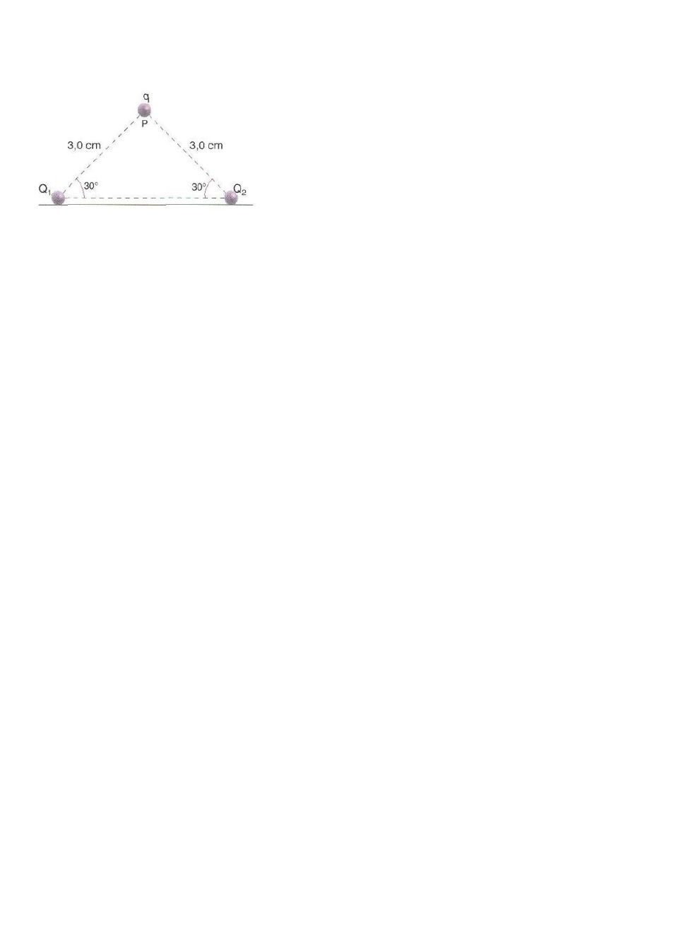 Pergunta 1 Duas cargas elétricas puntiformes idênticas Q1 e Q2, cada uma com 1,0 . 10-7C, encontram-se fixas sobre um plano horizontal, conforme a figura abaixo. Uma terceira carga q, de massa 10g, encontra-se em equilíbrio no ponto P, formando assim um triângulo isósceles vertical. Sabendo que as únicas forças que agem em q são de interação eletrostática com Q1 e Q2 e seu próprio peso, o valor desta terceira carga é: Resposta Selecionada: 1,0 . 10-6C Pergunta 2 Um estudante, usando uma luva de borracha isolante, encosta uma esfera metálica A, carregada com carga +8 µC, em outra idêntica B, eletricamente neutra. Em seguida, encosta a esfera B em outra C, também idêntica e eletricamente neutra. Qual a carga de cada uma das esferas A, B e C respectivamente? Resposta Selecionada: 4μC, 2μC e 2μC Pergunta 3 O fenômeno da indução eletrostática consiste: Resposta Selecionada: C. na separação de cargas no induzido, devido à presença do indutor eletrizado Mas o peso é calculado da seguinte forma: P = m . g P = 0,01 . 10 P = 0,1 N Então: Fel = 0,1 N Força de repulsão entre cada uma das cargas Q1 e Q2 e a carga q: F = K.Q.q / d² F = 9 x 10^9 x 10^-7 .q / 0,03² F = 1,0 x 10^6.q Pra estar em equilíbrio, o peso da carga q deve ser compensado pela resultante das duas cargas de repulsão: m.g = 2.F.cos(teta), onde teta vale 60 graus 0,01 x 10 = 2 x 10^6.q / 2 q = 1,0 x 10^-7 C A = +8uc B = 0 C = 0 Encosta uma esfera metálica A em outra idêntica B,eletricamente neutra A+B/2 = 8+0/2 = 4 A = 4uc B = 4uc C = 0 Encosta a esfera B em outra C,também idêntica e eletricamente neutra B+C/2 = 4+0/2 = 2 A = 4uc B = 2uc C = 2uc Pergunta 4 Dois corpos têm massas iguais a m e cargas também iguais a Q. Devido a sua interação eletrostática, elas sofrem uma força F quando estão separadas de uma distância d. Em seguida, estas partículas são penduradas, a partir de um mesmo ponto, por fios de comprimento L e ficam equilibradas quando a distância entre elas é d1. A cotangente do ângulo a que cada fio forma com a vertical, em função de m, g, d, d1, F e L, é Pergunta 5 Considere que um corpo possui 5,0x1019 prótons e 4,0x1019 elétrons. Considerando a carga elementar 1,6x10-19 C, qual a carga deste corpo? Resposta Selecionada: D. 1,6 C Pergunta 6 Analise os itens a seguir: 1. Um corpo que tem carga positiva possui mais prótons do que elétrons; 2. Dizemos que um corpo é neutro quando ele possui o mesmo número de prótons e de elétrons; 3. O núcleo do átomo é formado por elétrons e prótons. Estão corretas as afirmativas: Resposta Selecionada: 1 e 2 apenas Pergunta 7 Duas esferas igualmente carregadas, no vácuo, repelem-se mutuamente quando separadas a uma certa distância. Triplicando a distância entre as esferas, a força de repulsão entre elas torna-se: Resposta Selecionada: 9 vezes menor 1- a uma distância a força é tal que 2- na distância a força é 3- pela figura vemos que mas então: Q = neCarga prótons: n = 5.10^19 e = 1,6.10^-19 Qp = 5.10^19.1,6.10^-19 = 8 C Carga elétrons: n = 4.10^19 Qe = - 4.10^19.1,6.10^9 = - 6,4 C Carga total do corpo: Qt = Qp + Qe Qt = 8 - 6,4 Qt = 1,6 C Pergunta 8 Em uma impressora a jato de tinta, gotas de certo tamanho são ejetadas de um pulverizador em movimento, passam por uma unidade eletrostática onde perdem alguns elétrons, adquirindo uma carga q, e, a seguir, se deslocam no espaço entre placas planas paralelas eletricamente carregadas, pouco antes da impressão. Considere gotas de raio igual a 10 μm lançadas com velocidade de módulo v = 20 m/s entre placas de comprimento igual a 2,0 cm, no interior das quais existe um campo elétrico vertical uniforme, cujo módulo é E = 8,0×104 N/C (veja figura). Considerando que a densidade da gota seja de 1000 kg/m3 e sabendo-se que a mesma sofre um desvio de 0,30 mm ao atingir o final do percurso, o módulo da sua carga elétrica é de: Resposta Selecionada: 3,1 × 10–14 C Pergunta 9 Dois corpos metálicos carregados com cargas de sinais contrários são interligados por um fio condutor. Enquanto não houver equilíbrio eletrostático entre os corpos, através do fio deslocam-se Resposta Selecionada: elétrons de A para B. Pergunta 10 No vácuo, três cargas elétricas pontuais, Q1, Q2 e Q3, são colocadas numa reta conforme o seguinte a figura: Supondo se que a carga elétrica Q1 é negativa e que a força eletrostática resultante na Carga elétrica Q3 é nula, pode-se afirmar que Resposta Selecionada: o sinal de Q2 é positivo e Q1 > Q2 E como a gota é uma esfera podemos determinar o seu volume: V = 4*pi*r³/3 V = 4*3,14*(10*10^-6)³/3 V = 4,18*10^-15 m³ Determinando a massa: m = p*V m = 1000*4,18*10^-15 m = 4,18*10^-12 Kg O tempo é calculado pela velocidade e distância entre as placas: t = d/v t = 0,02/20 t = 0,001 s Agora a aceleração: a = ds*2/t² a = 0,3*10^-3 * 2 / 0,001² a = 600 m/s² Vamos finalmente calcular a força: F = 4,18*10^-12 * 600 F = 2,5*10^-9 N Sabemos então a força e o campo, vamos calcular a carga: q = F/E q = 2,5*10^-9 / 8*10^4 q = 3,12*10^-14 C Pergunta 11 figura abaixo representa um dipolo elétrico cujas cargas têm módulos iguais a q e estão presas nas extremidades de uma haste de massa desprezível e comprimento “a”. Esta haste está fixa no ponto “O” num campo elétrico uniforme de módulo E. Conclui-se, a partir dos dados que a força resultante sobre o dipolo é Resposta Selecionada: zero e ele gira no sentido horário. Pergunta 12 Na figura abaixo, as cargas elétricas Q1 , Q2 , Q3 e Q4 estão localizadas nos vértices de um quadrado e Q5 na interseção das diagonais do quadrado. Em qual das cargas poderá a força eletrostática resultante ser nula? Resposta Selecionada: Q2 Pergunta 13 A lei de Coulomb afirma que a força de intensidade elétrica de partículas carregadas é proporcional: I. às cargas das partículas; II. às massas das partículas; III. ao quadrado da distância entre as partículas; IV. à 