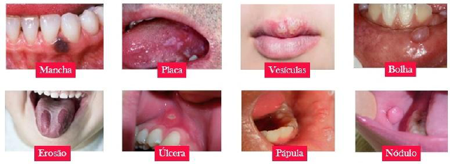 Lesões fundamentais São como as letras de um alfabeto que unidas formam palavras, e destas, as frases, e por fim, um idioma. Da combinação de lesões fundamentais surgem os sinais morfológicos que caracterizam as doenças. As lesões fundamentais são alterações morfológicas que ocorrem na mucosa bucal e assumem características próprias, individualizadas e padronizadas. Juntamente com outros dados clínicos, pode-se identificar as patologias maxilofaciais. Não basta anotar a lesão, esta deve ser descrita como riqueza de detalhes de modo que outro profissional ao ler a ficha clinica possa visualiza-la claramente. O profissional deve ter em mente os fatores que podem produzir alterações nas lesões primarias. Uma história adequada das lesões é fundamental para o raciocínio diagnostico. Deve-se descrever o maior número de características da lesão, como a localização anatômica, consistência, coloração, tamanho, e identificação de benignidade ou malignidade. Lesões benignas – geralmente são lesões capsulares, sem dor e não invade tecidos vizinhos. Lesões malignas – lesões dolorosas e que invadem tecidos vizinhos. Essas lesões são resultantes de processos patológicos básicos: Inflamatórios – processo agudos e crônicos Degenerativo Circulatório – edema Tumorais Metabólicos Defeitos de formação Mácula: ocorre apenas mudança de cor. Pápula: ocorre apenas elevação, menos de 1 cm – mm, seu interior não contém líquido. Placa: ocorre discreta elevação. Alteração na cor. Nódulo: ocorre uma elevação maior que do na pápula, 1 cm. É uma pápula grande. Seu interior também não contém líquido. Vesícula: uma bolha pequena, com líquido ou semilíquido no seu interior, como pus, sangue ou saliva. Tem consistência mole. Bolha: é uma vesícula grande, com líquido no seu interior. Pústula: ocorre antes da fístula romper. Seu interior contém pus. Erosão: ocorre perda de epitélio. É uma lesão mais superficial. Úlcera: são as conhecidas aftas, ocorre exposição de tecido conjuntivo. Crosta: na pele ocorre em forma de casquinha. Na mucosa fica com aspecto amarelado, isso ocorre devido ao processo de cicatrização, onde se têm a formação de fibrina. Séssil: nódulo com base larga. Pediculada: a lesão se movimenta, têm base fina. Papilar: ocorre projeções digitiformes, caria em número. Verrugosa: ocorre projeções em maior número. Aparecem na mucosa e na pele, sendo divididas em cinco tipos mais comuns: Lesões enegrecidas: Manchas ou máculas Perdas teciduais: Erosão e ulcera Lesões vesicobolhosas: Vesículas e bolhas Lesões brancas: Placas Lesões elevadas: Nódulos e pápulas Lesões enegrecidas – manchas ou máculas Manchas ou máculas: São alterações de coloração normal da mucosa bucal, sem que ocorra elevação ou depressão tecidual. Podem variar de tamanho, indo desde puntiformes até centímetros, coloração diferenciada como vermelho, preto, branco, e outras formas, números, distribuição, tamanho e contornos. Deve-se lembrar que, a coloração normal da mucosa é consequência de vários fatores entre eles a coloração do sangue circulante e dos pigmentos melânicos presentes no conjuntivo e no epitélio, que por transparência e reflexão interferem na coloração final da mucosa. Perdas teciduais – erosão e úlcera Erosão, ocorre a perda tecidual superficial do epitélio. Ex: pacientes que realizam uso de medicamentos em comprimidos não indicados, mas usam diretamente na boca, os quais possui indicações de ingestão, podem causar queimaduras e consequentemente perdas teciduais de erosão. A ulcera é a exposição do tecido conjuntivo e terminações nervosas Lesões vesicobolhosas – vesículas e bolhas Vesículas são como bolhas pequenas, medindo mm, e há presença de, contudo liquido no seu interior, e as bolhas são maiores que 1cm, e também possui liquido, como pus, sangue ou até saliva Lesões brancas – placas Placas, possui discreta elevação com alteração de cor Lesões elevadas – pápulas e nódulos Pápulas, são pequenas elevações e no interior sem liquido. Os nódulos são maiores Crosta Encontrada na mucosa e na pele. É devido ao processo de cicatrização. Papilar Possui projeções digitiformes, e varia em expressura tamanho e número. A verrugosa possui aumento no número de projeções. As lesões fundamentais são frequentemente divididas de acordo com suas características: Primárias: São caracterizadas por terem a forma inicial Secundárias: São caracterizadas pela evolução das primarias Localização: É a determinação da posição e da região anatômica onde se localiza a lesão Limites: São demarcadas as estruturas anatômicas adjacentes a lesão Formas: Representa a forma geométrica com a qual a lesão se assemelha Cor: É descrita a cor predominantemente da lesão, como amarelada, enegrecida, esbranquiçada, acastanhada, azulada Tamanho: É descrito em milímetros, medindo o eixo de maior diâmetro ou extensão aproximadamente da lesão Base da lesão: Séssil: quando a base da lesão é maior que o equador (base larga, lembra a forma de uma montanha) Pediculada: quando a base da lesão é menor que o equador (lembra a forma de um cogumelo) Consistência: é descrita a resistência da lesão frente a pressão. Fibrosa Borrachóide – mais flexibilidade Esponjosa Branca Pétrea – dura Elástica Textura: Brilhante Opaca Globosa – possui menor número de projeções Verruciforme ou verrugosa – maior número de projeções Lisa Rugosa – uma quantidade média de projeções Áspera Número: Refere-se a quantidade de lesões semelhantes presentes, quando houver presença de múltiplas anotamos a quantidade, se são simétricas, e sua proximidade as outras Lesões enegrecidas – manchas ou máculas São alterações da coloração normal da mucosa bucal, sem que ocorra elevação ou depressão tecidual. Podem variar em tamanho (des