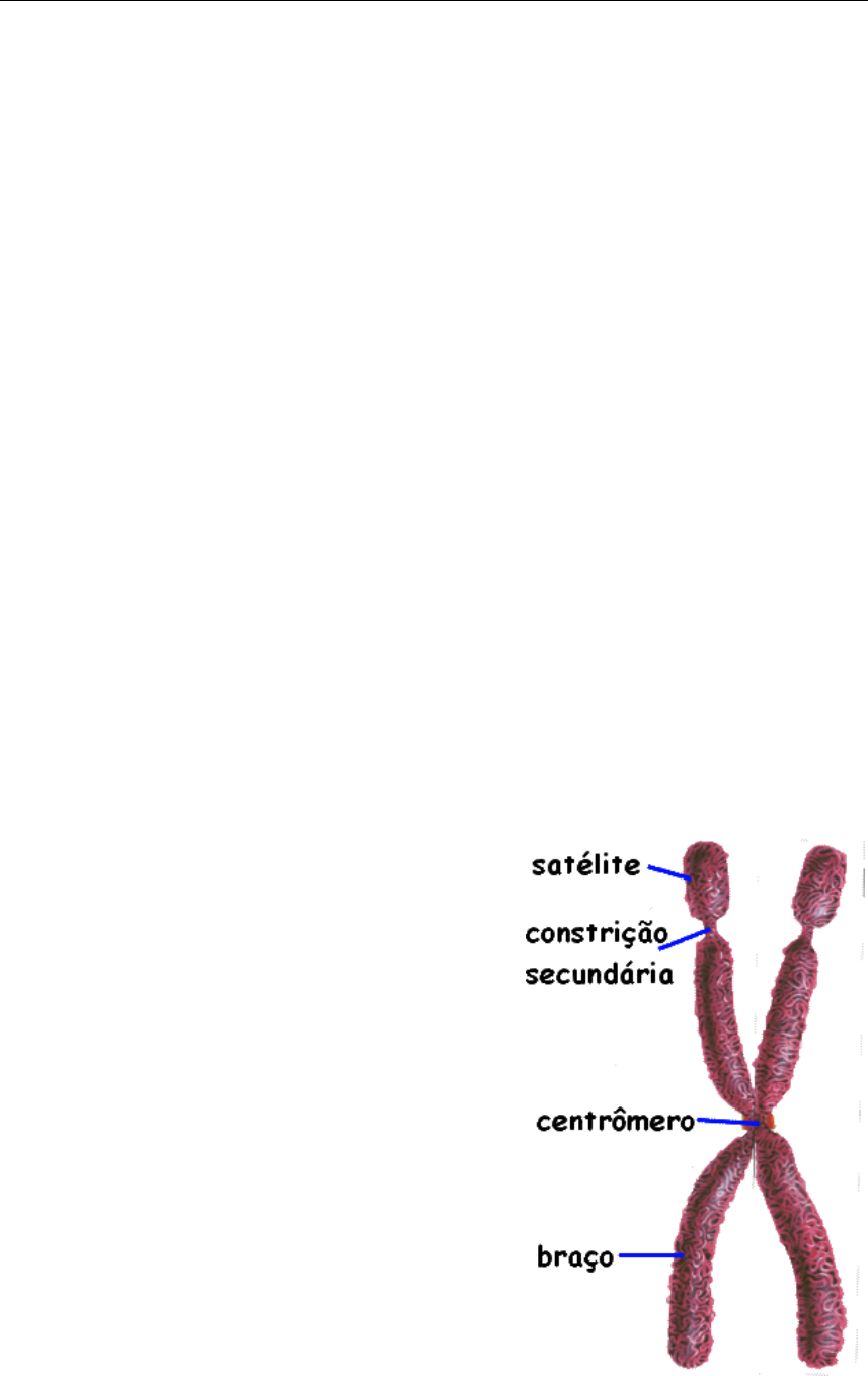 Evolução Cromossômica Cromossomos Procariontes X Eucariontes Podemos conceituar um cromossomo como uma longa molécula de DNA contendo proteínas associadas, bem como enormes regiões sem nenhuma função aparente. Em organismos Procariontes e em Eucariontes, a estrutura dos cromossomos é organizada de forma bem diferente; em indivíduos Procariontes, os cromossomos são geralmente uma única estrutura formada por um filamento de DNA, sem nenhuma configuração definida como nos organismos Eucariontes. Em procariontes, quase toda a informação contida em sua extensão é composta de DNA codificante, ou seja, sem a existência de longas sequencias repetitivas e não codificáveis como nos indivíduos eucariontes. Algumas bactérias possuem um filamento de DNA acessório conhecido como plasmídeo. Tais estruturas possuem uma vantagem adaptativa muito grande, pois geralmente possuem sequências que conferem resistência a antibióticos ou a substâncias nocivas. Os procariontes podem trocar entre si os plasmídeos, aumentando o sucesso adaptativo de toda uma população de bactérias. Já em organismos Eucariontes, os cromossomos possuem uma aparência bem característica, contendo determinadas regiões e estruturas bem específicas: todo cromossomo é composto por duas cromátides, que são divididas por uma estrutura bem condensada denominada centrômero, de grande importância durante o processo de divisão celular na formação do fuso mitótico. Cada pedaço da cromátide dividida é denominado braço, e a posição do centrômero pode variar de cromossomo para cromossomo. Alguns cromossomos possuem uma constrição secundária, além da constrição primaria que compõe o centrômero. Essa região presente em somente alguns cromossomos é geralmente encontrada próxima a extremidade do braço, e delimita uma região denominada zona satelitária (zona SAT), que é uma estrutura responsável pela reorganização do nucléolo celular após a divisão celular. Como dito anteriormente, os cromossomos podem ser classificados quanto a posição do seu centrômero: Ele é denominado metacêntrico quando, dividindo o comprimento de um braço pelo outro (medida denominada razão de braços) encontra-se um valor entre 1 até 1,7. Ele é considerado submetacêntrico quando a razão de braços esta entre 1,71 até 3, acrocêntrico quando a razão de braços está entre 3,1 até 7, e telocêntrico quando essa razão de braços é maior do que 7. O número de cromossomos presentes em organismos eucariontes pode ser muito variado, Renato Realce Renato Realce Renato Realce Renato Realce Renato Realce Renato Realce podendo variar desde 2n = 2, até 2n =1250. Em algumas populações naturais podemos encontrar até mesmo uma variação intraespecífica em relação ao número de cromossomos. A definição do sexo em algumas espécies se dá pela presença ou não de cromossomos específicos. Em algumas espécies, como nos mamíferos, o sexo feminino é definido como aquele indivíduo que recebe dois cromossomos X, e o sexo masculino quando recebe um cromossomo X e outro cromossomo menor, denominado cromossomo Y. Esse sistema é denominado XY. Em aves, o sexo heterogamético é o sexo feminino, sendo que o sistema cromossômico é denominado ZW, aonde indivíduos ZZ são do sexo masculino e ZW, sexo masculino. Alguns outros sistemas, como o sistema X0, presentes em insetos, o sexo é definido quanto à dosagem de cromossomos sexuais que recebe, sendo considerada fêmea o individuo que recebe dois cromossomos X (XX), e macho aquele que recebe apenas um cromossomo (X0) Alterações cromossômicas Toda vez que uma célula entra em processo de divisão celular, algumas vezes erros referentes à divisão podem ocorrer e a célula originada no processo se diferir da célula ancestral em alguma parte do genoma. O próprio sistema biológico da célula possui características que permitem o reparo e até mesmo a morte celular em casos de má divisão ou anomalias nos cromossomos. Podemos classificar essas alterações cromossômicas de duas maneiras, alterações cromossômicas numéricas e estruturais: Alterações Cromossômicas Numéricas são alterações que ocorrem em relação ao aumento ou diminuição do número de cromossomos de um cariótipo. Elas podem ser divididas em: Aneuploidias: quando ocorre o acréscimo ou deleção de alguns pares de cromossomos. Euploidias: quando ocorre a duplicação de todo um lote de complemento cromossômico. Algumas espécies podem apresentar em seu conjunto cromossômico, cromossomos acessórios denominados cromossomos b. tais estruturas se diferem de outros cromossomos por apresentarem uma forma de dispersão não mendeliana, não se dividindo igualmente como os outros cromossomos durante a meiose, podendo se transferir ou não para as células filhas, sendo que seu número, mesmo dentro de uma mesma população, pode ser bastante variável. São cromossomos pequenos com presença grande de heterocromatina e podem conferir certa vantagem adaptativa para seus possuidores. Alterações Cromossômicas Estruturais: são alterações que ocorrem na estrutura de um cromossomo. Elas podem ser: Translocações: quando ocorrem trocas entre os braços de um cromossomo, podendo ser recíprocas quando pedaços são trocados entre si, ou simples quando Renato Realce Renato Realce Renato Realce um pedaço de um cromossomo se transfere para outro. Há um tipo especial de translocação denominada Robertsoniana, que ocorre quando há a fusão de dois cromossomos acrocêntricos. Inversões: ocorrem quando um cromossomo se rompe e se reorganiza no mesmo lugar de maneira diferente, invertendo a ordem dos genes presentes nesse cromossomo. Elas podem ser pericêntricas quando contém o centrômero na inversão, e paracêntrica quando não o contêm. Deleções: Ocorre quando há deleção de um pedaço ou de todo um braço de um cromossomo de uma espécie, podendo ser perdidos genes 