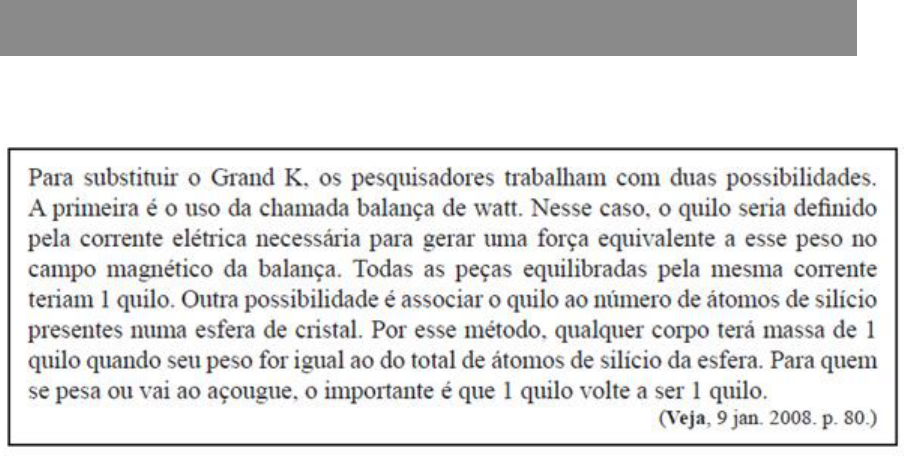 Prova Online Disciplina: 100750 - PRÁTICA TEXTUAL EM LÍNGUA PORTUGUESA Abaixo estão as questões e as alternativas que você selecionou: Parte superior do formulário QUESTÃO 1 Assinale a alternativa correta, a partir da leitura do parágrafo a seguir. a ) No parágrafo anterior, a frase-núcleo é desenvolvida por divisão. b ) Esse é um exemplo de parágrafo informativo: responde as questões o quê, quando, onde, por quê. c ) O parágrafo anterior é desenvolvido por exemplificação. d ) No parágrafo anterior, temos desenvolvimento por definição. QUESTÃO 2 Entre as alternativas abaixo, assinale a que apresenta sequências argumentativas. a ) Editorial. b ) Fábula. c ) Bula de remédio. d ) Instruções de montagem. QUESTÃO 3 Em qual das alternativas a seguir temos um exemplo de repetição propriamente dita? a ) Estudar é muito mais que resolver tarefas: é a essência do aprendizado. b ) Estudar é muito mais que resolver tarefas; em suma, é compreender o que é feito. c ) Estudar é muito mais que resolver tarefas: é resolver tarefas importantes. d ) Estudar é muito mais que resolver tarefas: é compreender o que é feito. QUESTÃO 4 Leia o texto abaixo. Concordo com você. Mande o projeto pelo seu amigo. Amanhã te mando fotos da minha viagem. a ) Ao produzir um bilhete ou carta - e buscar sua coerência - é importante considerar a intertextualidade. b ) O texto possui um excesso de informação, o que constitui um caso de incoerência textual. c ) O texto acima é plenamente coerente, a falta da indicação do emissor e do destinatário não prejudicam a coerência. d ) A ausência de elementos de contextualização (emissor, destinatário, local e data) comprometem a coerência do texto. Ver justificativa da resposta QUESTÃO 5 Assinale a alternativa que indica a estratégia de referenciação empregada na expressão em itálico no fragmento a seguir. a ) Retomada. b ) Reativação. c ) Desfocalização. d ) Introdução. QUESTÃO 6 Assinale a proposição correta considerando o tema sequências textuais. a ) As sequências textuais apresentam características linguísticas estáveis e facilmente reconhecíveis. b ) As sequências textuais, ao contrário dos gêneros, dificilmente prestam-se ao ensino de leitura e produção de textos. c ) A sequência dialogal só pode ser localizada em textos ficcionais, como o discurso direto em romances. d ) A sequência narrativa é considerada uma sequência pouco autônoma; encontrada, na maioria das vezes, compondo outras sequências. QUESTÃO 7 Assinale a alternativa que apresenta uma característica da sequência descrição. a ) Uso de verbos de estado. b ) Verbos, preferencialmente, no pretérito perfeito. c ) Uso de conectivos do tipo lógico. d ) Emprego de argumento de autoridade. QUESTÃO 8 Sobre o parágrafo e suas características, assinale a alternativa correta. a ) Os parágrafos têm estrutura fixa: declaração inicial e desenvolvimento por comparação. b ) Não é possível estabelecer nenhuma relação entre paragrafação e leitura. c ) A boa organização do texto em parágrafos contribui para sua legibilidade. d ) A importância dos parágrafos é apenas e tão somente visual. Parte inferior do formulário