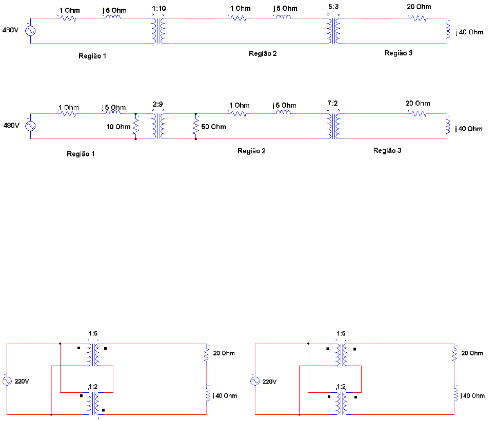 Terceira lista de Exerc´ıcios de CEME I: Transformadores Exerc´ıcio 1 Fazer as seguintes questo˜es do livro Fitzgerald, Ma´quinas ele´tricas, 6ed. Problema: 2.1, 2.3, 2.7, 2.8, 2.9, 2.10, 2.11, 2.12, 2.13, 2.14, 2.15, 2.17, 2.19, 2.20, 2.21, 2.24, 2.25, 2.26, 2.28, 2.29, 2.32 Exerc´ıcio 2 Utilizando as te´cnicas de rebatimento de tenso˜es e impedaˆncias, obtenha os circuitos equivalentes vistos das regio˜es 1, 2 e 3 dos circuitos das figuras 2. Considere os transformadores ideais. Figure 1: Circuitos do Exerc´ıcio 2 Exerc´ıcio 3 Calcule as correntes nos prima´rios e secunda´rios de cada um dos transformadores dos circuitos do Exerc´ıcio 2. Exerc´ıcio 4 Determine as correntes consumidas pelas fontes dos circuitos da Figura 2. Figure 2: Circuitos do Exerc´ıcio 4 1 Exerc´ıcio 5 Determine as tenso˜es e correntes nos prima´rios e secunda´rios dos transformadores dos circuitos da Figura 3. Figure 3: Circuitos do Exerc´ıcio 5 Exerc´ıcio 6 Um transformador monofa´sico de 75kVA, 240:7970V tem os seguintes paraˆmetros de circuito equiv- alente referidos ao lado de alta tensa˜o: R1 R2 X1 X2 Rc Xm 5, 93Ω 3, 39Ω 43, 2Ω 40, 6Ω 244kΩ 114kΩ a) Obtenha o circuito equivalente visto do lado de baixa tensa˜o. b) Considerando que o transformador e´ alimentado com tensa˜o nominal, determine a corrente de entrada e a tensa˜o terminal do secunda´rio caso o transformador alimente cada uma das seguintes cargas: i - Z = 700∠0◦Ω ii - Z = 700∠45◦Ω iii - Z = 700∠− 45◦Ω Utilize para os ca´lculos o circuito equivalente simplificado com o ramo central deslocado. c) Esboce os diagramas fasoriais de cada um dos casos do item anterior. Exerc´ıcio 7 Desenhe os diagramas fasoriais para cada um dos circuitos equivalentes de transformador mostrados nas figuras seguintes. Fac¸a para os treˆs casos: carga capacitiva, carga indutiva e carga resistiva. (a) Modelo com ramo central deslo- cado para esquerda (b) Modelo com ramo central deslo- cado para direita (c) Modelo Completo Figure 4: Circuitos do Exerc´ıcio 7 2 Exerc´ıcio 8 Considere dois modelos de transformador monofa´sico de 2300:230V: Modelo Poteˆncia Impedaˆncia Se´rie (Referida ao lado de alta) Modelo 1 15kVA 3, 5 + j17, 6 Ω Modelo 2 10kVA 5, 3 + j26, 5 Ω O dono de uma fabrica precisa ligar dois transformadores em paralelo para atender uma carga de 2, 59 + j1, 50 Ω. Considerando a tensa˜o de entrada da fabrica igual a 2300V , calcule as correntes nos secunda´rios dos dois transformadores, a corrente e a tensa˜o na carga se: a) Dois transformadores do modelo 1 forem ligados como na figura 5(a); b) Dois transformadores, um do modelo 1 e outro do modelo 2, forem ligados como na figura 5(a); c) Dois transformadores do modelo 1 forem ligados, de forma equivocada, com as polaridades inver- tidas, como na figura 5(b); d) Dois transformadores, um do modelo 1 e outro do modelo 2, forem ligados, de forma equivocada, com as polaridades invertidas, como na figura 5(b); e) Quais concluso˜es podemos tirar analisando os quatro itens anteriores? (a) Ligac¸a˜o Correta (b) Ligac¸a˜o Errada Figure 5: Circuitos do Exerc´ıcio 8 Exerc´ıcio 9 Considere um transformador cuja curva de magnetizac¸a˜o pode ser dada por: im 0, 00 0, 30 0, 50 0, 60 0, 80 0, 90 1, 00 1, 50 2, 00 3, 00 4, 00 5, 00 6, 00 7, 00 8, 00 9, 00 10, 00 λm 0, 00 0, 23 0, 35 0, 40 0, 45 0, 46 0, 47 0, 49 0, 50 0, 52 0, 54 0, 56 0, 57 0, 58 0, 59 0, 60 0, 61 Utilizando a linguagem de programac¸a˜o Python, fac¸a os seguintes itens: a) Plote a curva de magnetizac¸a˜o dada, ou seja, crie um gra´fico de λm× im. Dica: use o Numpy para criar os dois vetores com os dados apresentados na tabela e o Matplotlib para plotar a curva; b) Escreva uma func¸a˜o para calcular a corrente de magnetizac¸a˜o, no domı´nio do tempo, do transfor- mador. Esta func¸a˜o devera´ retornar um vetor com a corrente de magnetizac¸a˜o e devera´ ter como entrada dois vetores a amplitude e frequeˆncia da tensa˜o induzida ale´m de um par de vetores (λm e im) que representam a curva de magnetizac¸a˜o do transformador e um vetor de tempo. Dicas: i- Considerando que a tensa˜o induzida e´ dada por e1(t) = Epsen (ωt), onde ω e´ a frequeˆncia angular e Ep, escreva uma linha de co´digo para criar um vetor de fluxo concatenado em func¸a˜o do tempo. 3 ii- Em um loop for, utilize a func¸a˜o interp do Numpy para combinar o vetor de fluxo concatenado com os vetores da curva de magnetizac¸a˜o para obter a corrente de magnetizac¸a˜o iii- Considere que a curva de magnetizac¸a˜o tem a mesma caracter´ıstica na regia˜o negativa. Ou seja, se im = 0.30 A→ λm = 0.23Wbe, enta˜o im = −0.30 A→ λm = −0.23Wbe c) Utilizando a func¸a˜o anterior, compute e plote a corrente de magnetizac¸a˜o para cinco diferentes casos (todos com frequeˆncia de 60Hz): Ep = 50V , Ep = 100V , Ep = 150V , Ep = 200V e Ep = 220V . Observe a distorc¸a˜o harmoˆnica em cada um dos casos. d) Plote o espectro harmoˆnico de cada uma das correntes. Use a seguinte func¸a˜o para obter as se´ries de Fourier das correntes de magnetizac¸a˜o; 1 import numpy as np 2 3 # Funcao para computar a s e r i e de f o u r i e r de um s i n a l 4 # entrata − vetor do s i n a l que s e ra ana l i s ado 5 # tempo − vetor de tempo 6 # O vetor de entrada tem que t e r o mesmo tamanho do vetor de tempo 7 de f s e r i e F o u r i e r ( entrada , tempo ) : 8 f o u r i e r = np . f f t . f f t ( entrada ) 9 pas sode in teg racao = tempo [1]− tempo [ 0 ] 10 f r e q u e n c i a s = np . f f t . f f t f r e q ( l en ( entrada ) , d=pas sode in t eg racao ) 11 re turn f r equenc i a s , abs ( f o u r i e r /( l en ( entrada ) /2) ) e) Quais as amplitudes e frequeˆncias das componentes harmoˆnicas da corrente de magnetizac¸a˜o para cada um dos casos? O que voceˆ pode concluir disso? Exerc´ıcio 10 Um transformador de 50kV A, 127 : 13800V e 60Hz tem os seguintes resultados para 