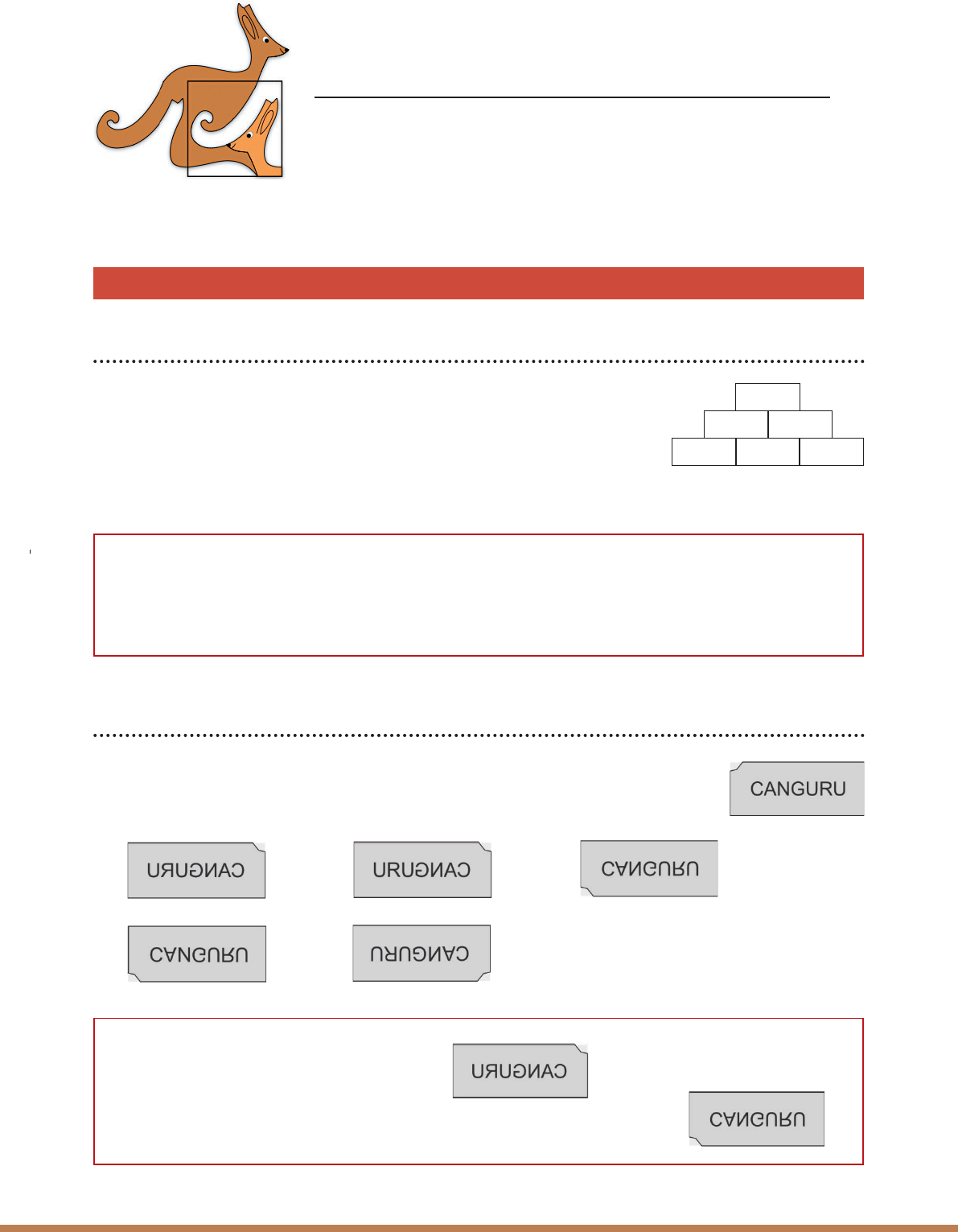 1 Canguru de Matemática – Brasil – 2017 – Direitos Reservados – J – Respostas E st e m at er ia l é p ro te gi do p el a Le i d e D ire ito s A ut or ai s co nf or m e ex pr es so n a Le i n o 9. 61 0 de 1 9 de fe ve re iro d e 19 98 . É v ed ad o o us o co m er ci al de st e te xt o e su a re pr od uç ão , n o to do o u em p ar te , s em a a ut or iz aç ão d o C on se lh o da O rg an iz aç ão K an go ur ou S an s Fr on tiè re s (K S F ). Canguru de Matemática Brasil – 2017 Prova Nível J – Respostas ■ Problemas de 3 pontos Questão 1 No diagrama, cada número é a soma dos dois números debaixo dele. Qual é o número que deve ser escrito na casa com o ponto de inter- rogação? (A) 15 (B) 16 (C) 17 (D) 18 (E) 19 1. Alternativa B Na casa vazia da camada do meio o número a ser escrito é 2039 – 2020 = 19. Na camada de baixo, o número da casa central é 2020 – 2017 = 3. Portanto, na casa com o ponto de interrogação, deve ser escrito o número 19 – 3 = 16. Questão 2 Pedro escreveu a palavra CANGURU numa peça de vidro transparente. O que ele irá ver se virar o vidro do outro lado e então rodar a peça de 180°? (A) (B) (C) (D) (E) 2. Alternativa C Ao virar o vidro do outro lado, Pedro verá: Em seguida, fazendo uma rotação de 180o ou meia volta, Pedro irá ver: 2039 2020 ? 2017 2 Canguru de Matemática – Brasil – 2017 – Direitos Reservados – J – Respostas E st e m at er ia l é p ro te gi do p el a Le i d e D ire ito s A ut or ai s co nf or m e ex pr es so n a Le i n o 9. 61 0 de 1 9 de fe ve re iro d e 19 98 . É v ed ad o o us o co m er ci al de st e te xt o e su a re pr od uç ão , n o to do o u em p ar te , s em a a ut or iz aç ão d o C on se lh o da O rg an iz aç ão K an go ur ou S an s Fr on tiè re s (K S F ). Questão 3 Ângela fez uma peça decorativa sobrepondo asteroides (fi guras que parecem estrelas) cinzentas e brancas. As áreas dos asteroides são 1 cm2, 4 cm2, 9 cm2 e 16 cm2. Qual é a área total das regiões cinzentas visíveis na fi gura que repre- senta a peça criada por Ângela? (A) 9 cm2 (B) 10 cm2 (C) 11 cm2 (D) 12 cm2 (E) 13 cm2 3. Alternativa B A área da região cinza mais interna é igual a 4 – 1 = 3 cm2 e a área da região cinzenta maior é 16 – 9 = 7 cm2. Portanto, a área total cinzenta da peça criada por Ângela é 3 + 7 = 10 cm2. Questão 4 Maria tem 24 reais para dar aos seus quatro fi lhos. Um deles não tem nada e os outros três têm 12 reais cada um. Quantos reais ela deve dar para cada um desses três fi lhos, de modo que, ao fi m da doação, todos os quatro fi lhos tenham quantias iguais? (A) 1 (B) 2 (C) 3 (D) 4 (E) 5 4. Alternativa C Seja x a quantia que ela deve dar para cada um dos três fi lhos que já têm 12 reais. O que restar ela irá dar para o quarto fi lho, que fi cará com 24 – 3x reais. Temos, então, 24 – 3x = = 12 + x ⇔ 4x = 12 ⇔ x = 3. Outra maneira: Os fi lhos possuem um total de 36 reais e com a doação de 24 reais fi carão com 60 reais. Esses 60 reais divididos por quatro resultam 15, logo ela dá 15 – 12 = 3 reais para cada um dos três irmãos. Questão 5 Qual das fi guras a seguir representa o caminho que o centro da roda faz enquanto a roda rola ao longo do percurso em zigue-zague? (A) (B) (C) (D) (E) 3 Canguru de Matemática – Brasil – 2017 – Direitos Reservados – J – Respostas E st e m at er ia l é p ro te gi do p el a Le i d e D ire ito s A ut or ai s co nf or m e ex pr es so n a Le i n o 9. 61 0 de 1 9 de fe ve re iro d e 19 98 . É v ed ad o o us o co m er ci al de st e te xt o e su a re pr od uç ão , n o to do o u em p ar te , s em a a ut or iz aç ão d o C on se lh o da O rg an iz aç ão K an go ur ou S an s Fr on tiè re s (K S F ). 5. Alternativa E A distância do centro da roda ao percurso é sempre igual ao raio da roda. Assim, exceto nos pontos mais altos e nos pon- tos mais baixos, o caminho do centro da roda é um segmen- to paralelo ao percurso. Nos pontos mais altos, o centro da roda descreve um arco de circunferência, porque a roda gira ao redor do ponto de apoio, mas nos pontos mais baixos a roda muda imediatamente do ponto de apoio no declive para o ponto de apoio no aclive, sem que o centro descreva arcos. Questão 6 Algumas garotas estavam dançando em roda. Antonia era a quinta à esquerda de Bianca e a oitava à direita de Bianca. Quantas garotas havia na roda? (A) 11 (B) 12 (C) 13 (D) 14 (E) 15 6. Alternativa C À esquerda de Bianca havia quatro garotas entre ela e Antonia e à direita, havia sete garo- tas. Portanto, havia na roda 4 + 7 + 2 = 13 garotas. Questão 7 O círculo de raio 1 rola sem escorregar sobre uma reta, do ponto K ao ponto L, sendo KL = 11 π , confor- me mostrado na fi gura. Como aparecerá o círculo no fi nal do percurso em L? (A) (B) (C) (D) (E) 7. Alternativa E Quando o círculo gira uma volta inteira, anda horizontalmente o equivalente ao seu períme- tro �, igual a 2π ? 1 = 2π. Como KL � = 11 π 2π = 11 2 = 5,5, concluímos que o círculo anda o equivalente a 5 voltas e meia. Portanto, sua posição será . K L 4 Canguru de Matemática – Brasil – 2017 – Direitos Reservados – J – Respostas E st e m at er ia l é p ro te gi do p el a Le i d e D ire ito s A ut or ai s co nf or m e ex pr es so n a Le i n o 9. 61 0 de 1 9 de fe ve re iro d e 19 98 . É v ed ad o o us o co m er ci al de st e te xt o e su a re pr od uç ão , n o to do o u em p ar te , s em a a ut or iz aç ão d o C on se lh o da O rg an iz aç ão K an go ur ou S an s Fr on tiè re s (K S F ). Questão 8 Marcos joga xadrez. Nesta temporada ele jogou 15 vezes, das quais venceu nove. Ele ainda tem mais cinco partidas para jogar. Qual será seu índice percentual de sucesso se ele vencer todas essas cinco partidas? (A) 60% (B) 65% (C) 70% (D) 75% (E) 80% 8. Alternativa C Se o número de vitórias é 9 + 5 = 14, num total de 15 + 5 = 20 partidas, o índice de sucesso é 14 20 = 0,7 = 70%. Questão 9 Um oitavo dos