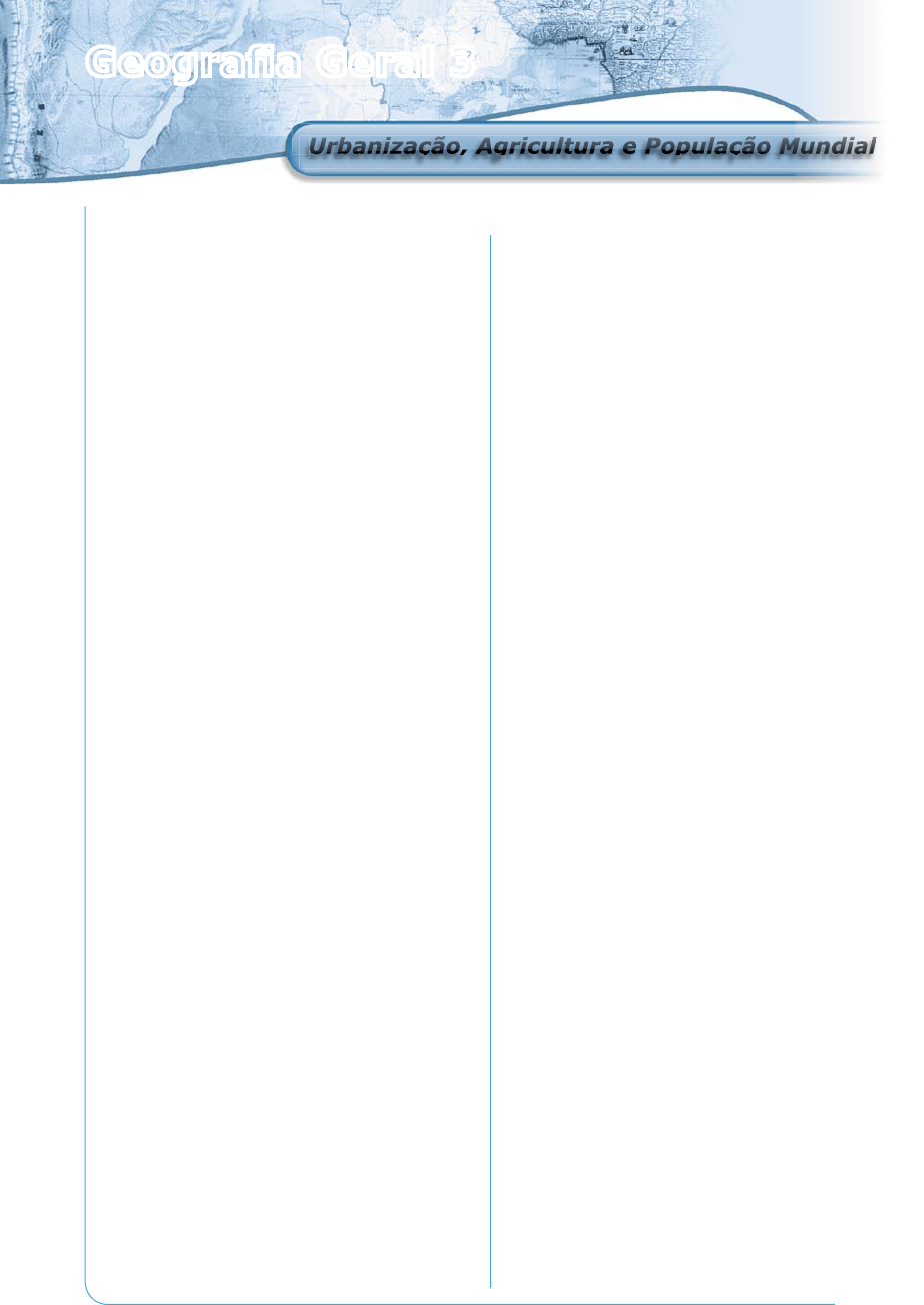 35 PV 2D -0 6- G EG -3 4 Geografi a Geral 3 Urbanização, Agricultura e População MundialUrbanização, Agricultura e População Mundial Capítulo 1 01. UEL-PR “A população, além de trocar de unidade espacial de forma duradoura, modifi ca sua atividade, transferindo- se do setor primário para o secundário ou terciário.” O texto refere-se à migração: a) pendular. d) rural-urbana. b) sazonal. e) urbano-rural. c) rural-rural. 0 2. UFSM-RS Assinale a alternativa incorreta relacionada às carac- terísticas da urbanização no século XX. a) Aceleração acentuada no ritmo de crescimento das cidades. b) Distribuição do fenômeno urbano por todos os continentes. c) Desenvolvimento das metrópoles modernas. d) Expansão da urbanização para além dos limites territoriais das cidades. e) Desvalorização do solo e não-fragmentação do espaço urbano. 0 3. UFSM-RS Nunca, na história da humanidade, houve tamanha concentração de poder num número limitado de luga- res, representados geografi camente pelas: a) capitais dos Tigres Asiáticos e dos países recen- temente industrializados (NICs). b) áreas do Círculo de Fogo, no Sudeste Asiático, Estados Unidos e Alemanha. c) Nações Unidas e Wall Street em Nova Iorque. d) megalópoles da América do Norte, do Japão e da Europa Ocidental, entre a planície do Pó e a bacia de Londres. e) cidades de Washington e Moscou, símbolos da atual bipolaridade mundial. 0 4. UFRGS-RS Entre os equipamentos urbanos que condicionam a descentralização das atividades econômicas e con- tribuem para o processo de decadência das áreas centrais das grandes cidades estão os: I. postos de saúde. II. shopping centers. III. cemitérios. IV. hipermercados. Quais estão corretos? a) Apenas I, II e III d) Apenas II e IV b) Apenas I, II e IV e) I, II, III e IV c) Apenas I e II 0 5. Unirio-RJ Leia o poema abaixo e, a seguir, assinale o que for correto. A rua diferente Na minha rua estão cortando árvores botando trilhos construindo casas. Minha rua acordou mudada os vizinhos não se conformam. Eles não sabem que a vida tem dessas exigências brutas. Só minha fi lha goza o espetáculo e se diverte com os andaimes, à luz da solda autógena e o cimento escorrendo nas formas. ANDRADE, Carlos Drummond de. Sentimentos do mundo. 6. ed. Rio de Janeiro: Record. p. 28 Do ponto de vista geográfi co, o poema retrata a) a ação humana na transformação de uma paisa- gem rural. b) o confl ito entre pais e fi lhos ou entre gerações. c) a ação humana na contínua transformação da paisagem urbana. d) a transformação da paisagem humanizada em paisagem natural. e) a brutalidade da ação humana sobre a natureza. 0 6. UFRR À medida que duas ou mais cidades crescem, tornando seus limites físicos muito próximos, estamos diante de um processo conhecido como: a) globalização. d) aglomeração. b) especulação. e) conurbação. c) aglutinação. 0 7. UFPB A metrópole é o lugar em que se dão sucessivas adap- tações do espaço urbano com o objetivo de atender às exigências do mundo moderno, o que a distingue de quaisquer outras cidades. A distinção entre as metrópo- les e as outras cidades pode ser identifi cada pela: a) construção de habitações para absorver a popu- lação oriunda da zona rural. b) construção de grandes avenidas perimetrais e radiais que cruzam a cidade. c) revitalização do sítio urbano e dos centros históri- cos para preservar a memória urbana. d) implantação de infra-estruturas e serviços que interligam e polarizam vários centros urbanos. e) valorização dos terrenos nas áreas periféricas por causa do crescimento horizontal da cidade. 36 08. Relacione as colunas de acordo com as definições. a) Metropolização b) Sítio urbano c) Município d) Conurbação urbana e) Êxodo rural ( ) Composto pelo espaço urbano e rural. ( ) Saída do campo para a cidade. ( ) Território onde se instala o centro administrativo de um município. ( ) Surgimento das grandes cidades. ( ) União entre as áreas urbanas de dois ou mais municípios. 09. UFF-RJ A localização de empresas no espaço urbano vem revelando novos critérios de seleção. Esses critérios apresentam uma superação da visão tradicional mar- cada pela concentração do mercado de mão-de-obra, de consumo e de matérias-primas. Dentre tais critérios, destacam-se: a) o baixo custo da mão-de-obra, a rede de transpor- tes intermodal desenvolvida e o acesso direto às matérias-primas. b) a participação gerencial do Estado, as estratégias de marketing e o crescimento contínuo da popula- ção. c) a distribuição de renda que garanta o crescimento do potencial de consumo, a escolaridade da força de trabalho e a segurança civil. d) a aglomeração de serviços bancários, a força de trabalho industrial especializada e a centralização administrativa municipal. e) a criação de distritos industriais, os incentivos fiscais para a exportação e os investimentos de capitais de origem estatal. 10. UFPB O gráfico abaixo apresenta o processo de urbanização no mundo, no período entre 1995 e 2020. MOREIRA, Igor. O espaço geográfico. Geografia geral e do Brasil. 38 ed. São Paulo: Ática, 1998, p. 162. A análise do gráfico aponta a tendência para a intensificação desse processo de urbanização que é justificada pelo aumento do(a): a) tamanho das cidades e diminuição da área rural. b) poluição nas cidades, devido ao avanço da urbanização. c) poluição nas grandes cidades resultando, conseqüentemente, no processo de metropolização. d) êxodo rural, determinado pelo crescimento vegetativo da população, em maior ritmo nas cidades que no campo. e) taxa da população urbana e conseqüente redução da população rural. 37 PV 2D -0 6- G EG -3 4 11. UFPE Sobre o tema “processo de urbanização no mundo desenvolvido e subdesenvolvido”, analise as propo- sições a seguir. 1. A maior parte dos países desenvolvidos capitalistas j
