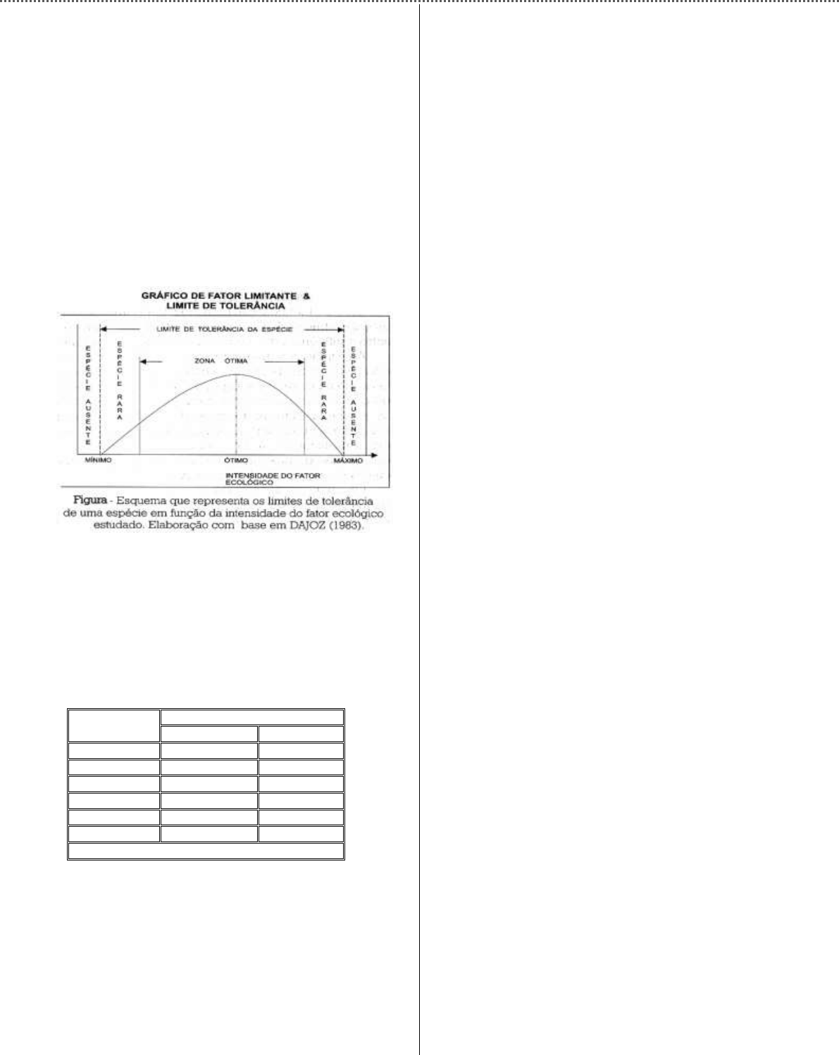ECOLOGIA (ECOBIOSE). - Como os seres vivos se relacionam com o meio? Fatores ecológicos: São todos os elementos do meio capaz de agir diretamente sobre os seres vivos, pelo menos uma fase de seu ciclo vital. Valência ecológica: É a capacidade que uma espécie tem de povoar ambientes (dispersão) diferentes, caracterizados por grandes variações dos fatores ecológicos. - Lei do fator Limitante: Cada fator ecológico atua de acordo a “Lei do mínimo”, ou seja, apresenta um mínimo e um Máximo que impedem o desenvolvimento do ser, o qual atinge sua melhor condição quando o fator se encontra no ótimo. O fator limitante determina as possibilidades da espécie colonizar novos ambientes. - Classificação das Espécies: (de acordo com a valência ecológica) Euriécia: espécie de grande valência ecológica, podendo povoar ambientes variados. Estenoécia: espécie de pequena variação ecológica, suportando pequenas variações de fatores ecológicos e restrita a determinados ambientes. - Principais Fatores ecológicos e valência ecológica. Fator variações pequenas grandes Luz estenofóticos Eurifóticos Temperatura estenotérmico Euritérmicos Pressão Estenobárico Euribáricos Salinidade Estenoalino Eurialinos Umidade Estenoidricos Eurídricos pH Estenoiônicos euriônicos Esteno = estreito / Euri = largo - Estudando os Fatores Ecológicos 1. LUZ: forma de energia de grande importância na fotossíntese - Fotoperiodismo = é o fenômeno que interfere nos processos fisiológicos dos seres vívos (ex. germinação de sementes). - Classificação dos vegetais de acordo com a quantidade de luz: A) HeIiófitas = necessitam de muita luz. B) Umbrófitas = necessitam de pouca luz. - Considerações: Animais lucifilos ou fotófilos são aqueles atraídos pela luz Ex. insetos. Animais lucífobos ou fotófobos são aqueles que apresentam aversão à luz. Ex. lacraia. 2. Temperatura: Grandeza que mede o grau de agitação das moléculas. - Classificação dos animais quanto à temperatura: Homeotérmicos: animais que mantêm a temperatura interna constante, independente do ambiente. Ex: aves e mamíferos. Heterotérmicos: animais cuja temperatura do corpo varia de acordo com a do ambiente. Ex: invertebrados, peixes, anfíbios e répteis. - Considerações: Quescência: condições desfavoráveis de um meio, que se manifesta sob duas formas: a) Hibernação: diminuição da atividade devido ao frio. Ex.: ursos, morcegos e marmotas. b) Estivação: diminuição da atividade devido ao calor. Ex.: quelônios. Regra de Allen: “espécies que habitam climas frios possuem suas extremidades (focinho, orelhas e caudas), menores do que as apresentadas pelas espécies equivalentes viventes em climas quentes. 3. Umidade: É a quantidade de água no ar e no solo. - Classificação dos seres vivos quanto à umidade: Hidrófilos: são organismos aquáticos vivendo permanentemente na água. Ex: peixes e vitória-régia. Higrófilas: são organismos adaptados em ambientes de alta umidade. Ex: lesmas, minhocas, caracol, anfíbios adultos, musgos e samambaias. Mesófilos: são organismos que necessitam de moderada quantidade de água ou umidade atmosférica, estando em condições de suportar as alternâncias entre estações secas e úmidas. Ex: a maioria (cachorro, manguira). Xerófilos: são organismos que habitam ambientes secos. Ex: cactos, mamíferos do deserto, lagartos. 4. Salinidade: É o teor de sal na água ou no solo. - Classificação dos animais quanto à migração em relação ao teor de sal: Anadromos: são animais que migram da água salgada para a água doce. Ex: salmão e tainha. Catádromos: sã animais que migram da água doce para a água salgada. Ex: enguia. EXERCÍCIOS 1. Cactos e Musgos são vegetais normalmente encontrados em ambientes bastante diferentes quanto às condições de umidade. Cactos e Musgos são respectivamente: a) Tropófitas e hidrófitas d) Hidrófitas e mesófitas b) Mesófitas e xerófitas e) Xerófitas e tropófitas c) Xerófitas e higrófitas GAB: C 2. É comum observarmos, durante a noite, pequenos animais que ficam voando em torno de uma lâmpada acesa. Estes seres, atraídos pela luz, classificam-se como: a) Lucífobos d) Fotófobos b) Esciófilos e) Fotófilos c) Afóticos GAB: E 3. Os conhecidos peixes salmão e truta podem ser encontrados tanto em água de rios como em águas de oceanos. Por esta peculiaridade estes peixes são classificados como a) Eurialinos d) Estenobiontes b) Estenofóticos e) Euritérmicos c) Euribáricos GAB: A 4. Em determinada região da Biosfera quando termina um "Campo" inicia uma "Floresta". Esta região de fronteira entre duas comunidades, onde se observa uma linha de tensão, já que as diferentes comunidades se interpenetram, é conhecida com o nome de a) Ecótono d) Ecésis b) Biomassa e) Comunidade clímax c) Nicho Ecológico GAB: A 6. De acordo com as necessidades de água, os organismos são classificados em diversos grupos ecológicos: a) xerófilos: quando vivem com moderada necessidade de água ou de umidade atmosférica. b) higrófilos: quando vivem em ambiente pobre em água, tanto ao ar quanto no solo. c) hidrófilos: quando só podem viver em ambientes de grande umidade. d) anfíbios adultos, briófitas, pteridófitas, são exemplos de hidrófilos. e) insetos e liquens são exemplos de mesófilos GAB: E 7. Se um mesmo animal marinho, um ser Nectônico, for encontrado ora em grandes profundidades, ora próximo da superfície, poderemos classificá-lo como... a) Euribárico d) Estenofótico b) Halófita e) Estenoalino c) Estenotérmico GAB: A 8. Nas águas, da superfície em direção as profundezas, temos as seguintes regiões de acordo com a iluminação: a) eufótica, afótica e disfótica b) eufótica, disfótica e afótica c) disfótica, eufótica e afótica d) afótica, eufótica e disfótica e)afótica, disfótica e eufótica GAB: B 9. As relações entre seres vivos da mesma espécie e entre seres d