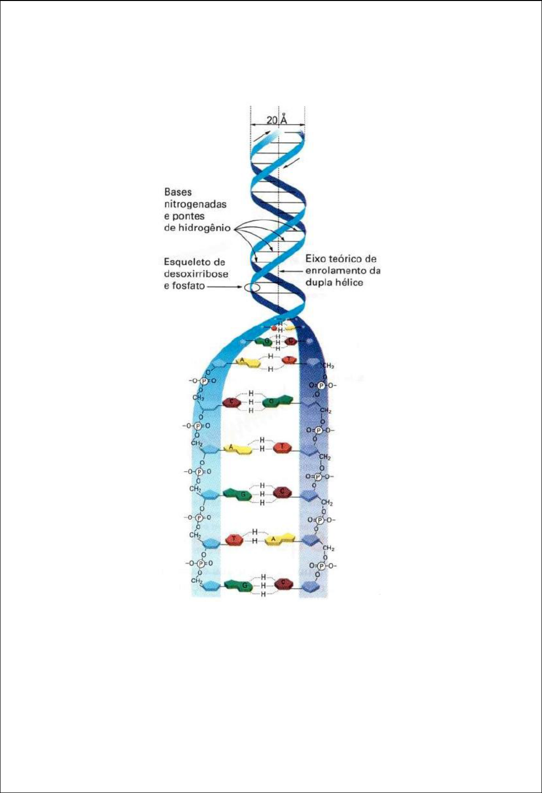 BIOLOGIA MOLECULAR – ÁCIDOS NUCLEICOS 01 - (UEG GO) Em 1953, a natureza química do material genético foi descrita por dois pesquisadores, Watson e Crick. Eles propuseram que o DNA é formado pela união de nucleotídeos em duas fitas complementares enroladas sob um eixo e, assim, formando uma hélice. O esquema a seguir ilustra a fita dupla de DNA, com a exposição das ligações de hidrogênio entre os nucleotídeos das fitas complementares: LOPES, S; ROSSO, S. Bio: volume 2. São Paulo: Saraiva, 2010. p. 233. Sobre as propriedades químicas desse material genético, verifica-se que a) a fita dupla de DNA é duplicada de forma semiconsertiva, sendo as fitas originais imediatamente renaturadas após a duplicação. b) as bases nitrogenadas (A, T, C e G) são moléculas apolares e, por isso, se localizam abrigadas no interior da fita dupla de DNA. c) o DNA, por ser uma fita dupla, apresenta estrutura bidimensional sem a possibilidade de assumir uma configuração tridimensional. d) proporcionalmente, quanto maior a quantidade de purinas na fita dupla de DNA, menor a quantidade de pirimidinas e vice-versa. e) o ácido fosfórico dos nucleotídeos se liga a duas moléculas de carboidrato, conferindo carga positiva à fita dupla de DNA. Gab: B 02 - (FCM MG) Uma molécula de DNA apresenta 17% das bases de citosina. Assinale a alternativa CORRETA, considerando que o DNA não sofreu mutação. a) 34% das bases serão da soma de adenina e timina. b) 34% das bases serão guaninas. c) 17% das bases serão adeninas. d) 33% das bases serão timinas. Gab: D 03 - (FUVEST SP) No DNA de um organismo, 18% das bases nitrogenadas são constituídas por citosina. Que outras bases nitrogenadas devem existir neste DNA e em que proporções? Justifique sua resposta. Gab: As outras bases nitrogenadas que existem neste DNA e suas respectivas proporções são: guanina (18%), adenina (32%) e timina (32%). Justificativas: sabemos que no DNA a porcentagem de citosina é igual à quantidade de porcentagens de adenina e timina, por sua vez, são as mesmas. Assim, a quantidade de guanina é de 18%, e a soma da citosina e guanina é de 36%. Os 64% restantes de bases nitrogenadas são igualmente divididos entre timina e adenina (32% para cada uma). 04 - (UNIOESTE PR) A dupla hélice como modelo de estrutura tri-dimensional do DNA foi proposta por Watson e Crick em 1953. Relativo a esta estrutura, é correto afirmar 01. que os dois filamentos de DNA estão unidos um ao outro por ligações fosfodiéster. 02. que a quantidade de bases púricas é igual à quantidade de bases pirimídicas. 04. que a seqüência de nucleotídeos de um filamento é sempre idêntica à seqüência de nucleotídeos do filamento complementar. 08. que, em uma dupla fita de DNA com 200 pares de nucleotídeos, encontram-se 400 desoxirriboses, 400 grupos fosfatos, 200 bases púricas e 200 bases pirimídicas. 16. que bases púricas e bases pirimídicas possuem 1 e 2 anéis, respectivamente. 32. que citosina e timina são bases pirimídicas; guanina e adenina são bases púricas. 64. que o DNA possui carga positiva. Gab: 42 05 - (FUVEST SP) Bactérias foram cultivadas em um meio nutritivo contendo timina radioativa, por centenas de gerações. Dessa cultura, foram isoladas 100 bactérias e transferidas para um meio sem substâncias radioativas. Essas bactérias sofreram três divisões no novo meio, produzindo 800 bactérias. A análise dos ácidos nucléicos mostrou que dessas 800 bactérias: a) 100 apresentavam o DNA marcado, mas não o RNA. b) 200 apresentavam o DNA marcado, mas não o RNA. c) 400 apresentavam o DNA marcado, mas não o RNA. d) 200 apresentavam o DNA e o RNA marcados. e) todas apresentavam o DNA e o RNA marcados. Gab: B 06 - (FUVEST SP) Existe um número muito grande de substâncias com funções antibióticas. Essas substâncias diferem quanto à maneira pela qual interferem no metabolismo celular. Assim, a tetraciclina liga-se aos ribossomos e impede a ligação do RNA transportador; a mitomicina inibe a ação da polimerase do DNA e a estreptomicina causa erros na leitura dos códons do RNS mensageiro. Essas informações permitem afirmar que: I. a tetraciclina impede a transcrição e leva a célula bacteriana à morte por falta de RNA mensageiro. II. a mitomicina, por inibir a duplicação do DNA, impede a multiplicação da célula bacteriana. III. a estreptomicina interfere na tradução e leva a célula bacteriana a produzir proteínas defeituosas. Das afirmativas acima: a) apenas I é correta. b) apenas I e II são corretas. c) apenas II e III são corretas. d) apenas I e III são corretas. e) I, II e III são corretas. Gab: C 07 - (UEPA) Atualmente sabemos que os ácidos nucléicos estão diretamente ligados a importantes funções celulares, como a síntese protéica e a hereditariedade, vistos que entram na composição de genes e, conseqüentemente, na de cromossomas. Em relação ao exposto acima, às figuras abaixo e à tabela do código genético, responda: arroz metionina triptofano feijão leucina fenilanina treonina valina lisina isoleucina Célula em anáfase Não-disjunção cromossômica a) Considerando esses dois exemplos de aminoácidos existentes no arroz, quais os codons e os anti-codons a eles relacionados? b) Considerando esta seqüência de DNA: C A T A A C T G C mencione, em ordem, quais dos aminoácidos contidos no feijão estão a ela (seqüência. relacionados. c) Quais são os chamados codons SEM SENTIDO e qual o seu significado? d) Como está dividida a INTERFASE e em qual de seus períodos ocorre a duplicação do DNA? e) Durante a Mitose, a não-disjunção (figura acima. propicia o aparecimento de aberrações nas células filhas. Diga o nome das aberrações verificadas nas células “A”e “B”. Gab: a) Metionina cóndon: AUG; anti-códon: UAE Triptofano cóndon: ACG; anti-códon: ACC b) Valina, leucina, treonina c) A seqüência correta dos códons num RNAm é muito importante, poi