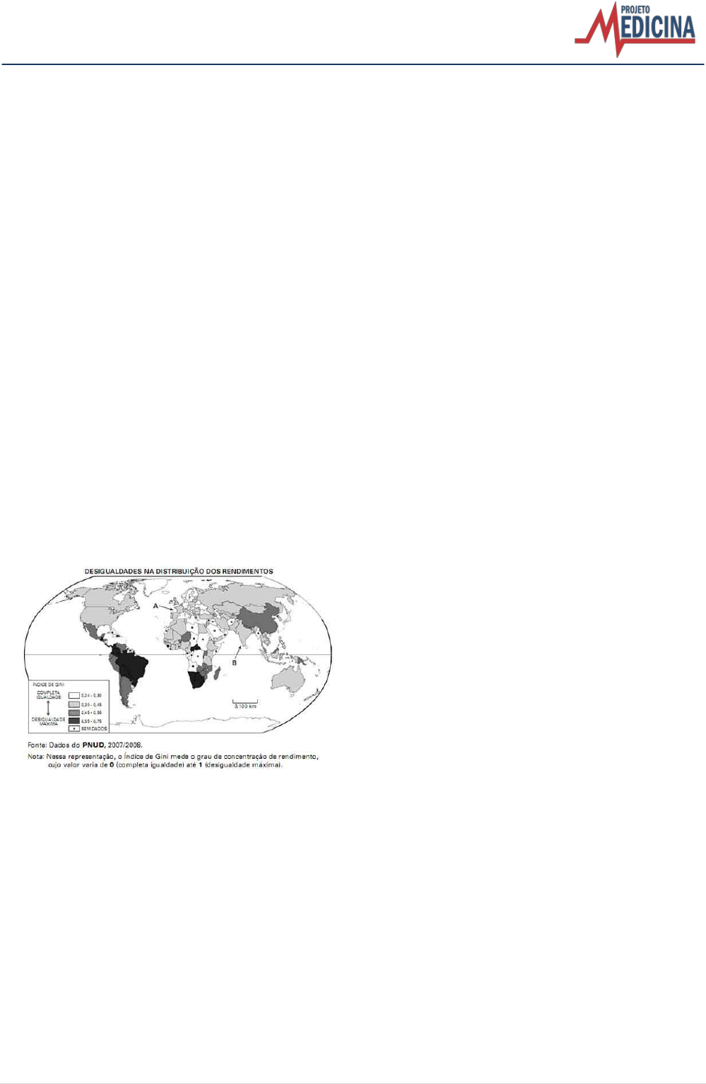 1 | Projeto Medicina – www.projetomedicina.com.br Exercícios com Gabarito de Geografia Ásia - Índia 1) (FGV-2003) “O choque entre civilizações está substituindo a Guerra Fria como fenômeno central da política global.” (Samuel Huntington, 1994) A alternativa mais adequada ao texto corresponde às tensões entre: A) judeus da Federação Russa e muçulmanos da Chechênia, pelo domínio da região autônoma judaica, no Cáucaso. B) bósnios e croatas muçulmanos, que não aceitaram se submeter aos eslovenos após a desagregação da Iugoslávia. C) eslovenos e tchecos, que travaram lutas sangrentas pela dissolução da Tchecoslováquia, após a queda da URSS. D) hutus e somalis, grupos étnicos religiosos que se enfrentam em guerra civil na Somália, causando milhares de mortos e refugiados. E) maioria hindu e minoria muçulmana na Índia, país que também está em conflito com o Paquistão, pela posse de Caxemira. 2) (FUVEST-2010) Com base no mapa e em seus conhecimentos, explique por que a) França (A) e Índia (B) ocupam a mesma classe estatística na representação acima sobre as desigualdades na distribuição dos rendimentos. b) o Sistema Tributário Nacional contribui para a expressiva desigualdade na distribuição dos rendimentos, no Brasil. 3) (UEL-2006) Com base nos conhecimentos sobre a China e a Índia, os dois países mais populosos do mundo, considere as afirmativas a seguir. I. Os dois países enfrentam conflitos territoriais, com potencial para desestabilizar as relações internacionais na região, e, no caso indiano, o problema tem fundamento religioso. II. Quanto ao controle do crescimento populacional, China e Índia desenvolvem programas de controle da natalidade semelhantes, limitando dois filhos por casal. III. Na última década, China e Índia apresentaram taxas de crescimento de seus respectivos Produtos Internos Brutos (PIB) acima da média mundial. IV. Dentre os dois países, apenas a Índia tem tido sucesso em atrair investimentos diretos de capital, pois a China enfrenta problemas nesse setor, devido às características particulares de seu regime político. Estão corretas apenas as afirmativas: a) I e II. b) I e III. c) II e IV. d) I, III e IV. e) II, III e IV. 4) (Mack-2004) Com relação à disputa pela Caxemira, entre Índia e Paquistão, que segue sem solução, considere as afirmações abaixo. I. A origem desse conflito deve-se à implantação de fronteiras inteiramente artificiais, desenhadas pelos britânicos em sua fase imperialista do século XIX. II. Facções fundamentalistas islâmicas, que são maioria no território indiano, desafiam os dirigentes paquistaneses, alinhados com os E.U.A. e as potências européias. III. Bangladesh, ex-Paquistão Oriental, apóia integralmente o Paquistão, já que a Índia busca também anexar essa região ao seu território, em virtude da unidade religiosa de ambos. IV. O mundo teme a ofensiva da Índia na conquista da área em disputa, uma vez que o poderio bélico nuclear hindu é único na região e poderia destroçar as forças paquistanesas. Então: a) apenas I e II estão corretas. b) apenas II e III estão corretas. c) apenas II está correta. d) apenas I está correta. e) apenas II e IV estão corretas. 5) (Cesgranrio-1998) Entre a Índia e o Paquistão existem diferenças marcantes, que alimentam conflitos territoriais há décadas como, por exemplo, a disputa pela região da Cachemira. Uma diferença básica entre aqueles dois países, geradora de forte tensão social, é o(a): A) avanço do programa nuclear paquistanês bem à frente do indiano. B) processo de colonização: europeu, na Índia e asiático, no Paquistão. C) processo de urbanização mais organizado no Paquistão do que na Índia. 2 | Projeto Medicina – www.projetomedicina.com.br D) maioria da população muçulmana, no Paquistão, e hindu, na Índia. E) condição da Índia como país central, e do Paquistão como periférico. 6) (UFSCar-2005) Entre os diversos confrontos civis e militares existentes no mundo atual, o conflito pela posse sobre o território da Caxemira merece destaque, por envolver países importantes da Ásia. Sobre esse território, apresentam-se as quatro afirmações seguintes. I. A Caxemira é uma região dividida e com o território sob o controle de três países: Paquistão, Índia e China. II. Ao contrário do restante da Índia, cuja maioria é hinduísta, a Caxemira indiana tem maioria islâmica, tal qual o Paquistão. III. A ocupação da Caxemira do leste pela China uniu os exércitos do Paquistão e da Índia na luta pela retomada do território ocupado. IV. O conflito envolve países detentores de explosivos atômicos em seus arsenais. É correto o que se afirma em A) I e III, apenas. B) II e IV, apenas. C) I, II e IV, apenas. D) II, III e IV, apenas. E) I, II, III e IV. 7) (Vunesp-1999) No primeiro semestre de 1998, os países assinalados no mapa com os números 1 e 2 surpreenderam o mundo com testes nucleares, reacendendo o debate sobre a questão nuclear. Assinale a alternativa que apresenta, na ordem crescente dos números, os nomes destes dois países: a) Tailândia e Índia. b) Índia e Irã. c) Paquistão e Índia. d) Nepal e Paquistão. e) Irã e Paquistão. 8) (VUNESP-2006) País localizado na Ásia das Monções, mais especificamente no Sul Asiático, caracteriza-se por ser o maior produtor agrícola da área, mas, ainda assim, tem que importar alimentos devido a sua numerosa população. Atualmente observa-se nesse país um elevado crescimento industrial, investimentos na educação e em tecnologias avançadas; é considerado uma das futuras potências mundiais, embora apresente desigualdades sócio-econômicas internas. O país citado no texto e destacado no mapa é: A) Nepal. B) China. C) Índia. D) Bangladesh. E) Indonésia. 3 | Projeto Medicina – www.projetomedicina.com.br GABARITO 1) Alternativa: E 2) a) França e Índia apresentam a mesma classificação estatísti