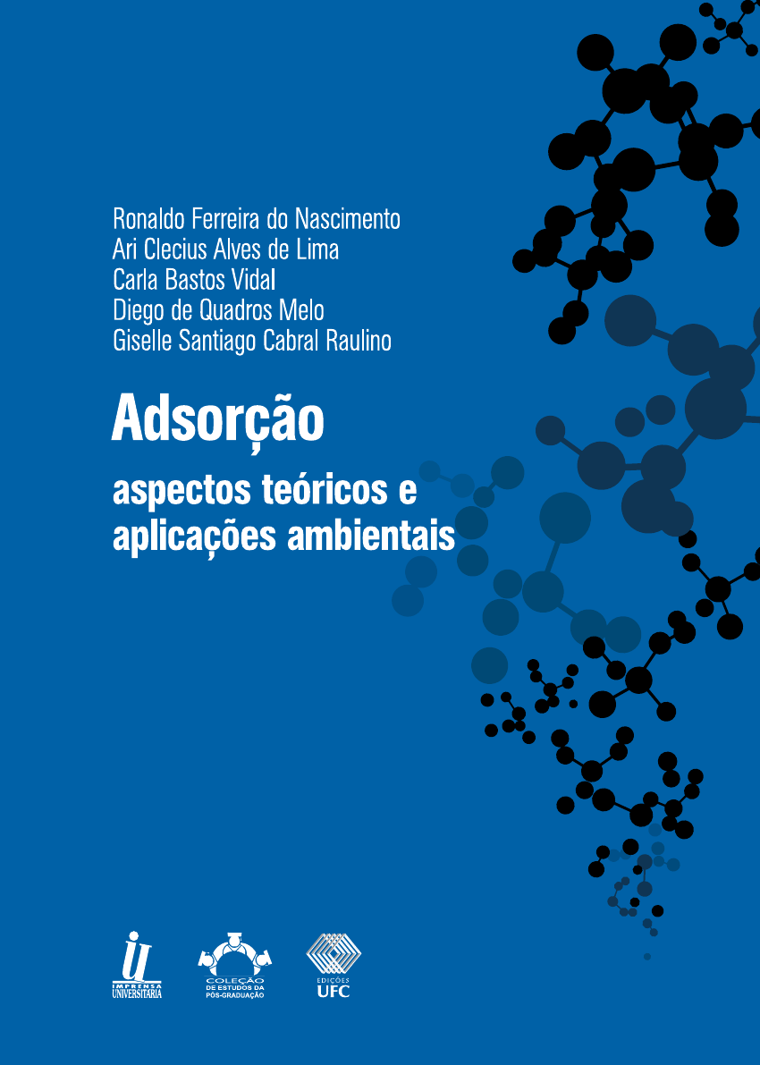 ADSORÇÃO: ASpectOS teóRicOS e AplicAÇõeS AmbientAiS Presidente da República Dilma Vana Rousseff Ministro da Educação Henrique Paim Universidade Federal do Ceará - UFC Reitor Prof. Jesualdo Pereira Farias Vice-Reitor Prof. Henry de Holanda Campos Pró-Reitor de Pesquisa e Pós-Graduação Prof. Gil de Aquino Farias Pró-Reitora de Administração Profª. Denise Maria Moreira Chagas Corrêa Imprensa Universitária Diretor: Joaquim Melo de Albuquerque Editora UFC Diretor e Editor Prof. Antonio Cláudio Lima Guimarães Conselho Editorial Presidente Prof. Antonio Cláudio Lima Guimarães Conselheiros Profª. Adelaide Maria Gonçalves Pereira Profª. Angela Maria R. Mota Gutiérrez Prof. Gil de Aquino Farias Prof. Ítalo Gurgel Prof. José Edmar da Silva Ribeiro ADSORÇÃO: ASpectOS teóRicOS e AplicAÇõeS AmbientAiS Ronaldo Ferreira do Nascimento Ari Clecius Alves de Lima Carla Bastos Vidal Diego de Quadros Melo Giselle Santiago Cabral Raulino Fortaleza 2014 IMPRENSA UNIVERSITÁRIA Dados Internacionais de Catalogação na Publicação Bibliotecária Luciane Silva das Selvas CRB 3/1022 A244 Adsorção: aspectos teóricos e aplicações ambientais / Ronaldo Ferreira do Nascimento ... [et al.]. - Fortaleza: Imprensa Universitária, 2014. 256 p. : il. ; 21 cm. (Estudos da Pós - Graduação) ISBN: 978-85-7485-186-0 1. Adsorção. 2. Gases - Absorção e adsorção. 3. Engenharia Química. I. Nascimento, Ronaldo Ferreira do. II. Lima, Ari Clecius Alves de Lima. III. Vidal, Carla Bastos. IV. Melo, Diego de Quadros Melo. V. Raulino, Giselle Santiago Cabral. VI. Título. CDD 660.284 Adsorção: aspectos teóricos e aplicações ambientais Copyright © 2014 by Ronaldo Ferreira do Nascimento, Ari Clecius Alves de Lima, Carla Bastos Vidal, Diego de Quadros Melo, Giselle Santiago Cabral Raulino. Todos os direitos reservados. impReSSO nO bRASil / pRinteD in bRAzil Imprensa Universitária da Universidade Federal do Ceará (UFC) Av. da Universidade, 2932, fundos – Benfica – Fortaleza-Ceará Coordenação Editorial Ivanaldo Maciel de Lima Revisão de Texto Adriano Santiago Normalização Bibliográfica Luciane Silva das Selvas Programação Visual Sandro Vasconcellos Thiago Nogueira Diagramação Sandro Vasconcellos Capa Heron Cruz AGRADECIMENTOS Este projeto não seria possível sem a colaboração de vários parceiros ao longo desses treze anos de trabalho. Foram muitas par- cerias e contribuições de professores, alunos e profissionais da área que agregaram conhecimento ao grupo do Laboratório de Análise de Traços, a Família LAT. Agradecimentos especiais aos professores Elisane Longhnotti, André Bezerra dos Santos, Ronaldo Stefanutti, Danilo Caldas de Queiroz, Rivelino Martins Cavalcante, Alcinéia, Helena Becker, Francisco Belmino Romero, Odair Pastor Ferreira, Antonio Gomes de Souza Filho, Maria das Graças Gomes e Cícero Wellington Brito Bezerra. Não podemos deixar de citar os alunos pioneiros nos trabalhos de adsorção no nosso grupo de pesquisa: Rivelino, Wagner, André Gadelha, Marcelo (in memoriam) e Cláudio. Agradecemos também aos nossos colegas de grupo que, di- reta ou indiretamente, contribuíram para que este livro saísse: Allen, André Henrique, Cícero, Clêrton, Fátima Itana, Fernando Pedro, Jefferson, Jhonyson, Juliene, Aparecida, Pablo, Nonato, Renata, Rouse, Sarah, Thiago, Vicente, Vitor, Edmilson, Kátia, Thalles, Leila e todos aqueles que um dia já foram da Família LAT, o nosso muito obrigado! A turma dos laboratórios parceiros: LANÁGUA, LABOSAN, LRX. Por fim, queremos agradecer aos nossos familiares pela pa- ciência, amor, dedicação e cuidados: Tecia, Maria Tecia, Antônio Lucas, Camila, Werther, Edisangela, Daniel e Yan. PREFÁCIO O livro ADSORÇÃO: aspectos teóricos e aplicações am- bientais pretende apresentar, de modo didático e compreensível, as- pectos importantes no estudo de processos de separação por adsorção, desde os fundamentos do equilíbrio e da cinética nas partículas do adsorvente, passando pelos parâmetros importantes na dinâmica da adsorção em leito fixo. Dados experimentais obtidos em projetos do grupo de pesquisa do Laboratório de Análises de Traços (LAT), vinculado ao Programa de Pós-Graduação em Engenharia Civil – Recursos Hídricos e Saneamento Ambiental da Universidade Federal do Ceará, são utilizados para ilustração e exemplificação dos itens abordados quando pertinente. Estes projetos de pesquisas vêm sendo desenvolvidos ao longo dos últimos quatorze anos (2000-2014), con- tando com a colaboração de inúmeros colegas pesquisadores, do- centes, alunos de pós-graduação e alunos de iniciação científica. Após uma breve introdução (capítulo 1), feita de modo a fa- miliarizar o leitor com alguns aspectos importantes da adsorção, os capítulos 2 e 3 abordarão os pontos fundamentais do processo de adsorção, quais sejam os fenômenos relacionados com o equilíbrio e a cinética de adsorção em nível de partícula de adsorvente. Nestes capítulos, pretende-se abordar os diversos aspectos do equilíbrio mono e multi-componente. O capítulo 4 aborda os aspectos termo- dinâmicos no processo adsortivo. O capítulo 5 aborda a resistência à transferência de massa a partículas de adsorventes em leito fixo, se- guindo-se de apresentação, no capítulo 6, dos métodos mais comu- mente utilizados em investigações experimentais, relacionando-os com parâmetros fundamentais e com análises estatísticas aplicadas aos cálculos dos parâmetros investigados no processo adsortivo (ca- pítulo 7). Finalmente, o capítulo 8 aborda as principais técnicas de caracterização dos materiais adsorventes. Espera-se que o leitor ob- tenha um conhecimento introdutório sobre os diversos aspectos da adsorção como fenômeno de separação. Uma vez que investigações de teorias e aplicações ambien- tais de processos adsortivos constituem área de estudos ampla e atual, consideramos que o conteúdo 