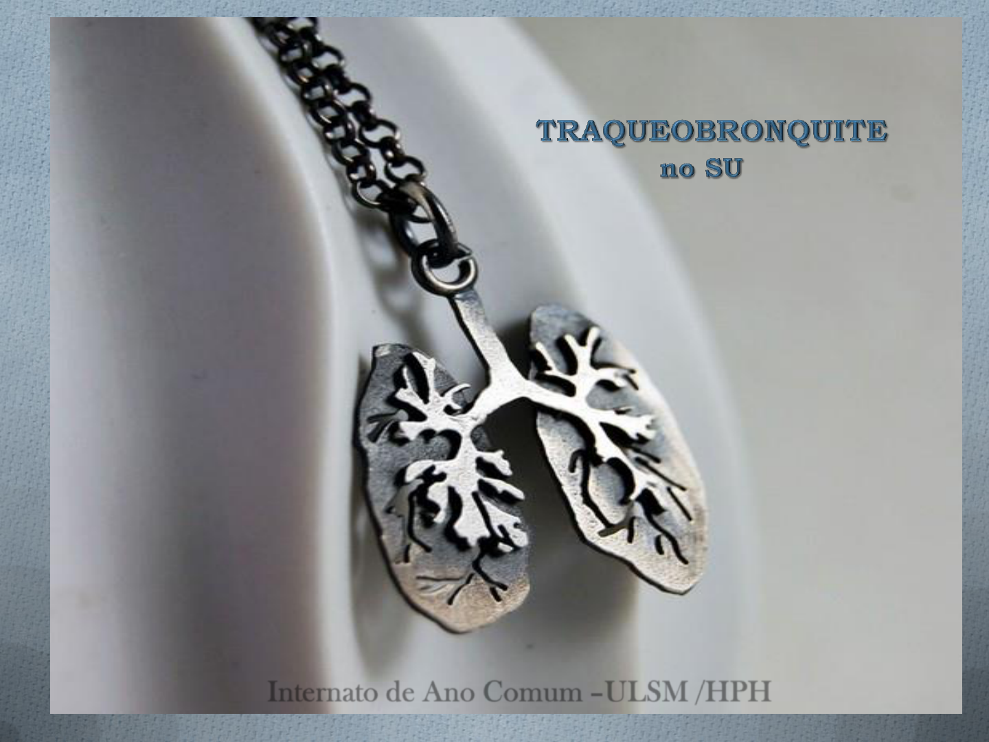 Internato de Ano Comum –ULSM /HPH 1 Índice . Traqueobronquite: definição . Sinais e Sintomas . Traqueobronquite: o diagnóstico diferencial . Codificação . Relevância do Tema . Etiologia . Algoritmo de Abordagem . Bibliografia Traqueobronquite 1 Traqueobronquite Processo inflamatório autolimitado (1 a 3 semanas) Afecta principalmente a traqueia e os grandes brônquios (até à 3º ordem) Indivíduos sem doença pulmonar crónica Sem evidência clínica / imagiológica de pneumonia 2 Traqueobronquite Sinais e Sintomas Tosse de início recente Aparecimento ou aumento do padrão habitual de expectoração Roncos, sibilos Febre Sintomas constitucionais : Mialgias, odinofagia, cefaleias Peso no peito, dor torácica ao tossir 3 Traqueobronquite A B C A – Exacerbação aguda de DPOC B – Exacerbação de Bronquite crónica C - Exacerbação Aguda de Bronquiectasias 4 D D - Pneumonia Codificação 49121+ 49122 Bronquite Crónica Obstructiva com Exacerbação Aguda + Bronquite Crónica Obstructiva com Bronquite Aguda 4660 + 490 Bronquite Aguda + Bronquite, Não especificada como Aguda ou Crónica 4911 Bronquite Crónica Mucopurulenta Traqueobronquite 5 Traqueobronquite Relevância do Tema De Janeiro de 2009 a Maio de 2013 7 16658; 80,84% 3948; 19,16% Restantes doentes da Medicina Interna Total de doentes com patologia em estudo Total de doentes da Medicina Interna : 20606 Traqueobronquite Relevância do Tema De Janeiro de 2009 a Maio de 2013 7 23; 0,58% 1781; 45,11% 2144; 54,31% 4911 4660 + 490 49121 + 49122 Traqueobronquite Etiologia Causas Exteriores • Poluição do Ar • Tabaco • Poeiras e fumos Industriais Vírus • Influenza A e B • Parainfluenza • VSR • Coronavírus • Adenovírus • Rhinovírus Bactérias • Streptococcus pneumoniae • Hemophilus Influenza • Moraxella Catarrhalis • Bordetella pertussis • Mycoplasma Pneumoniae 8 Avaliar a Probabilidade Clínica de Pneumonia Na ausência de Pneumonia, ponderar os seguintes Dx No Idoso, ponderar Pneumonia se, - Alteração do estado mental - Alteração do equilíbrio - Perda de apetite - Incontinência Urinária de novo Avaliar sinais de Gravidade Baixa (< 5 %) - Sinais Vitais N - E.O. Tórax N Intermédia ( 5 % - 30 %) - 1 ou + S.V. aN ou - E.O. Tórax aN Alta (> 30 %) -1 ou + S.V. aN e - E.O. Tórax aN Bronquite Aguda/ Traqueobronquite Ver Slide 12 e 13 Exacerbação de DPOC Ver Slide 14 Exacerbação de Bronquite Crónica Ver Slide 12 e 13 Bronquiectasia Ver Slide 15 RX Tórax, GSA , FEV1 Algoritmo de abordagem a Traqueobronquite 9 Avaliação Centrada na Exclusão de pneumonia Num adulto Saudável não idoso, a Pneumonia é improvável se os seguintes achados estiverem ausentes* *1, 2 e 3 Sinal Achado Anómalo Febre > = 38 ºC Taquipneia > = 24 cpm Taquicardia > = 100 bpm Evidência de Consolidação no exame objectivo do Tórax Crepitações, egofonia, frémito Traqueobronquite 10 Factores prognósticos Comorbilidades prévias Idade > 65 anos FEV 1 < 50% Diabetes Mellitus Tipo 1 ou Tipo 2 FEV 1 < 50%, uso de Oxigénio no Domicílio, Hipercapnia Uso Crónico de Glicocorticóides Internamento recente Uso recente de ATB Hx de Exacerbações recorrentes Doença Cardíaca, pulmonar, hepática, renal, neuromuscular e imunossupressão Traqueobronquite 11 Categoria Definição da Categoria Grupo 0 (Traqueobronquite Aguda) Tosse e expectoração sem doença pulmonar prévia ( paciente não preenche os Critérios de Bronquite Crónica) Grupo I (Bronquite Crónica simples) <4 Exacerbações /ano (preenche os critérios de Bronquite Crónica) FEV1> 50 % do previsto Grupo II (Bronquite Crónica Complicada) FEV1 <50 % do previsto FEV1 entre 50 e 60 % do previsto e comorbilidade significativa ** Grupo III (Bronquite Crónica Supurativa) Tal como no Grupo II, mas com esputo purulento constante Exacerbações frequentes (> 4/ ano), podem ter bronquiectasias FEV1 <50 % do previsto ( habitualmente < 35 % do previsto) Estratificação da Bronquite* *Canadian Thoracic Society and Canadian Infectious Disease Society ** Insuficiência Cardíaca Congestiva, Doença Coronária e/ou > 4 exacerbações /ano 12 Categoria Recomendação de ATB Grupo 0 (Traqueobronquite Aguda) nenhum, a menos que sintomas persistam mais do que 10 -14 dias Alternativa : macrólido ou tetraciclina Grupo I (Bronquite Crónica simples) Macrólido de 2ª Geração, Cef de 2ª ou de 3ª Geração, amoxicilina e doxiciclina Alternativa: FQ respiratória ou BLBLi** Grupo II (Bronquite Crónica Complicada) FQ respiratória ou BLBLi Alternativa: TT parentérica; baseada ou ajustada na cultura do esputo Grupo III (Bronquite Crónica Supurativa) Ajustar o TT à cultura de esputo TT P. Aeruginosa Estratificação da Bronquite* *Canadian Thoracic Society and Canadian Infectious Disease Society **Beta- lactâmico/ inibidor de betalactamases 13 Ecologia da ULSM Categoria Recomendação de ATB Grupo 0 (Traqueobronquite Aguda) nenhum, a menos que sintomas persistam mais do que 10 -14 dias Alternativa : macrólido ou BLBi ou tetraciclina Grupo I (Bronquite Crónica simples) BLBLi,** Cef de 2ª ou de 3ª Geração, Macrólido de 2ª Geração/ doxiciclina Alternativa: FQ respiratória Grupo II (Bronquite Crónica Complicada) FQ respiratória ou BLBLi Alternativa: TT parentérica; baseada ou ajustada na cultura do esputo Grupo III (Bronquite Crónica Supurativa) Ajustar o TT à cultura de esputo Ponderar FR e TT para P. Aeruginosa Estratificação da Bronquite *Beta- lactâmico/ inibidor de betalactamases 13 Exacerbação de DPOC* Não usar ATB Tratar Δt = 5 dias - BL - Doxiciclina - Cefalosporina (2ª ou 3ª G) - TMP/SMX - Macrólido (Largo espectro ) - Telitromicina Deterioração do estado clínico ou resposta inadequada em 72 horas C / FR Pseudomonas Tratar 5 a 10 dias - BL / iBL - FQ - Reavaliar - Ajustar ATB segundo microbiologia do esputo Simples - s/ FR Major Complicada >= 1 FR Major S / FR Pseudomonas Tratar Δt= 10 dias - ciprofloxacina - Levofloxacina, 750 m
