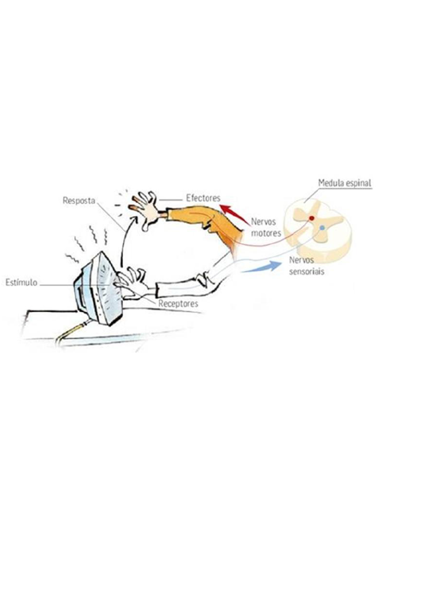 Arco Reflexo Os reflexos estão presentes a todo momento em nosso dia a dia, seja para nos proteger de queimaduras quando encostamos em algo quente ou que gere dor, seja para manter nossa postura e tônus muscular. Para que isto ocorra temos 3 tipos de reflexos: o reflexo de estiramento (ou miotático), o reflexo tendíneo e o reflexo de retirada (ou reflexo de flexão). Os dois primeiros são reflexos que ocorrem em nível muscular, portanto dependem de estruturas nervosas localizadas dentro dos músculos; o último ocorre em nível cutâneo, através de terminações nervosas localizadas por toda a superfície da nossa pele. Estes tipos de reflexos ocorrem em nível medular, portanto para que eles ocorram é necessário que uma informação sensitiva (dor, temperatura ou propriocepção) chegue à coluna posterior da medula espinal, gerando uma resposta motora (movimento) que sai através da coluna anterior da medula espinal em direção aos músculos. Em termos práticos, se você encostar em uma chapa quente, essa informação sensitiva chegará à medula e rapidamente os músculos da região se contraem para retirar a mão da chapa quente e protege-la de queimaduras. Isto é chamado de arco reflexo simples e abaixo veremos os três principais tipos de arcos reflexos. Reflexo de Estiramento (ou Reflexo Miotático) O reflexo de estiramento ocorre em nível muscular e pra que ele ocorra é importante salientarmos uma estrutura enrolada profundamente nas fibras musculares da região central do músculo. Esta estrutura chama-se fuso muscular ou fuso neuromuscular e é muito sensível ao estiramento (alongamento) das fibras musculares. Quando ocorre alongamento da fibra muscular, o fuso envia sinais sensitivos à medula espinal e a resposta é uma contração deste mesmo músculo para evitar a ruptura de suas fibras, gerando uma resposta protetora. Desta mesma forma o fuso muscular também age para a manutenção do tônus muscular e de nossa postura, adaptando o grau de contração das fibras musculares de acordo com as necessidades daquele momento. O teste clássico do martelinho no tendão patelar é para testar os reflexos do fuso muscular do quadríceps e sua velocidade de reação à percussão. Porém temos reflexos em vários outros tendões além deste. Reflexo Tendíneo O reflexo tendíneo ocorre também em nível muscular, só que desta vez depende de uma estrutura localizada na junção músculo-tendínea, chamada Órgão Tendinoso de Golgi (ou OTG). O OTG é sensível às forças de tensão dos músculos, portanto quando estamos segurando um peso muito maior do que nossos músculos suportam, o OTG emite um estímulo sensitivo à medula espinal e como resposta o músculo relaxa e soltamos o peso. Isso é importante para proteger os músculos de ruptura dos tendões e/ou das fibras musculares por cargas excessivas. Reflexo de Retirada (ou Reflexo de Flexão) O reflexo de retirada ocorre em nível cutâneo, diferentemente dos reflexos citados anteriormente. Na pele temos milhões de terminações nervosas sensíveis à dor e ao calor, que conduzirão estes estímulos até a medula espinal. Isto é importante para proteger a nossa pele de lesões térmicas e mecânicas, gerando um reflexo motor de retirada muito rápido. Sendo assim, quando você coloca a mão numa chapa quente ou pisa em um prego, as terminações nervosas sensitivas são ativadas emitindo um estímulo à coluna posterior da medula. Nesta região ocorrerão sinapses com vários neurônios motores para que você retire sua mão da chapa evitando lesões de pele.
