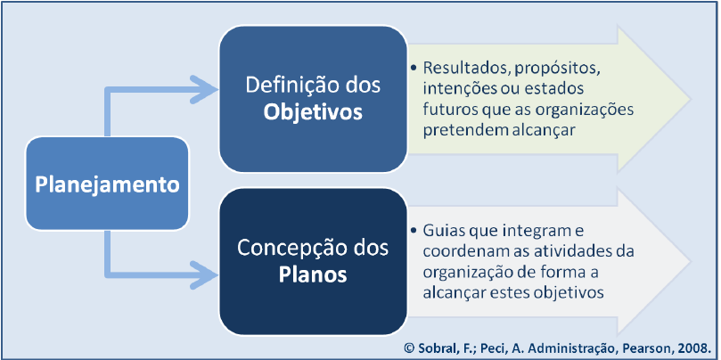 Capítulo 5 Planejamento e estratégia - Resumo do livro de Sobral e Peci (2008) As organizações contemporâneas atuam em ambientes cada vez mais dinâmicos, complexos e competitivos. Nesse contexto, para sobreviver, as organizações necessitam de um rumo, de uma direção. É por meio do planejamento que os administradores definem para onde a organização deve caminhar e como lá chegar. É claro que nem todas têm um planejamento formal; no entanto, o planejamento, seja formal ou informal, é fundamental para que as organizações sejam capazes de responder com eficácia aos desafios ambientais e, assim, manterem uma trajetória rumo ao sucesso. Das quatro funções da administração – planejamento, organização, direção e controle -, a primeira é a mais importante de todas. Sua importância deriva do fato de todas as outras funções da administração se originarem dela. Sem uma definição clara das metas e objetivos da organização e sem uma estratégia para alcançá-los, dificilmente os administradores podem organizar os recursos, dirigir as pessoas e controlar os resultados. 5.1 Fundamentos de planejamento As organizações se definem em torno de objetivos. No entanto, para alcançá-los, suas atividades devem seguir determinada ordem ou padrão, ou seja, devem seguir um plano. Cabe aos administradores decidir qual o rumo a organização deve seguir e formular as estratégias e os planos necessários para alcançar os objetivos. Essas decisões são parte da função de planejamento e são essenciais para que a organização possa crescer de forma sustentada e sobreviver no longo prazo. Mas, o que é planejamento? O planejamento é a função da administração responsável pela definição dos objetivos da organização e pela concepção dos planos que integram e coordenam suas atividades. O planejamento tem a dupla atribuição de definir o que deve ser feito – objetivos – e como deve ser feito – planos. Veja a figura abaixo. Independentemente do nível hierárquico que ocupam, todos os administradores necessitam planejar suas ações. Enquanto os administradores de topo planejam os objetivos e a estratégia da organização, os gerentes de nível tático estabelecem as atividades de sua unidade e os supervisores definem objetivos e programas para seu grupo de trabalho. De qualquer maneira, o planejamento é indispensável em todas as organizações e em todos os níveis organizacionais. Sem planejamento, as organizações andariam à deriva e sem rumo. É importante esclarecer que nem sempre o planejamento é formalizado dentro das organizações. Principalmente em organizações pequenas, é comum existir um tipo de planejamento informal, que é caracterizado pela definição vaga dos objetivos, não se apresenta na forma escrita e pode ser altamente mutável ou variável. Aqui, o foco de análise está no planejamento formal. E qual a importância do planejamento para as organizações? O processo de planejamento faz com que os administradores se afastem da rotina operacional e se concentrem no futuro da organização. Concretamente, podem ser destacadas as seguintes vantagens e benefícios do planejamento: Proporciona um senso de direção: dá e especifica um rumo para a organização, o que permite direcionar os esforços de seus membros para um objetivo comum. Focaliza esforços: promove a integração e a coordenação das atividades. Maximiza a eficiência: permite otimizar esforços e recursos organizacionais. Ajuda a estabelecer prioridades, evitando os desperdícios e as redundâncias. Reduz o impacto do ambiente: obriga os administradores a enfrentarem as mudanças ambientais. Define parâmetros de controle: proporciona critérios de avaliação do desempenho organizacional. Atua como fonte de motivação e comprometimento: facilita a identificação das pessoas com a organização ao reduzir a incerteza e esclarecer o papel que cada pessoa desempenha na organização. Potencializa o autoconhecimento organizacional: cria um clima propício ao autoconhecimento já que a organização busca conhecer, durante o processo de planejamento, o ambiente externo e o ambiente interno. Fornece consistência: fornece um fundamento lógico para a tomada de decisão. Diversas pesquisas têm confirmado que o planejamento formal afeta positivamente o desempenho organizacional, tendo um impacto positivo na rentabilidade das organizações. Elas demonstram também que a qualidade do processo de planejamento e sua adequada implementação são mais importantes que a extensão e abrangência dos planos. E quais são as críticas ao planejamento? Elas existem? As principais críticas ao planejamento formal estão relacionadas com a incapacidade de uma resposta às constantes mudanças ambientais. Um dos principais argumentos utilizados pelos críticos é que o planejamento formal não responde adequadamente aos desafios de um ambiente dinâmico. Outro argumento utilizado é que o planejamento cria rigidez e inibe a flexibilidade organizacional. Além disso, de acordo com os críticos, o planejamento formal inibe a criatividade, a inovação e a ousadia. A melhor resposta às críticas do planejamento formal reside na importância do processo de planejamento. Mais do que o resultado da função do planejamento, o que importa é o grau de integração que ele desencadeia nos membros organizacionais, bem como a aprendizagem organizacional que seu processo possibilita. 5.2 Tipos de planos O planejamento formal engloba a definição dos objetivos e dos planos. Enquanto os objetivos especificam os estágios futuros que a organização busca atingir, os planos estabelecem os meios para alcançá-los. Os planos são a tradução formal do planejamento em documentos que estipulam como os objetivos devem ser alcançados, descrevendo como os recursos devem ser alocados e quais atividades devem ser realizadas. No entanto, dependendo do foco do planejamento, os planos apresentam 