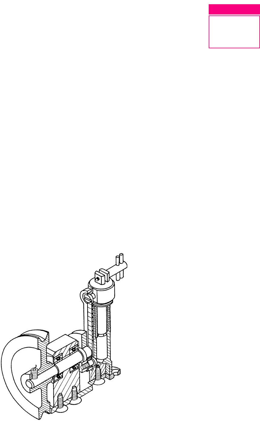 51 A U L A Um operador de mÆquinas recØm-admitido, estava em treinamento para trabalhar com o equipamento serra tico-ticoserra tico-ticoserra tico-ticoserra tico-ticoserra tico-tico. Era muito importante conhecer antes, as características e funcionamento do conjunto para operÆ-lo com segurança. Nesta aula, vocŒ tambØm vai aprender a interpretar e ler o desenho tØcnico do conjunto mecânico para o acionamento da serra tico-tico. Serra tico-tico A serra tico-tico Ø um conjunto mecânico. Uma das suas finalidade Ø serrar peças, deixando-as com contornos curvos. Veja, a seguir, a representaçªo desse conjunto em perspectiva isomØtrica, em corte. Conjuntos mecânicos VI Introduçªo 51 A U L A 51 A U L A Veja, agora, o conjunto serra tico-tico representada em projeçªo ortogrÆfica. 51 A U L AA serra tico-tico tem uma quantidade grande de componentes. Nesta aula, vocŒ irÆ analisar apenas o desenho de conjunto. Para facilitar a interpretaçªo do desenho de conjunto em projeçªo ortogrÆ- fica compare-o com o desenho de conjunto em perspectiva isomØtrica. Observe que na peça 11111, a base, estªo fixadas as peças 55555 e 1818181818: mancal e cilindro. O mancal e o cilindro estªo fixados na peça 11111 por meio das peças 1919191919: parafusos de cabeça escareada. As peças 66666, rolamentos, estªo fixadas nas peças 55555 e 33333: mancal e Ærvore. As peças 77777, discos, estªo fixadas sob pressªo no mancal. Na extremidade esquerda da peça 33333, Ærvore, estÆ fixada a peça 22222: polia. A polia estÆ fixada na Ærvore pela peça 44444: parafuso. Na extremidade direita da Ærvore estÆ fixada a peça 88888: volante Nas extremidades inferior e superior da peça 99999, biela, estªo fixadas as peças 1111111111: buchas para biela. A biela e as buchas para biela estªo ligadas às peças 88888 e 1515151515: volante e pistªo. A peça 1616161616, bucha, estÆ fixada sob pressªo no cilindro. A peça 1515151515, pistªo, estÆ ajustada na peça 1616161616: bucha. A peça 1717171717, proteçªo, estÆ fixada sob pressªo no pistªo. As peças 1313131313 e 1414141414, parafuso de fixaçªo e pinos, tambØm estªo ligadas entre si sob pressªo. O parafuso de fixaçªo, os pinos e a peça 1212121212, placa, servem para fixar uma das extremidades da serra tico-tico no pistªo. Funcionamento da serra tico-tico O movimento, atravØs de uma correia, Ø transmitido à polia, que movimenta a Ærvore e o volante. O volante, por sua vez, movimenta a biela, transformando o movimento rotativo em movimento retilíneo alternativo. Faz o pistªo subir e descer, movimentando a serra para o corte. 51 A U L A Resolva o próximo exercício, para completar a interpretaçªo do desenho de conjunto. Verificando o entendimento Consulte o desenho para execuçªo do conjunto serra tico-tico, (penœltima ilustraçªo) e responda às questıes: a)a)a)a)a) Qual a forma do perfil do aço usado para fazer a peça 55555? .................................................................................................................................. b)b)b)b)b) Qual a bitola do material usado para fazer a peça 77777? .................................................................................................................................. c)c)c)c)c) Quais as dimensıes do material usado para fazer a peça 1616161616? .................................................................................................................................. d)d)d)d)d) Qual a marca e especificaçıes dos rolamentos a serem usados na montagem da serra tico-tico? .................................................................................................................................. Verifique se vocŒ escreveu as respostas corretas: a)a)a)a)a) O perfil do aço usado para fazer a peça 55555 tem a forma quadrada. b)b)b)b)b) A bitola do material usado para fazer a peça 77777 Ø 16. c)c)c)c)c) As dimensıes do material usado para fazer a peça 1616161616 sªo: diâmetro - 21 mm; comprimento - 45 mm. d)d)d)d)d) A marca dos rolamentos Ø SKF e a especificaçªo Ø 6201. Na próxima aula, vocŒ vai interpretar o desenho dos componentes da serra tico-tico. Teste sua aprendizagem. Faça o exercício a seguir e confira suas respostas no gabarito. Exercício 1Exercício 1Exercício 1Exercício 1Exercício 1 Analise o desenho de conjunto na pÆgina seguinte e responda às questıes que vŒm a seguir. a)a)a)a)a) Qual o nome do conjunto mecânico representado? ............................................................................................................................. b)b)b)b)b) Quais os nomes das peças 33333 e 44444? ............................................................................................................................. c)c)c)c)c) Qual o material de fabricaçªo da peça 11111? ............................................................................................................................. d)d)d)d)d) Quais as dimensıes do material de fabricaçªo da peça 22222? ............................................................................................................................. e)e)e)e)e) Quais as vistas representadas no desenho? ............................................................................................................................. f)f)f)f)f) Que tipo de corte foi aplicado neste desenho? ............................................................................................................................. g)g)g)g)g) Quantos furos passantes tem este conjunto? ............................................................................................................................. h)h)h)h)h) Em que peça estÆ apoiada a bucha? ............................................................................................................................. i)i)i)i)i) Quais as peças que sªo montadas no pivô? .....................
