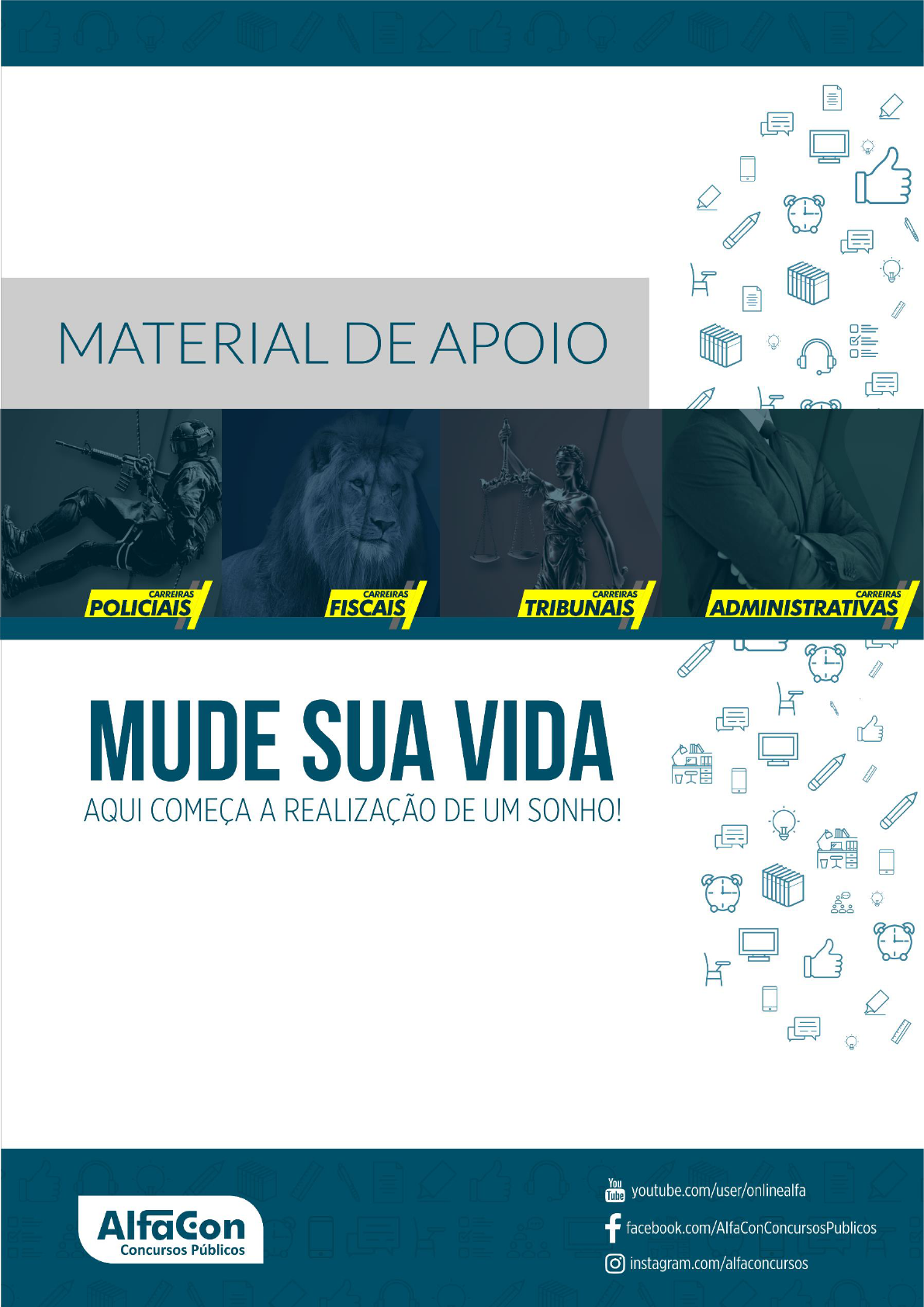2 Sumário Exercícios ............................................................................................. 3 QUESTÕES DE PROVA .......................................................................... 5 Gabarito ............................................................................................... 7 ALÔ, VOCÊ! Este é um material de acompanhamento de Aulas Gratuitas transmitidas pelo AlfaCon em seu Canal Oficial no Somos mais de 1 Mihão de inscritos! Inscreva-se para receber o melhor conteúdo para concursos públicos! Conheça também http://bit.ly/FabricadeValores Central de Vendas (WhatsApp) → 45 9 9856-2827 | 45 9 946-2194 Sede em Cascavel/PR → 45 3037-8890 | WhatsApp 45 9 9136-9764 Sede em São Paulo/SP → 11 3905-2900 | WhatsApp 11 9 6352-0355 3 PRÉ EDITAL PM PR Português | Janaína Arruda Exercícios 1. Identifique as Vozes Verbais usando para Voz Ativa (VA), Passiva Analítica (VPA), Passiva Sintética (VPS) e Reflexiva (VR): 01. Alugaram-se todas as casas da vila. 02. O garoto feriu-se com o canivete. 03. O homem é corrompido pela sociedade. 04. Consertam-se aparelhos eletrônicos. 05. Felipe plantou uma rosa. 06. Os meninos admiravam a locomotiva. 07. João foi ferido por Paulo. 08. A moça admirava-se no espelho. 09. Não se vê viva alma na praça. 10. Os pais educam os filhos. 11. Os dois pretendentes insultaram-se. 12. O cachorro ficou esmagado pelas rodas do carro. 13. Eu machuquei o rapaz. 14. Todos comeram uma fatia do bolo. 15. Nunca se ouviram queixa dele. 16. A casa foi vendida pelo corretor. 17. Abraçaram-se com alegria e emoção. 18. Ele fez todo o trabalho em apenas um dia. 19. Os dois falaram-se rapidamente. 20. Cortaram o cabelo da criança. Central de Vendas (WhatsApp) → 45 9 9856-2827 | 45 9 946-2194 Sede em Cascavel/PR → 45 3037-8890 | WhatsApp 45 9 9136-9764 Sede em São Paulo/SP → 11 3905-2900 | WhatsApp 11 9 6352-0355 4 21. Carla foi correr no parque. 22. O cabelo da criança foi cortado. 23. Praticam-se ações humanitárias. 24. O Detento havia sido libertado pelo juiz. 25. A apresentação agradou ao público. 2. Relacione cada frase com a numeração correspondente à voz do verbo: 1. ativa 2. passiva sintética 3. passiva analítica 4. reflexiva ( ) Carlos saiu à pressa. ( ) Os garçons entrechocavam-se no salão. ( ) Casas eram vendidas a preço de banana. ( ) A terra cobre os erros médicos. ( ) À saída do restaurante, nos vimos. ( ) Formou-se uma gritaria. 3. Passe as frases, abaixo, da voz passiva para a ativa: a. A harmonia foi restabelecida pelo professor. b. Serias aplaudido por todos. 4. Transforme as frases, a seguir, para a voz passiva: a. O segurança os acompanhará. b. Prender-te-iam, se eu divulgasse estas fotos. 5.Guardou-se os pães. Os pães foram guardados Conforme o modelo, acima, faça a conversão das frases seguintes: a. De manhã cedo, limpava-se a moenda. b. Construíram-se muitas casas naquele lugar. Central de Vendas (WhatsApp) → 45 9 9856-2827 | 45 9 946-2194 Sede em Cascavel/PR → 45 3037-8890 | WhatsApp 45 9 9136-9764 Sede em São Paulo/SP → 11 3905-2900 | WhatsApp 11 9 6352-0355 5 QUESTÕES DE PROVA 1- Indique a opção em que ocorre a voz reflexiva: A. Come-se bem neste restaurante. B. Precisa-se de carpinteiros. C. O prisioneiro conseguiu desvencilhar-se das cordas. D. Ouviu-se um grande estrondo lá pras bandas da mata. E. Quem não chora não mama. 2. Mais tarde, soube que o carro tinha sido roubado. Corresponde à voz ativa do verbo acima destacado: A. roubara B. havia sido roubado C. roubaram-se D. tinham roubado E. roubava 3. Convertendo para a voz ativa a oração "Os vereadores foram diplomados por um juiz.", obtém- se a forma verbal: A. eram diplomados B. diplomara C. havia diplomado D. diplomar-se-iam E. haviam sido diplomados. 4. Corresponde à voz passiva do verbo destacado: Os meninos tinham comprado um tambor. A. tinha sido comprado B. haviam comprado C. estavam comprando D. compraram-lhe E. compravam 5. Transitando para a voz passiva a oração "O tropel dos cavalos avisava os cangaceiros.", a forma verbal será: A. ia avisando B. avisavam C. avisava-se D. foram avisados E. eram avisados 6. Transpondo para a voz passiva a oração “O faro dos cães guiava os caçadores”, obtém-se a forma verbal: a) guiava-se b) ia guiando c) guiavam Central de Vendas (WhatsApp) → 45 9 9856-2827 | 45 9 946-2194 Sede em Cascavel/PR → 45 3037-8890 | WhatsApp 45 9 9136-9764 Sede em São Paulo/SP → 11 3905-2900 | WhatsApp 11 9 6352-0355 6 d) eram guiados e) foram guiados 7. Transpondo-se para a voz passiva a frase Hoje a autoria institucional enfrenta séria concorrência dos autores anônimos, obter-se-á a seguinte forma verbal: (A) são enfrentados. (B) tem enfrentado. (C) tem sido enfrentada. (D) têm sido enfrentados. (E) é enfrentada. 8. Transpondo para a voz passiva a construção Darcy Ribeiro “(...) não admitiria a alternativa”, a forma verbal resultante será: (A) teria sido admitida. (B) seria admitida. (C) teria admitido. (D) fora admitida. (E) haveria de admitir. 9. Assinale a alternativa cuja conversão da frase “Nas residências, usa-se o gás natural para o aquecimento ambiental e de água” para a voz passiva analítica está correta. a) Nas residências, o gás natural é usado para o aquecimento ambiental e de água. b) Nas residências, o gás natural se usa para o aquecimento ambiental e de água. c) Nas residências, o gás natural tem sido usado para o aquecimento ambiental e de água. d) Nas residências, o gás natural será usado para o aquecimento ambiental e de água. e) Nas residências, o gás natural era usado para o aquecimento ambiental e de água. 10. As histórias [...] constituem a vida secreta de todas as sociedades...(último parágrafo) Transpondo-se a frase acima para a voz passiva, a forma verbal resultante será: a) é constituída. b) são constituídas. c) constituíam-se. d) era constituída. e) tinham constituído. 