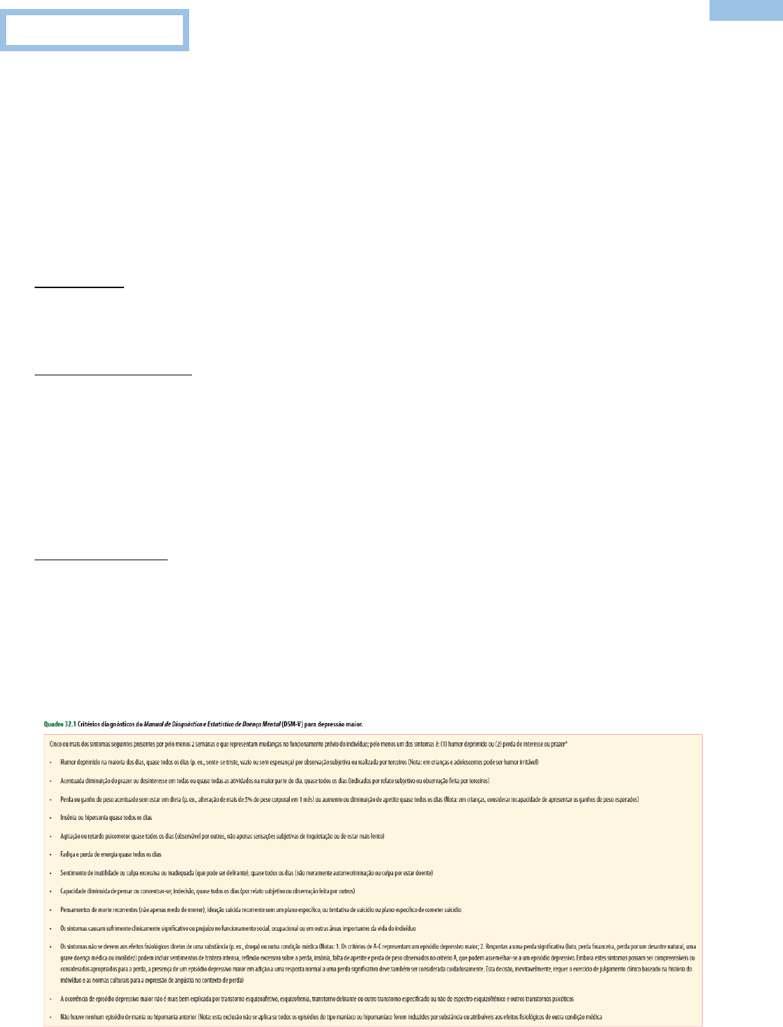 Geriatria 6 A saúde mental é indispensável para o bem-estar geral do indivíduo e da sociedade. No entanto, ainda é menor a atenção dispensada aos transtornos mentais em comparação com a saúde física. O envelhecimento populacional que o mundo vem experimentando aponta, no entanto, para a necessidade de atenção tanto para os portadores de transtornos mentais que envelhecem quanto para os transtornos mentais que são mais prevalentes entre idosos.DEPRESSÃO Segundo os conceitos da Organização Mundial da Saúde de anos de vida vividos com incapacidade (AVI) e de anos de vida ajustados por incapacidade (AVAI), que quantificam o potencial que uma determinada doença tem de retirar dias de gozo de saúde e de perda de dias de vida por morte prematura, respectivamente, os transtornos depressivos unipolares encontram-se entre as dez principais causas, independente do sexo e da situação econômica do país. Epidemiologia Os transtornos depressivos apresentam maior prevalência nos idosos hospitalizados ou institucionalizados em comparação aos idosos da comunidade. As variações entre as prevalências observadas em todo o mundo ocorrem na dependência da definição da população idosa-alvo, dos parâmetros diagnósticos utilizados e da origem dos indivíduos idosos. Etiologia e fisiopatologia As depressões apresentam etiologia multifatorial: fatores genéticos, biológicos, epigenéticos e ambientais em proporções variáveis. A depressão de início tardio que começa após os 60 a 65 anos de idade se relaciona a fatores estressores que podem desencadear e/ou manter o quadro depressivo. Lesões vasculares cerebrais são particularmente citadas como fatores de risco (e pior prognóstico) nessa população. Esse tipo de depressão muitas vezes é considerado como manifestações prodrômicas de quadros demenciais. A depressão também pode ser provocada por medicamentos usados para tratar doenças físicas, bem como pelo uso abusivo de álcool. Em relação aos fatores genéticos, a possibilidade de ocorrência de depressão entre familiares de primeiro grau de deprimidos é três vezes maior do que de não deprimidos. Em gêmeos, a correlação chega a 40%. Critérios diagnósticos Os transtornos da saúde mental são classificados segundo duas codificações distintas, porém semelhantes: o Código Internacional de Doenças, atualmente na sua décima revisão e o Manual de Diagnóstico e Estatístico de Doença Mental (DSM), atualmente na quinta edição. No Brasil, na área de Geriatria, DSM- V é o mais utilizado. Para que seja efetivado um diagnóstico de episódio depressivo ou transtorno depressivo (quando já aconteceram dois ou mais episódios), é necessário que esteja presente um elenco de sintomas que compõem os critérios diagnósticos estabelecidos, de pelo menos uma dessas duas entidades, não havendo qualquer distinção de sintomas por faixa etária para fins de diagnóstico. Como o luto é reconhecido como um importante estressor que pode precipitar um episódio depressivo maior em indivíduos vulneráveis, pelo DSM-V não é mais necessária a espera de 60 dias para estabelecimento do diagnóstico. Apresentação clínica Os sintomas que podem compor um episódio de depressão, muitas vezes, entre idosos, necessitam de uma busca ativa para o correto estabelecimento diagnóstico, pela possibilidade de atribuição errônea da origem desses ao próprio processo de envelhecimento ou às comorbidades presentes. Todos os sintomas presentes na depressão em adultos jovens são encontrados em idosos. De modo geral a depressão em idosos apresenta menos humor depressivo e mais anedonia, mais sintomas somáticos do que “psicológicos”, maior frequência de associação com doença física e/ou cerebral e presença maior de déficit cognitivo e disfunção executiva. Em relação à depressão de início precoce, a depressão geriátrica (de início tardio) apresenta menos correlação familiar, maior prevalência de demência, piora no desempenho dos testes neuropsicológicos e dano auditivo neurossensorial. Estudos de neuroimagem demonstraram alterações de estrutura e função cerebral na depressão de início tardio, com padrões de alterações intermediários entre indivíduos normais e demenciados. A depressão também afeta a funcionalidade do indivíduo idoso e algum comprometimento desta está presente em 80% dos idosos deprimidos. Os subtipos de depressão mais frequentes em idosos são depressão vascular, síndrome depressão, depressão psicótica, depressão melancólica. Eventualmente pode haver dificuldade de diferenciar a depressão da demência, quando estiverem presentes sintomas como apatia, perda de peso, retardo psicomotor, redução da concentração, da memória a curto prazo, falta de iniciativa e de volição. Quando a afasia estiver presente, comportamentos como recusa de alimentação ou de tratamento médico podem ser interpretados como relacionados com ideação suicida. Os domínios cognitivos mais afetados com a gravidade da depressão são a função executiva e a velocidade de processamento, além da memória episódica. Especialmente entre portadores de demência, são comuns a apatia e a redução da iniciativa. No caso de demência do tipo Alzheimer, os indivíduos apresentam menos sintomas de humor e mais redução da energia, da concentração e lentidão motora, mantendo este padrão sintomatológico, mesmo com a evolução da demência. A síndrome depressiva com demência reversível (antiga pseudodemência) é uma depressão associada a déficit cognitivo que melhora com o tratamento da depressão. Pode evoluir para demência em 3 anos, em 40% dos casos, podendo a depressão ser apenas uma manifestação precoce da demência. Quando comparados com pacientes com depressão no curso da doença de Alzheimer, os pacientes com pseudodemência apresentam mais ansiedade, despertar precoce e perda da libido. Os sintomas de u