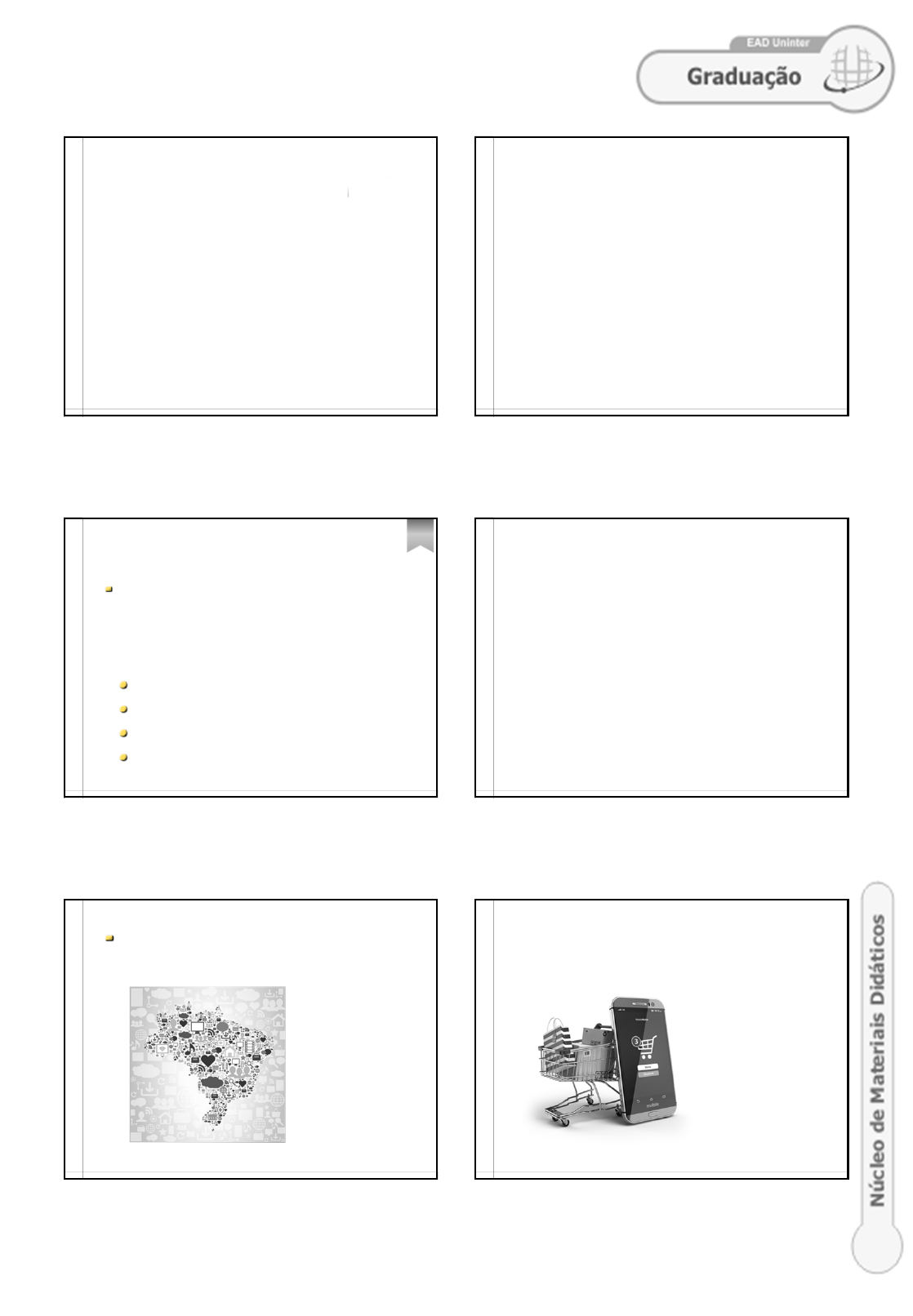 1 Prof. Helton Magalhães da Cruz Marketing Digital e Novas Mídias Aula 1 Conversa Inicial Nesta Rota apresentaremos o pano de fundo indispensável para iniciar um Projeto de Marketing Digital: Site Loja Virtual Mobile Marketing Redes Sociais Conversa Inicial Marketing Digital no Brasil 96,6 milhões de smartphones com internet em 2015 Crescimento das Vendas na Internet 2 Investimento em Marketing Digital 10 Profissões mais Prósperas em 2016 Eficácia das Campanhas Qual é a melhor Estratégia? Sites de Alta Performance 3 Experiência do Usuário Sites Auto Gerenciáveis Coparticipação no Projeto Chamada para Ação Blog E-Commerce ou Marketplace? 4 Qual a melhor Plataforma para uma Loja Virtual? Máximo de Informações sobre o Produto Marketplace Mobile Marketing 5 Vendas e Relacionamento Site Responsivoou Versão Mobile? Realize testes antes de iniciar as Ações Redes Sociais Facebook 6 WhatsApp Instagram Linkedin Twitter Snapchat Skype 7 Qual a melhor Rede Social? Na Prática Realize a arquitetura da informação de um site ou loja virtual de sua preferência Incluir: a) Menus do Site b) Textos de todas as páginas do site c) Texto do Botão de Call to Action de cada página Finalizando Antes de iniciar o Marketing Digital em sua Empresa, não se esqueça de criar um site ou Loja Virtual otimizado para Celulares 8