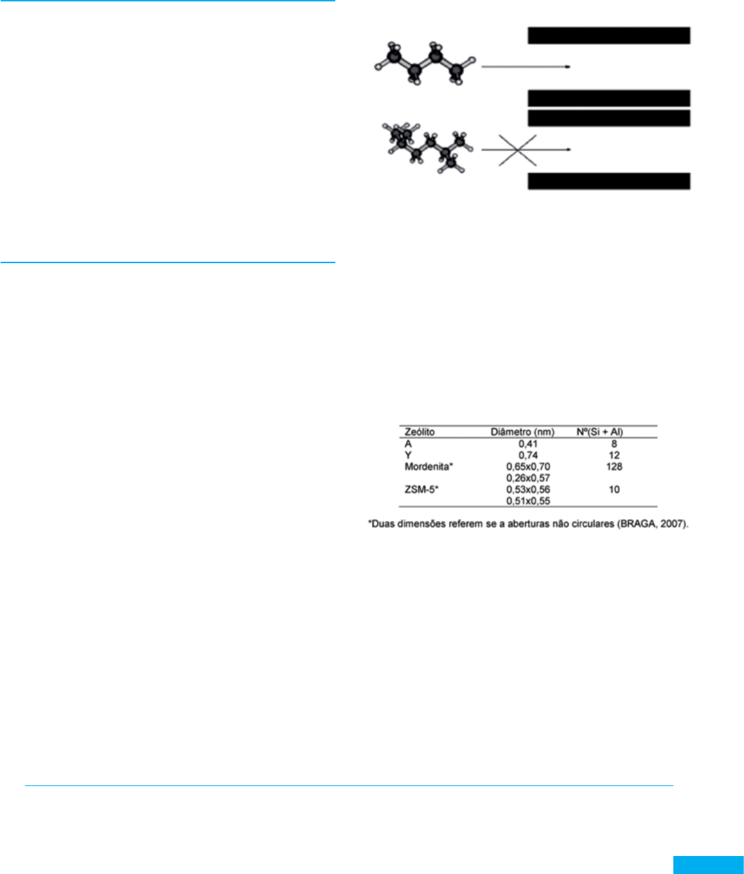 diâmetro) permite adsorção seletiva de moléculas