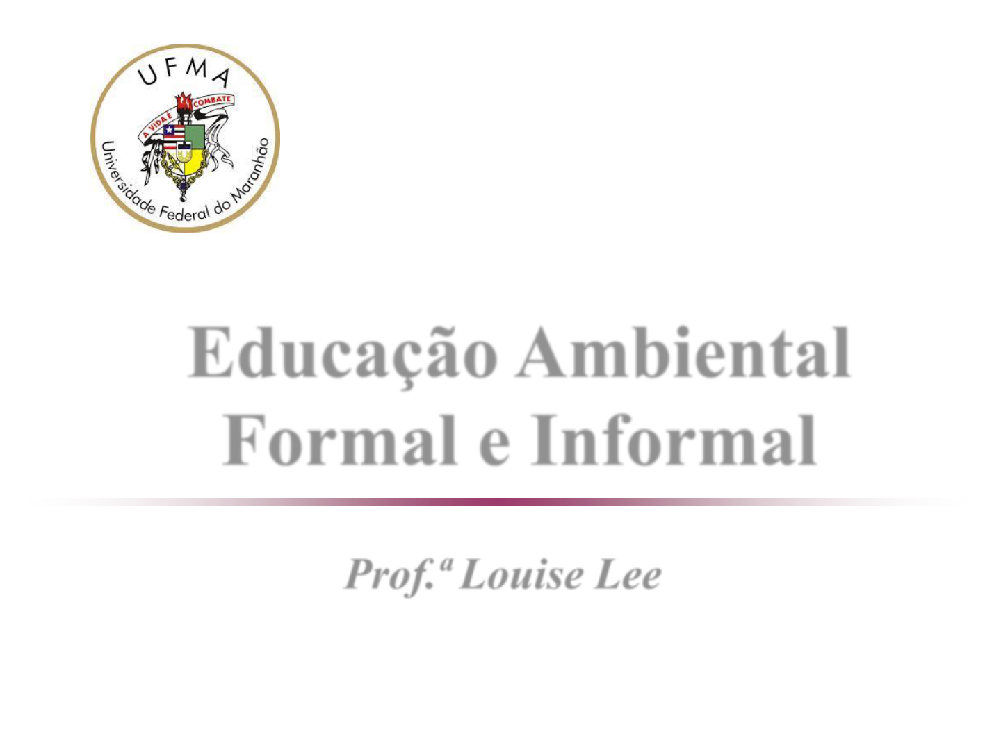 Educação Ambiental Formal e Informal Prof.ª Louise Lee UNIVERSIDADE FEDERAL DO MARANHÃO CAMPUS DE SÃO BERNARDO CURSO: CIÊNCIAS NATURAIS DISCIPLINA: MEIO AMBIENTE E CIDADANIA Educação Ambiental O papel da escola na formação para a cidadania não constitui tarefa simples, porque pressupõe um ensino que proporcione a crítica histórica da sociedade contemporânea; a reflexão crítica da condição de sujeito; a ação social comprometida com as alterações necessárias à construção de uma sociedade mais justa. Educação Ambiental Conscientização Ambiental A Educação Ambiental representa um instrumento fundamental para uma possível alteração do modelo de degradação ambiental vigente. As práticas educativas relacionadas à questão podem assumir função transformadora, o que faz os indivíduos, depois de conscientizados, se tornarem em objetos essenciais para a promoção do desenvolvimento sustentável. É importante conscientizar os cidadãos para que atuem de maneira responsável e mantenham o ambiente saudável no presente para que, no futuro, saibam exigir e respeitar os direitos próprios e os de toda a sua comunidade, o que modificará suas relações com o ambiente, tanto interiormente como pessoa, quanto como ser coletivo. Educação Ambiental Essa postura de dependência da população ocorre muito por desconhecimento e falta de consciência ambiental. A Educação Ambiental é um instrumento eficaz para superar os atuais embaraços da sociedade. Impactos ambientais negativos são resultados da precariedade dos serviços públicos oferecidos à população, mas também pelo desleixo e omissão dos próprios cidadãos, o que coloca em risco aspectos de interesse da coletividade. Educação Ambiental Meio ambiente: natureza - para contemplar, respeitar e preservar Meio ambiente: recurso - para gerir e repartir Meio ambiente: problema - para resolver e prevenir Meio ambiente: sistema - para entender e poder decidir melhor Meio ambiente: lugar em que se vive - para conhecer, explorar e aprimorar Meio ambiente: biosfera: - para viver em longo prazo Meio ambiente: projeto comunitário - em que e como se empenhar ativamente As múltiplas faces da nossa relação com o ambiente Educação Ambiental Meio ambiente: natureza (para contemplar, respeitar e preservar) – Os atuais problemas socioambientais tiveram origem na dificuldade que o homem tem de perceber que pertence à natureza, que é parte dela e que dela precisa. Meio ambiente: recurso (para gerir e repartir) –Implica educação para o consumo consciente, a conservação e a solidariedade na divisão igualitária dentro de cada sociedade, tanto as atuais quanto as futuras. Meio ambiente: problema (para resolver e prevenir) - visa estimular o exercício da resolução de problemas reais e a concretização de projetos que visam a preveni-los. As múltiplas faces da nossa relação com o ambiente Educação Ambiental Meio ambiente: sistema (para entender e poder decidir melhor) – A educação ecológica intervém de maneira fundamental, conduzindo a um aprendizado de conhecimento e respeito de toda a diversidade, a riqueza e a complexidade do meio ambiente. Meio ambiente: lugar em que se vive (para conhecer, explorar e aprimorar) – Conhecer, explorar e redescobrir o lugar em que se vive, ou seja, tentar mudar atitudes cotidianas para uma vida mais sustentável e consciente. Meio ambiente biosfera: (para viver em longo prazo) – Pensar em outras nações, refletir a respeito do desenvolvimento das sociedades humanas. As múltiplas faces da nossa relação com o ambiente Educação Ambiental Meio ambiente: projeto comunitário - (em que e como se empenhar ativamente) – Esta é a faceta com que as pessoas mais têm contato, porém sentem dificuldades em se enxergar como parte do projeto, como parte da comunidade. A cooperação e a parceria precisam ocorrer para que sejam realizadas as mudanças coletivamente desejadas. As múltiplas faces da nossa relação com o ambiente Estas faces estão interligadas e uma Educação Ambiental que contemple apenas uma ou outra se torna incompleta e causa danos irreparáveis ao meio ambiente. Educação Formal e Educação Informal Demandas da Educação Ambiental Formal - Realiza-se no âmbito escolar de forma sistematizada (Trabalhada inter e transdisciplinarmente); Envolve estudantes em geral, desde a educação infantil até a fundamental, média e universitária, além de professores e demais profissionais (Técnico em Meio Ambiente) envolvidos em cursos de treinamento em Educação Ambiental. Demandas da Educação Ambiental Informal - Baseada em trabalhos coletivos gerando aprendizado. O conhecimento é constituído através de situações problemas; Educação Formal e Educação Informal Envolve todos os segmentos da população, como por exemplo, grupos de mulheres, de jovens, trabalhadores, políticos, empresários, associações de moradores, profissionais liberais, dentre outros. Educação Ambiental Características Necessárias da Educação Ambiental Transformador Participativo Abrangente Globalizador Permanente Contextualizador Educação Ambiental Características Necessárias da Educação Ambiental Transformador: possibilita a aquisição de conhecimentos e habilidades capazes de induzir mudanças de atitudes. Participativo: atua na sensibilização e na conscientização do cidadão, estimulando-o a participar dos processos coletivos. Abrangente: extrapola as atividades internas da escola tradicional, deve ser oferecida continuamente em todas as fases do ensino formal, envolvendo a família e toda a coletividade. Globalizador - considera o ambiente em seus múltiplos aspectos: natural, tecnológico, social, econômico, político, histórico, cultural, moral, ético e estético. Deve atuar com visão ampla de alcance local, regional e global. Educação Ambiental Características Necessárias da Educação Ambiental Permanente: tem um caráter 