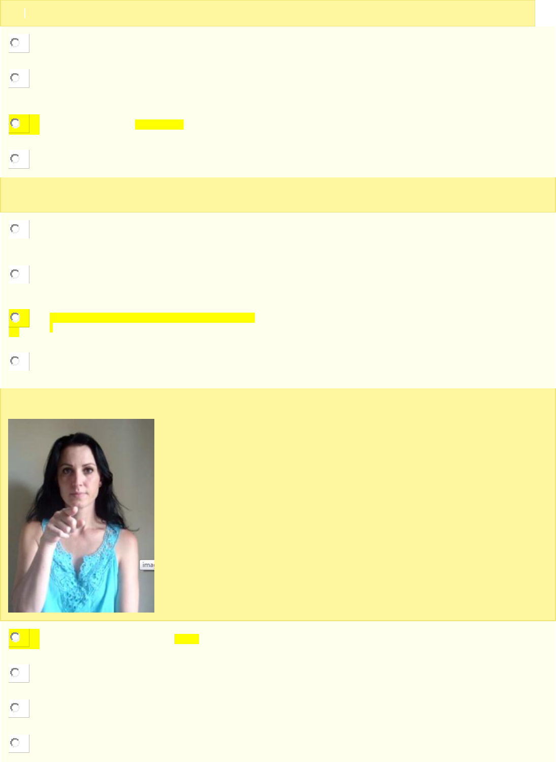 1. Veja a imagem e responda: qual é o parâmetro que difere entre si? A) Locação. B) Orientação de palma. C) Movimento. D) Configuração de mão. 2 Os linguistas Battison (1974), Klima e Bellugi (1979) conduziram estudos mais aprofundados e descreveram dois componentes importantes da gramática da língua de sinais. O que descobriram? A) A expressão facial afetiva e expressão facial gramatical. B) O ponto de articulação e a orientação de palma. C) A expressão não manual e a orientação de palma. D) O alfabeto manual e a datilologia. 3 Observe a sinalização da figura e responda a quem ela está indicando: A) Você. B) Ela. C) Eu. D) Nós. 4. A expressão facial é um parâmetro fundamental para marcar a função sintática e diferenciação de itens lexicais. Observe a expressão a seguir e assinale a alternativa correspondente: A) Afirmação. B) Interrogativa. C) Exclamação. D) Negação. 3. 5. Ter um filho surdo é um grande desafio para os pais, principalmente quando ele inicia o processo de escolarização. É dever do poder público garantir o acesso à educação inclusiva nas escolas. Entretanto, para que a aprendizagem efetivamente aconteça, a família também precisa assumir, com a instituição escolar, o seu papel. Partindo desse pressuposto, classifique V para as sentenças verdadeiras e F para as falsas: ( ) Os pais não devem se preocupar em buscar uma escola que atenda às necessidades educacionais dos seus filhos surdos. ( ) As crianças com deficiência auditiva desfrutam dos mesmos direitos à escolarização como as demais crianças. ( ) Em geral, os pais desconhecem seus direitos diante da educação formal de seus filhos, consequentemente, faltam-lhes argumentos para usufruir, com propriedade, do exercício desse direito subjetivo: a educação. ( ) Quando uma criança surda entra na escola, o mais importante é poder contar com o apoio incondicional da família, assim como da rede escolar. Assinale a alternativa que apresenta a sequência CORRETA: a) F - V - V - V. b) V - F - V - F. c) V - V - F - F. d) F - F - F - V. 6. Observe a imagem a baixo e responda a que categoria essa expressão corresponde: A)Nenhum a das alternativas. B) Afetivas e gramaticais. C) Afetivas. D) Gramaticais. Letra c 7. O verbo DAR faz parte dos: A)Verbos classificadores. B) Verbos espaciais. C) Verbos com concordância. D) Verbos simples. Letra c . Letra d 8. O processo de formação de sinal apresentado na gravura abaixo é : A) Incorporação negação. B) Composição. C) Derivação. D)Flexão. Letra a 9. A expressão facial da figura é gramatical, observe e responda a alternativa CORRETA: A) Grande. B ) Muito pequeno . C ) Pequeno . D) Caixa. 10. O que é: A) Bala. B ) Bola. C ) Bela. D ) Bolo.