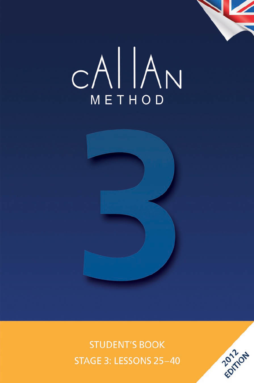 Student’s Book Stage 3 English in a quarter of the time! The Callan ® Method was first developed and published in 1960 by R.K. T. Callan. This edition was published for the international market in 2012. Copyright © R.K.T. Callan 2012 Student’s Book – Stage 3 eISBN 978-1-78229-002-5 CALLAN and the CALLAN logo are registered trade marks of Callan Works Limited, used under licence by Callan Publishing Limited Conditions of sale All rights reserved. No part of this publication may be reproduced, stored in a retrieval system or transmitted in any form or by any means, electronic, mechanical, photocopying, recording or otherwise, without the prior permission of the publishers. This book is sold subject to the condition that it shall not by way of trade or otherwise be lent, re-sold, hired out or otherwise circulated without the publisher’s prior consent in any form of binding or cover other than that in which it is published and without a similar condition including this condition being imposed on the subsequent purchaser. Published by CALLAN PUBLISHING LTD. Orchard House, 45-47 Mill Way, Grantchester, Cambridge CB3 9ND in association with CALLAN METHOD ORGANISATION LTD. www.callan.co.uk • Para obtener la traducción de este prefacio en español, visitar www.callan.co.uk/preface/es • Per una traduzione di questa prefazione in Italiano, visitare il sito www.callan.co.uk/preface/it • Para obter uma tradução deste prefácio em português, visite www.callan.co.uk/preface/pt • Z polskim tłumaczeniem tego wstępu można zapoznać się na stronie www.callan.co.uk/preface/pl • Pour obtenir la traduction de cette préface en français, rendez-vous sur le site www.callan.co.uk/preface/fr • Bu önsözün Türkçe çevirisi için aşağıdaki web adresini ziyaret edin www.callan.co.uk/preface/tr • 本序言的中文翻译,请访问 www.callan.co.uk/preface/ch • 前書きの日本語版の翻訳は次ページをご覧ください www.callan.co.uk/preface/jp • للاطلاع على ترجمة هذه المقدمة باللغة العربية يرجى زيارة www.callan.co.uk/preface/ar Welcome to the Callan Method Learning English with the Callan™ Method is fast and effective! The Callan Method is a teaching method created specifically to improve your English in an intensive atmosphere. The teacher is constantly asking questions, so you are hearing and using the language as much as possible. When you speak in the lesson, the teacher corrects your grammar and pronunciation mistakes, and you learn a lot from this correction. The Callan Method teaches English vocabulary and grammar in a carefully programmed way, with systematic revision and reinforcement. In the lesson, there is a lot of speaking and listening practice, but there is also reading and writing so that you revise and consolidate what you have learned. With the Callan Method, the teacher speaks quickly so that you learn to understand English when it is spoken at natural speed. This also means that everyone is concentrating hard all the time. English in a quarter of the time The Callan Method can teach English in a quarter of the time taken by any other method on the market. Instead of the usual 350 hours necessary to get the average student to the level of the Cambridge Preliminary English Test (PET), the Callan Method can take as little as 80 hours, and only 160 hours for the Cambridge First Certificate in English (FCE). The method is suitable for students of all nationalities, and ages. It requires no equipment (not even a whiteboard) or other books, and can be used for classes at private schools, state schools and universities. It is also possible for students to use the books to practise with each other when they are not at school. In addition to this, students can practise their English online using the interactive exercises, which are available to students who study at licensed schools. Ask your school for details. The Callan Method in practice A Callan Method English lesson is probably very different from lessons you have done in the past. You do not sit in silence, doing a reading comprehension test or a grammar exercise from a book. You do not have ‘free conversation’, where you only use the English you already feel comfortable with. Of course, activities like this can help you, but you can do them at home with a book, or in a coffee bar. In a Callan Method lesson, you are busy with important activities that you cannot do outside the classroom. You are listening to English all the time. You are speaking English a lot, and all your mistakes are corrected. You learn quickly because you are always surrounded by English. There is no silence and no time to get bored or lose your concentration. And it is also fun! So, what exactly happens in a Callan Method lesson, and how does it work? The teacher asks you questions The Callan Method books are full of questions. Each question practises a word, an expression, or a piece of grammar. The teacher is standing, and asks the questions to the students one by one. You never know when the teacher will ask you, so you are always concentrating. When one student finishes answering one question, the teacher immediately starts to ask the next question. The teacher speaks quickly The teacher in a Callan Method lesson speaks quickly. This is because, in the real world, it is natural to speak quickly. If you want to understand normal English, you must practise listening to quick natural speech and become able to understand English without first translating into your language. This idea of not translating is at the centre of the Callan Method; this method helps you to start thinking in English. Also, we do not want you to stop and think a lot about the grammar while you are speaking. We want you to speak as a reflex, instinctively. And do not worry about mistakes. You will, naturally, make a lot of mistakes in the lessons, but Callan Method teachers correct your mistakes, 