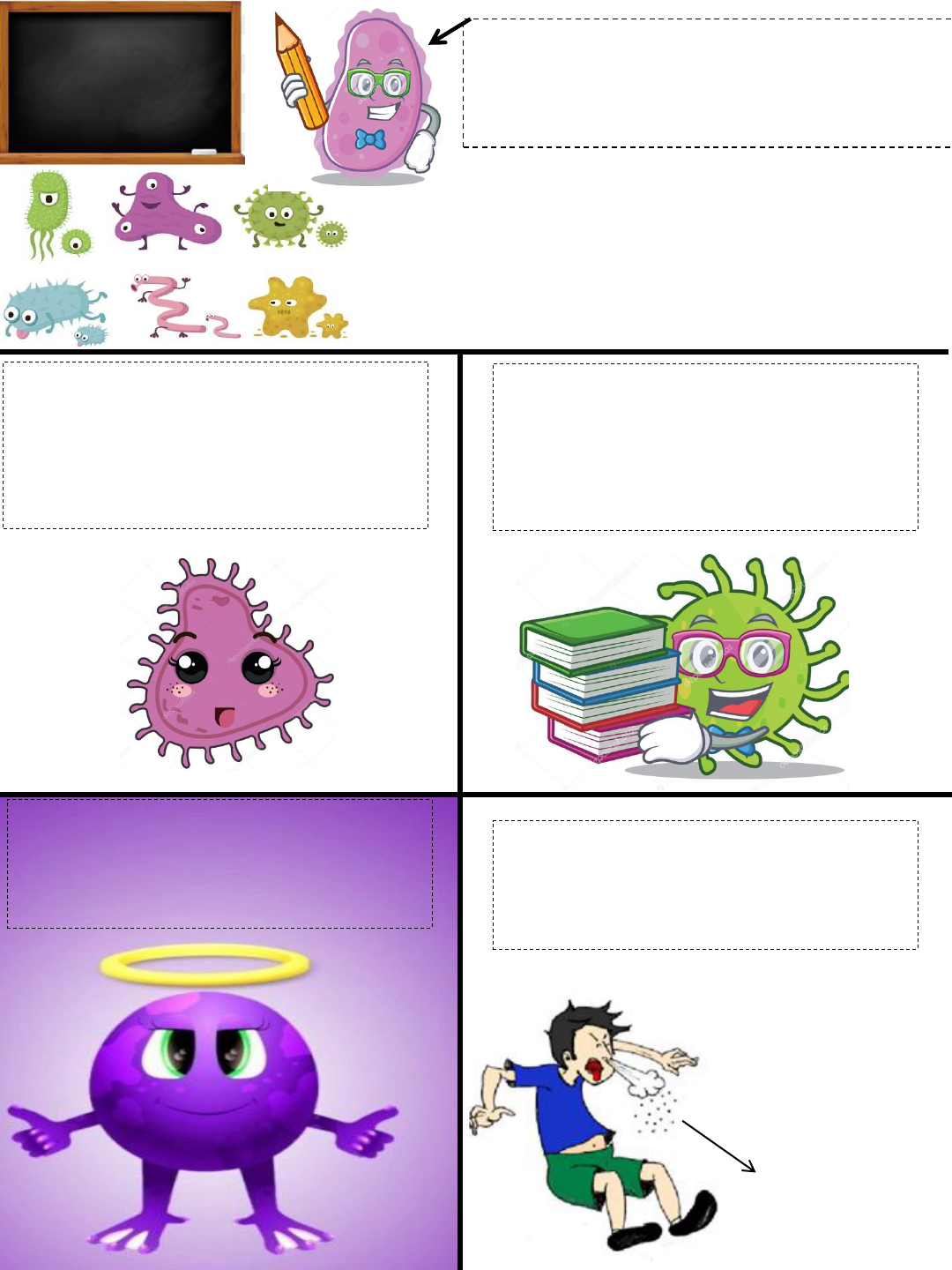 Olá pessoal hoje iremos falar sobre alguém muito importante: AS BACTÉRIAS Elas existem há bilhões de anos . Inclusive é considerada o 1° ser existente no planeta Terra. Desde o tempo em que os animais começaram a existir , há um relação entre elas e determinadas doenças. No nosso corpo há milhões de bactérias que são nossas aliadas Devemos saber identificar as intrusas para não atingir a nossa barreira microbiana Ahhh fomos expulsos do corpo - Por isso ,vocês , sistema imune , deverão estar muito bem preparados. Que as células do sistema imune são produzidos na medula óssea - Professor como iremos combatê-las ? - Como? Como ? Fala professor ! Para combater as bactérias que poderão causar alguma doença no corpo humano ,é necessário conhecer a sua estrutura. Algumas possuem cápsulas, isso as tornam mais resistentes aos fagócitos. Ela é composta por parede celular, que garantem a sua proteção , ela é forte e densa. Algumas possuem fímbrias para fixar melhor e flagelos para locomover-se com maior rapidez. Seu interior é menos complexo do que a de uma célula , mas contém estruturas que são suficientes para mantê-las vivas e resistentes . Elas são divididas em dois tipos: Professor elas possuem formas ? Mas é claro que sim. Vamos á explicação Suas formas são variadas: Nossa que interessante prof , estou animado com tudo isso mas como elas surgiram? Então , sua evolução tem sido vista através de algumas teorias , uma delas é o efeito chaminé . Esse efeito explica como o antibiótico entra na célula e é expulso mas não retorna devido a bomba de efluxo . Bomba de efluxo ? O que é isso ? ? ? ? É como uma bomba de transporte ativo que expulsa o antibiótico e ele não pode retornar devido a barreira que o efeito forma , como uma tampa de chaminé. Então vamos exterminar todas as bactérias ? Não ! Não devemos elimina-las completamente , devemos mantê-las aliadas sob controle e impedir o seu crescimento desordenado . E ainda bloquear a invasão das bactérias resistentes ao nosso sistema. Mas como essas bactérias tornam-se resistentes ? Então ... De diversas formas como por exemplo : Uso de remédios sem prescrição médica . Descarte indevido de remédios como: na pia , no vaso sanitário ou diretamente no solo ou água . Como também através do lixo hospitalar , com descarte indevido , contendo bactérias que entrarão em contato com o antibiótico e se tornarão resistente. Então como poderemos ajudar ao sistema imune ? Ótima pergunta macrófago. Então para a próxima aula, vocês deverão trazer um trabalho explicando como cada um de vocês podem contribuir com suas funções específicas para atuar na defesa do sistema imunológico.