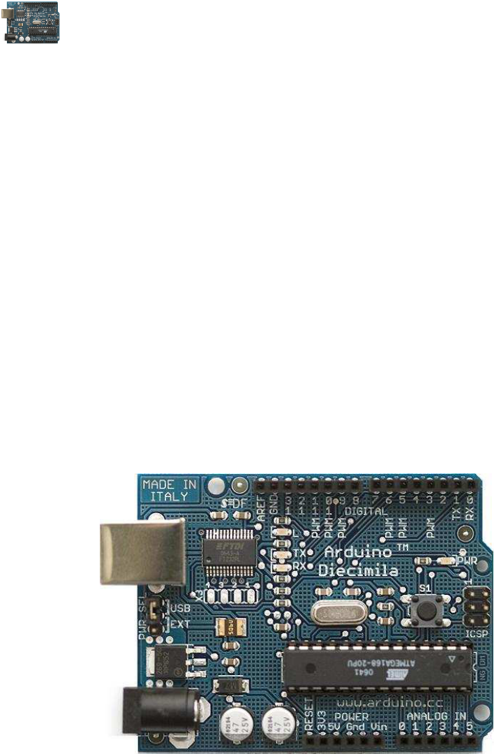 Arduino: Manual de Programación 1 Manual de Programación Arduino La “inteligencia de Arduino” se expresa mediante su lenguaje de programación Guía rápida de referencia Traducido y adaptado: José Manuel Ruiz Gutiérrez Arduino: Manual de Programación 2 Datos del documento original Arduino Notebook: A Beginner’s Reference Written and compiled by Brian W. Evans With information or inspiration taken from: http://www.arduino.cc http://www.wiring.org.co http://www.arduino.cc/en/Booklet/HomePage http://cslibrary.stanford.edu/101/ Including material written by: Massimo Banzi Hernando Barragin David Cuartielles Tom Igoe Todd Kurt David Mellis and others Published: First Edition August 2007 This work is licensed under the Creative Commons Attribution-Noncommercial-Share Alike 3.0 License. To view a copy of this license, visit: http://creativecommons.org/licenses/by-nc-/ Or send a letter to: Creative Commons 171 Second Street, Suite 300 San Francisco, California, 94105, USA Arduino: Manual de Programación 3 Índice de contenidos estructura estructura setup() loop() funciones {} uso de llaves ; punto y coma /*… */ bloque de comentarios // linea de comentario variables variables declaración de variables variable scope tipos de datos byte int long float arrays aritmética aritmética composición de asignaciones operadores de comparación operadores lógicos constantes constantes cierto/falso alto/bajo entrada/salida Arduino: Manual de Programación 4 control de flujo if if… else for while do… while E/S digitales pinMode(pin, mode) digitalRead(pin) digitalWrite(pin, value) E/S analógicas analogRead(pin) analogWrite(pin, value) tiempo delay(ms) millis() matemáticas min(x, y) max(x, y) aleatorio randomSeed(seed) random(min, max) Puerto serie Serial.begin(rate) Serial.println(data) Serial.print(data, data type) apéndice salida digital entrada digital salida de alto consumo (corriente) salida analógica (pwm) potenciómetro de entrada Resistencia variable de entrada Salida a servo APENDICES Formas de Conexionadode entradas y salidas Como escribir una librería para Arduino Señales analógicas de salida en Arduino (PWM). Arduino: Manual de Programación 5 Comunicando Arduino con otros sistemas Comunicación vía puerto Serie: Envio de datos desde el PC (PC->Arduino) a Arduino por puerto de comunicación serie: Envío a petición (toma y dame) Conversor Analógico-Digital (A/D) Comunicación serie Palabras reservadas del IDE de Arduino Circuitos de interface con Arduino Arduino: Manual de Programación 6 La estructura básica del lenguaje de programación de Arduino es bastante simple y se compone de al menos dos partes. Estas dos partes necesarias, o funciones, encierran bloques que contienen declaraciones, estamentos o instrucciones. void setup() { estamentos; } void loop() { estamentos; } En donde setup() es la parte encargada de recoger la configuración y loop() es la que contienen el programa que se ejecutará cíclicamente (de ahí el termino loop –bucle-). Ambas funciones son necesarias para que el programa trabaje. La función de configuración debe contener la declaración de las variables. Es la primera función a ejecutar en el programa, se ejecuta sólo una vez, y se utiliza para configurar o inicializar pinMode (modo de trabajo de las E/S), configuración de la comunicación en serie y otras. La función bucle (loop) siguiente contiene el código que se ejecutara continuamente (lectura de entradas, activación de salidas, etc) Esta función es el núcleo de todos los programas de Arduino y la que realiza la mayor parte del trabajo. La función setup() se invoca una sola vez cuando el programa empieza. Se utiliza para inicializar los modos de trabajo de los pins, o el puerto serie. Debe ser incluido en un programa aunque no haya declaración que ejecutar. void setup() { pinMode(pin, OUTPUT); // configura el 'pin' como salida } estructura de un programa setup() loop() Arduino: Manual de Programación 7 Después de llamar a setup(), la función loop() hace precisamente lo que sugiere su nombre, se ejecuta de forma cíclica, lo que posibilita que el programa este respondiendo continuamente ante los eventos que se produzcan en la tarjeta void loop() { digitalWrite(pin, HIGH); // pone en uno (on, 5v) el ´pin´ delay(1000); // espera un segundo (1000 ms) digitalWrite(pin, LOW); // pone en cero (off, 0v.) el ´pin´ delay(1000); } Una función es un bloque de código que tiene un nombre y un conjunto de estamentos que son ejecutados cuando se llama a la función. Son funciones setup() y loop() de las que ya se ha hablado. Las funciones de usuario pueden ser escritas para realizar tareas repetitivas y para reducir el tamaño de un programa. Las funciones se declaran asociadas a un tipo de valor “type”. Este valor será el que devolverá la función, por ejemplo 'int' se utilizará cuando la función devuelva un dato numérico de tipo entero. Si la función no devuelve ningún valor entonces se colocará delante la palabra “void”, que significa “función vacía”. Después de declarar el tipo de dato que devuelve la función se debe escribir el nombre de la función y entre paréntesis se escribirán, si es necesario, los parámetros que se deben pasar a la función para que se ejecute. type nombreFunción(parámetros) { estamentos; } La función siguiente devuelve un número entero, delayVal() se utiliza para poner un valor de retraso en un programa que lee una variable analógica de un potenciómetro conectado a una entrada de Arduino. Al principio se declara como una variable local, ´v´ recoge el valor leído del potenciómetro que estará comprendido entre 0 y 1023, luego se divide el valor por 4 para ajustarlo a un margen comprendido entre 0 y 255, finalmente se devuelve el valor ´v´ y se retornaría al programa principal. Esta función cuando se ejecuta devuelve el valor de tipo entero ´v´ int delayVal() { int v; // crea una variable temporal 'v' v= ana