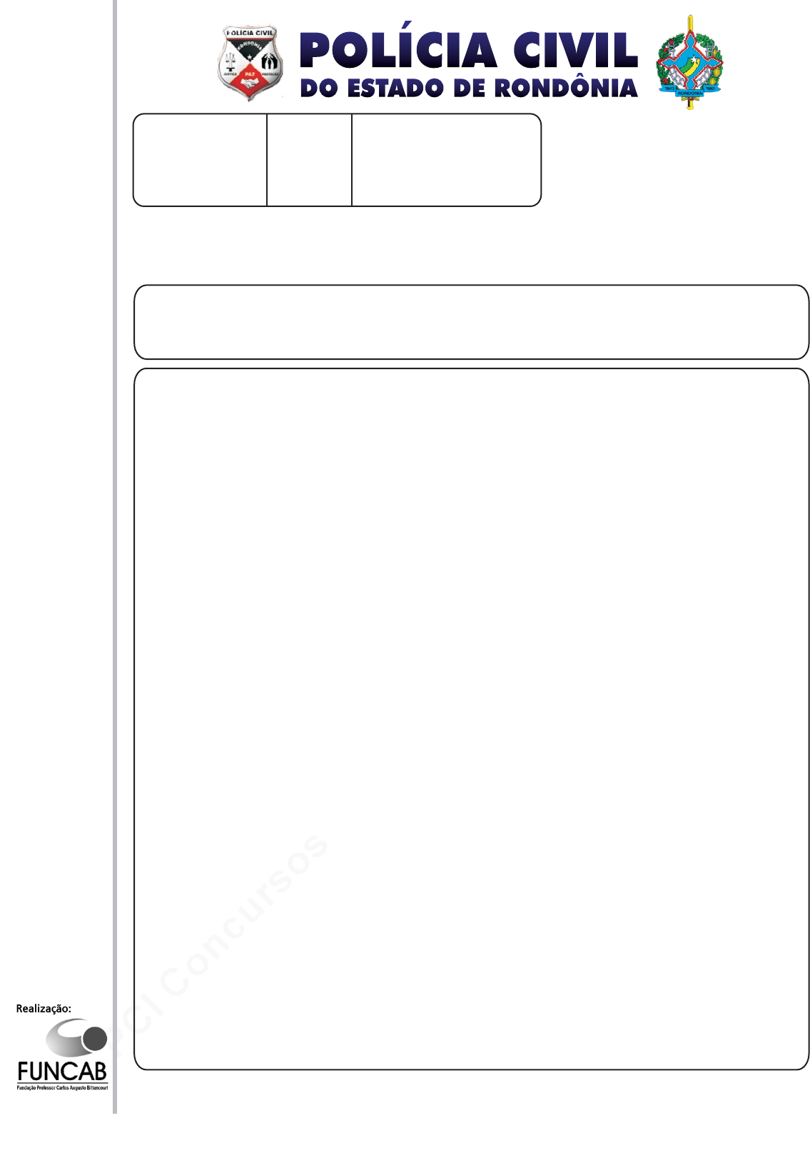 pcimarkpci MjgwNDowMTRkOjVjNzc6ODdhMTplOWNiOmQyYmM6YTMzMDpmYzVm:VGh1LCAwMSBBdWcgMjAxOSAyMTowODozOCAtMDMwMA== BOA PROVA A T E N Ç Ã O 1. O contém 80 questões de múltipla-escolha, cada uma com 5 opções (A, B, C, D e E) e Redação . 2. Ao receber o material, verifique no e na seu nome, número de inscrição, data de nascimento e cargo. Qualquer irregularidade comunique imediatamente ao fiscal de sala. Não serão aceitas reclamações posteriores. 3. A prova objetiva e a redação terão juntas duração de 4 horas e 30 minutos, incluído neste tempo o preenchimento do e da . 4. Leia atentamente cada questão e assinale no a opção que responde corretamente a cada uma delas. O será o único documento válido para a correção eletrônica. O preenchimento do e a respectiva assinatura serão de inteira responsabilidade do candidato. Não haverá substituição do e da , por erro do candidato. 5. Observe as seguintes recomendações relativas ao : - A maneira correta de marcação das respostas é cobrir, fortemente, com esferográfica de tinta azul ou preta, o espaço correspondente à letra a ser assinalada. -Outras formas demarcação diferentes implicarão a rejeição do . - Será atribuída nota zero às questões não assinaladas ou com falta de nitidez, ou com marcação de mais de umaopção, e as emendadas ou rasuradas. 6. O fiscal de sala não está autorizado a alterar qualquer destas instruções. Em caso de dúvida, solicite a presença do coordenador local. 7. Você só poderá retirar-se definitivamente do recinto de realização da prova após 60 minutos contados do seu efetivo início, . 8. Você só poderá levar o próprio faltando 60 minutos para o término do horário da prova, conformeEdital doConcursoPúblico. 9. Pormotivo de segurança, só é permitido fazer anotação durante a prova no . 10. Após identificado e instalado na sala, você não poderá consultar qualquer material, enquanto aguarda o horário de início da prova. 11. Os três últimos candidatos deverão permanecer na sala até que o último candidato entregue o e a . 12.Ao terminar a prova, é de sua responsabilidade entregar ao fiscal o e a .Não esqueça seus pertences. 13. O será disponibilizado no site www.funcab.org, no dia 15/12/2009, conformeestabelecido noCronogramaPrevisto. Caderno de Questões Cartão de Respostas Folha de Resposta da Redação, Cartão de Respostas Folha de Resposta da Redação Cartão de Respostas Cartão de Respostas Cartão de Respostas Cartão de Respostas Folha de Resposta da Redação Cartão de Respostas Cartão de Respostas sem levar o Caderno de Questões Caderno de Questões Caderno de Questões Cartão de Respostas Folha de Resposta da Redação Cartão de Respostas Folha de Resposta da Redação Gabarito Oficial da Prova Objetiva Técnico de Necrópsia DATA: 13/12/2009 DOMINGO - TARDE FRASE PARA EXAME GRAFOLÓGICO (TRANSCREVA NO QUADRO DE SEU CARTÃO DE RESPOSTAS) W. A. Peterson “A transformação pessoal requer substituição de velhos hábitos por novos.” XM08 ATENÇÃO VERIFIQUE SE CÓDIGO E PROVA DESTE CADERNO DE QUESTÕES CONFEREM COM O SEU CARTÃO DE RESPOSTAS PROVACÓDIGO C A D E R N O D E Q U E S T Õ E S www.pciconcursos.com.br pcimarkpci MjgwNDowMTRkOjVjNzc6ODdhMTplOWNiOmQyYmM6YTMzMDpmYzVm:VGh1LCAwMSBBdWcgMjAxOSAyMTowODozOCAtMDMwMA== 02 LÍNGUA PORTUGUESA Leia o texto abaixo e responda às questões propostas. Apesar de todos os avanços ocorridos no estado de direito, o crescimento da violência e da criminalidade, ao lado do agravamento das já graves violações de direitos humanos no ano de 1994, conduziu as autoridades a uma militarização crescente do enfrentamento da violência. Os resultados bastante limitados, para dizer o mínimo, atingidos pela ocupação militar da cidade do Rio de Janeiro mostram claramente a ineficiência dessa abordagem. O equívoco não é apenas logístico, mas reside na concepção mesma da abordagemmilitarizada. O estereótipo das sociedades modernas, em especial as cidades, como o lugar da violência faz crer que a violência urbana tenha aumentado de forma ininterrupta desde a formação das grandes cidades, mas isso não corresponde à realidade. Na realidade, o crescente monopólio da violência física e o autocontrole que os habitantes da cidade progressivamente se impuseram levaram a uma crescente “pacificação” do espaço urbano. Se os níveis de criminalidade forem tomados como um indicador de violência, fica claro que esta declinou desde meados do século XIX até meados do século XX: somente por volta dos anos 1960 a violência e o crime começam a aumentar, tornando-se o crimemais violento depois dos anos 1980. Apesar da violência, do crime, das graves violações de direitos humanos, não está em curso no Brasil uma “guerra civil” que exige uma crescente militarização, com a intervenção das forças armadas – como ocorreu na cidade do Rio de Janeiro. A noção de guerra é equivocada por que os conflitos ocorrem no interior da sociedade, onde seus membros e grupos sociais – especialmente em sociedades com má distribuição de renda – jamais cessam de viver em situações antagônicas. É a democracia que permite à sociedade conviver com o conflito, graças ao respeito das regras do jogo definidas pela constitucionalidade e dos direitos humanos, tanto direitos civis e políticos como sociais e econômicos: o enfrentamento militarizado do crime organizado não é compatível com a organização democrática da sociedade. Nenhuma pacificação na sociedade é completa. A matança pela polícia, a violência do crime, as chacinas, os arrastões, a guerra do tráfico não são episódios de uma guerra civil nem retorno ao estado de natureza. São consequências de conflitos e políticas de Estado permanentemente reproduzidas pelas relações de poder numa sociedade autoritária ao extremo, por meio das instituições e das desigualdades sociais. (...) Essa crítica às