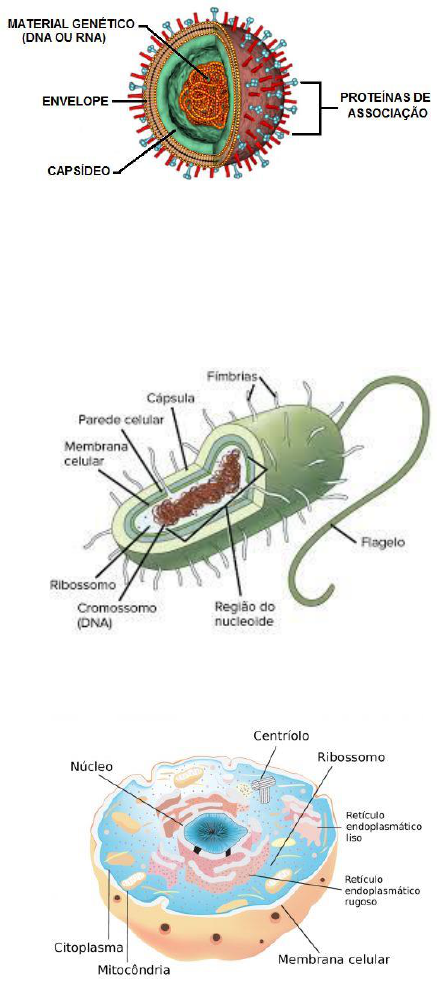 Introdução à Citologia • Características gerais dos vírus: - São parasitas intracelulares obrigatórios; - Há distinção entre os vírus vegetais dos animais; - Vírus das bactérias – Bacteriófagos - Possuem ácido nucleico (RNA ou DNA), proteínas (porção periférica; capsídeo), e alguns apresentam um invólucro lipoproteico a partir da membrana plasmática; • Rickettsia e Clamídias: - São células incompletas; - Diferem-se dos vírus por: apresentarem DNA e RNA, necessitam de suplementação pelo meio intracelular para formar novos descendentes e possuem membrana semipermeável; - São parasitas intracelulares obrigatórios, assim como os vírus; • Células Procariontes: - Seus cromossomos não são separados do citoplasma por membrana; - Compreendem as bactérias (procariotas); - Possuem ribossomos (poli ribossomos), dois cromossomos circulares idênticos (nucleóides), membrana plasmática, parede celular, mesossomos (as vezes) e citoplasma; - Cocos, diplococos, estreptococos, estafilococos, esporos bacterianos, bactéria flagelada, vibriões, espirilos e bacilos; • Células Eucariontes: - Possuem citoplasma e núcleo bem definidos; - Citoplasma: membrana plasmática, núcleo: envoltório nuclear; - Existe uma separação das atividades mas microrregiões que contem moléculas diferentes e executam funções especializadas (endomembranas); - Possuem as organelas: mitocôndrias, reticulo endoplasmático, complexo de Goldi, lisossomos, matriz citoplasmática/hialoplasma/citosol (separando cada estrutura e possui água, íons, aminoácidos e enzimas) e ribossomos; - Membrana plasmática com passagem seletiva; • Origem e evolução das células - Caldo primordial- moléculas inorgânicas e gases atmosféricos; - descargas elétricas e calor fundiram as substâncias (vapor d’ agua, metano, amônia, hidrogênio, gás carbônico e sulfeto de hidrogênio) e formaram os primeiros compostos contendo carbono – aminoácidos (proteínas), nucleotídeos (ácidos nucleicos) e fosfolipídios (membrana); - Síntese probiótica (caldo primordial); - A primeira célula: procarionte heterotrófica anaeróbia; - Células autotróficas – semelhantes as algas azuis ou cianofíceas – fazem fotossíntese e produz clorofila; - Surgimento da célula eucariótica: teoria endossimbiótica - células procariontes englobaram bactérias devido a modificações evolutivas; a mitocôndria e os cloroplastos são derivados dessa associação; - Inicialmente haveria dois reinos: animal e vegetal; - Atualmente admite-se 5 reinos: monera (procariontes), protista (eucariontes unicelulares), fungi, plantae e animália; • Microscopia - Microscópio ótico (de luz) – pode ser utilizado para observação de células vivas; possui capacidade de 400x de ampliação; usado comumente em universidades; possui maior comprimento de onda (menor resolução comparado ao eletrônico); lentes de vidro; - Microscópio eletrônico – lança um feixe de elétrons para visualizar uma imagem; possui menor comprimento de onda (melhor resolução); microscopia eletrônica de varredura – produz uma imagem 3D; microscopia eletrônica de transmissão – produz uma imagem 2D; são maiores; lentes eletromagnéticas; possui capacidade de 1000x de ampliação; • Técnicas histológicas - Técnica histológica: caracterização do tecido; - HE: Hematoxilina e Eosina; - Hematoxilina: corante básico; azul de toilidina e azul de metileno; - Eosina: corante ácido; Orange de acridina e fuscina ácida; - A hematoxilina tem atração por substâncias ácidas (basófilas) dos tecidos, como os núcleos e o retículo endoplasmático rugoso e ácidos nucleicos. Já a eosina, sendo ácida, cora predominantemente o citoplasma, as fibras de colágeno e outras estruturas compostas por substâncias com caráter básico (acidófilas); • Técnicas histoquímicas - P.A.S – evidencia o glicogênio e polissacarídeos; possui coloração rosa/lilás; - Alcian Blue (AB) – evidencia os grupos carboxilas e sulfatos com ph específicos; coloração azul claro; - Reação de Feulgen – evidencia o DNA das células; coloração rosa; Citologia – Membrana Plasmática • Características gerais da membrana plasmática: -Separa o meio intracelular (interno) do meio extracelular (externo); -Possui uma permeabilidade seletiva; -Possui uma bicamada lipídica - com fosfolipídios e colesterol; -Contém proteínas e carboidratos; -Modelo aceito: mosaico fluído; -Não é visível no microscópio ótico, apenas no eletrônico; -Possui uma estrutura trilaminar (unidade de membrana): duas lâminas eletrodensas (parte polar – grupo carboxila) e uma eletroluzente (parte apolar – cadeia carbônica); -Espessura de 7,5 à 10nm; • Particularidades: -Haverá dois tipos de classificação das proteínas: integrais ou transmembranas (atravessam a membrana plasmática) e periféricas (não atravessam); -Proteínas integrais/transmembranas podem possuir passagem única ou múltipla; -Os carboidratos sempre estarão voltados para o meio extracelular; -Quando os carboidratos estão ligados a uma proteína, são chamados de Glicoproteínas; -Quando os carboidratos estão ligados a um lipídeo, são chamados de Glicolipídios; -Glicoproteínas e glicolipídios são responsáveis pelo reconhecimento celular; • Fatores que justificam a assimetria da bicamada lipídica: -Composição lipídica e proteica; -Distribuição das moléculas de glicolipídios e glicoproteínas; -Diferenças químicas; -Carga elétrica; • Fatores que influenciam a fluidez da membrana: -Temperatura fisiológica; -Presença de insaturações; -Tamanho das caudas hidrofóbicas (apolares); -Presença de colesterol; • Tipos de proteínas: -Transportadoras; -Receptoras; -Linkers; -Enzimáticas; • Funções do glicocálice: -Proteção – permite distinguir o que é próprio ou não do organismo; -Filtração; -Sistema enzimático; -Reconhecimento celular; • Especia