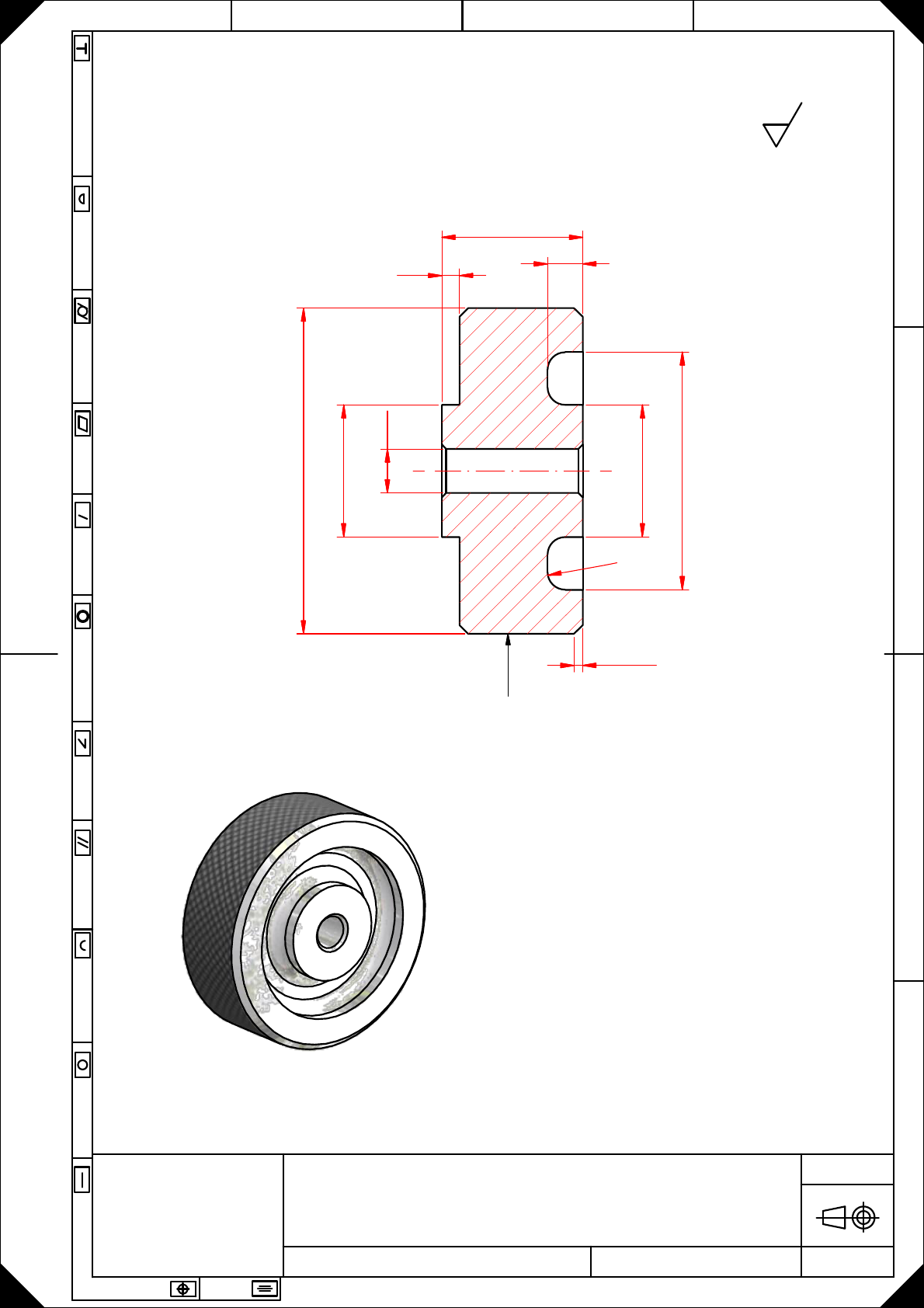 Pe rp en di cu la rid ad e F. S up . Q ua l. C ilin dr ic id ad e Pl an ez a Ba tim en to C on ce nt ric id ad e In cl in a? ? o Pa ra le lis m o F. L in ha . Q ua l. C irc ul ar id ad e R et ilin id ad e Pos. de um Elem. Simetria Formato A4 A B C D 4321 1:1 Unidade: mm Escala: Proje??o: Turma: Mecanica (Detalhes) RODA Material: T?tulo: Aluminio ?1.1/2" x 21 ? 5 15 ? 37 ? 27 ? 15 ? 4 2 16 R2 NBR 14957 - RGE Recartilhado 1,5 3,212 1 x 45?