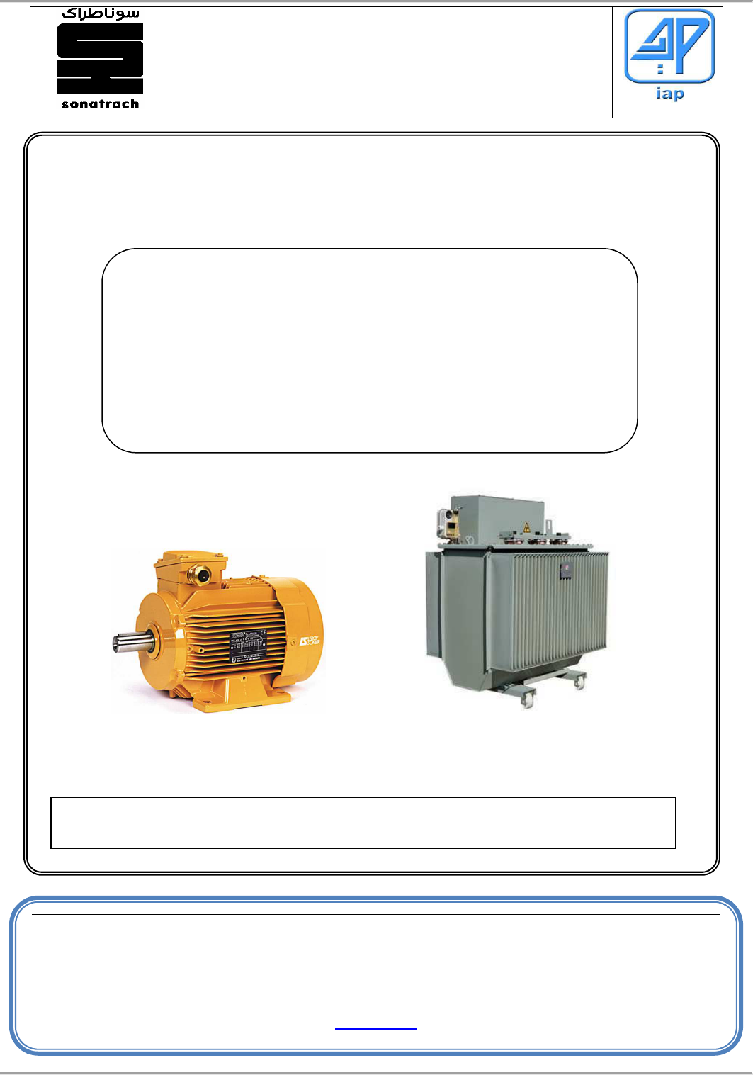 Machines à courant alternatif ECOLE DE SKIKDA Département Génie Electrique & Instrumentation لو����� ي� ا� �ا �����ا INSTITUT ALGERIEN DU PETROLE MACHINES A COURANT ALTERNATIF Entreprise Nationale Sonatrach, Institut Algérien du Pétrole, IAP. Avenue du 1er novembre, Boumerdès 35000, Algérie. Ecole de Skikda les Platanes Filfila, 21101. : Site web. .00.0038 92)213: ( Fax–.46 .9238 92) 213: (Teldz.iap.www://http: mail- E dz.iap@iap Préparé par Mr : METATLA Rachid Machines à courant alternatif 1-Les circuits monophasés et triphasés ………………………………………….........…..… 1 1-1 Les circuits électriques.................................................................................. 1 1-1-1 Introduction ………………………………………………………………………… 1 1-2 Généralités sur les circuits monophasés ………………………………………... 2 1-2-1 Définitions et caractéristiques ………………………………………………... 2 1-2-2 Représentation vectorielle de Fresnel ……………………………………….. 4 1-2-3 Puissance active ………………………………………………………………….. 8 1-2-4 Puissance réactive …..…………………………………………………………… 9 1-2-5 Puissance apparente …………………………………………………………….. 10 1-2-6 facteur de puissance d’une installation monophasée ……………………… 12 1-3 Généralités sur les circuits triphasés …………………………………………… 13 1-3-1 Définitions et caractéristiques ………………………………………………… 13 1-3-2 Réseaux triphasés ………………………………………………………………... 14 1-3-3 Représentation de Fresnel des tensions …………………………………… 14 1-3-4 Relation entre tension simple et tension composée ………………………. 15 1-3-5 Récepteurs triphasés …………………………………………………………… 16 1-3-6 Système triphasé équilibré ……………………………………………………… 17 1-3-7 Système triphasé déséquilibré ………………………………………………… 18 1-3-8 Puissance dans un système triphasé ………………………………………… 19 1-3-9 Puissance active ………………………………………………………………….. 20 1-3-10 Puissance réactive ……………………………………………………………… 21 1-3-11 Puissance apparente …………………………………………………………… 22 1-3-12 Puissance dissipée ……………………………………………………………... 23 1-3-13 Facteur de puissance …………………………………………………………... 24 2-Généralités sur les machines électriques …………………………………… 26 2-1 Classification des machines électriques ………………………………………… 26 2-2 Constitution d’une machine électrique ………………………………………….. 26 2-3 Circulation du flux d’induction ……………………………………………………. 27 2-3-1 Définition …………………………………………………………………………… 27 2-3-2 Production du flux par les pôles saillants …………………………………… 27 2-3-3 Production du flux par les pôles lisses ……………………………………… 28 2-3-4 Répartition du flux dans l’entrefer …………………………………………… 28 2-3-5 Fuites magnétiques ……………………………………………………………… 29 2-4 Induction dans l’entrefer …………………………………………………………… 29 2-4-1 Nombre de pôles d’un enroulement à courant alternatif ………………… 29 2-4-2 Forme de l’induction dans l’entrefer ………………………………………… 31 2-4-3 Théorème de Maurice Leblanc ………………………………………………… 32 2-4-4 Flux tournant circulaire ………………………………………………………… 33 2-5 Flux utile en fonction de la FMM ………………………………………………… 34 2-5-1 Cas des FMM continues ………………………………………………………… 35 Machines à courant alternatif 2-5-2 Cas des FMM alternatives ……………………………………………………… 35 3-Les transformateurs monophasés ……………………………………………………………… 35 3.1 Rôle d'un transformateur ……………………………………………………………. 35 3.2 Transport de l'énergie électrique …………………………………………………. 35 3-3 Le principe d'un transformateur ………………………………………………….. 36 3-3-1 Constitution ………………………………………………………………………... 36 3-4 Transformateur parfait …………………………………………………………… 38 3-4-1 Etude à vide ……………………………………………………………………….. 39 3-4-2 Etude en charge …………………………………………………………………. 40 3-5 Comparaison avec le transformateur réel ……………………………………… 41 3-6 Schémas équivalents ………………………………………………………………... 42 3-7 Rendement …………………………………………………………………………….. 43 3-7-1 Pertes dans le fer ………………………………………………………………… 44 3-7-2 Pertes dans le cuivre ………………………………………………