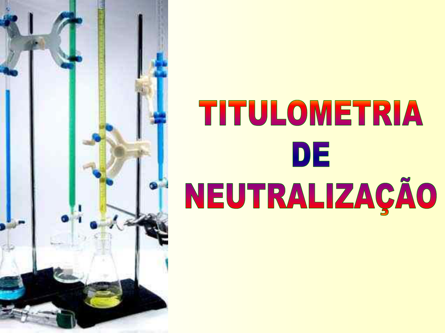 TITULOMETRIA DE NEUTRALIZAÇÃO: TIPO DE TITULOMETRIA BASEADA EM REAÇÕES ÁCIDO-BASE ENTRE O ANALITO E O TITULANTE. Titulado: Amostra c/ ANALITO (ÁCIDO OU BASE) + INDICADOR ÁCIDO/BASE Titulante: SOLUÇÃO PADRÃO DE ÁCIDO OU BASE CURVAS DE TITULAÇÃO ÁCIDO-BASE GRÁFICO APRESENTANDO A VARIAÇÃO DO pH DO TITULADO EM FUNÇÃO DO VOLUME DE TITULANTE ADICIONADO MAIOR COMPREENSÃO DA TITULAÇÃO ÁCIDO-BASE ! ESCOLHA DO INDICADOR ! TITULAÇÃO DE MISTURAS ! DETERMINAÇÃO DO PONTO FINAL DE TITULAÇÃO ! A) TITULAÇÃO DE UM ÁCIDO FORTE COM UMA BASE FORTE TITULADO: SOLUÇÃO DE ÁCIDO FORTE TITULANTE: SOLUÇÃO PADRÃO DE BASE FORTE MB = concentração da base em mol/L VB = volume de base adicionado (mL) MA = concentração do ácido em mol/L VA = volume inicial de ácido (mL) 4.57 pHmetro Montagem experimental para obtenção de curvas de titulação ácido/base EXEMPLO: CURVA DE TITULAÇÃO de 50 mL de uma solução de ÁCIDO FORTE 0,01 mol/L c/ uma solução de BASE FORTE 0,02 mol/L 0 1 2 3 4 5 6 7 8 9 10 11 12 13 14 0 5 10 15 20 25 30 35 40 45 50 VB (mL) p H VOLUME DE EQUIVALÊNCIA = VE PE REGIÃO DE EXCESSO DE ÁCIDO REGIÃO DE EXCESSO DE BASE A) TITULAÇÃO DE UM ÁCIDO FORTE COM UMA BASE FORTE CÁLCULO DO pH DO TITULADO EM FUNÇÃO DO VOLUME DE BASE ADICIONADO: PONTO INICIAL (VB = 0) SOLUÇÃO DE ÁCIDO FORTE [H +] = MA (considerando a total ionização do ácido !) LEMBRANDO QUE: pH = - log [H+] EXEMPLO: Para uma solução 0,01 mol/L de ácido forte temos que o pH do titulado antes da adição do titulante é : pH = - log [H+] = - log 0,01 = 2,0 A) TITULAÇÃO DE UM ÁCIDO FORTE COM UMA BASE FORTE REGIÃO DE EXCESSO DE ÁCIDO (0 < VB < VE) NESTA REGIÃO, PARTE DO ÁCIDO FOI CONSUMIDO PELA BASE ADICIONADA, E O pH SERÁ ESTABELECIDO PELO ÁCIDO RESTANTE: [H+] = No de moles de ácido não reagido Volume total [H+] = No de moles inicial de ácido - No de moles de base adicionados Volume total [H+] = MAVA - MBVB VA + VB = MBVE - MBVB VA + VB = MB (VE – VB) VA + VB LEMBRANDO QUE: pH = - log [H+] A) TITULAÇÃO DE UM ÁCIDO FORTE COM UMA BASE FORTE PONTO DE EQUIVALÊNCIA (VB = VE) NO PONTO DE EQUIVALÊNCIA, TODO O ÁCIDO FOI CONSUMIDO PELA BASE ADICIONADA PRODUZINDO UM SAL. SAL DE UM ÁCIDO FORTE COM UMA BASE FORTE SOLUÇÃO NEUTRA pH = 7,0 ALÉM DISSO, LEMBRAR QUE: NA = NB MAVA = MBVE VE = MAVA/MB A) TITULAÇÃO DE UM ÁCIDO FORTE COM UMA BASE FORTE REGIÃO DE EXCESSO BASE (VB > VE) NESTA REGIÃO, TODO O ÁCIDO JÁ FOI CONSUMIDO PELA BASE ADICIONADA, E O pH SERÁ ESTABELECIDO PELO EXCESSO DE BASE ADICIONADO: [OH-] = No de moles de base em excesso Volume total [OH-] = No de moles de base adicionados - No de moles inicial de ácido Volume total [OH-] = MBVB - MAVA VA + VB = MBVB - MBVE VA + VB = MB (VB – VE) VA + VB pOH = -log [OH-] pH = pKw – pOH = 14 - pOH A) TITULAÇÃO DE UM ÁCIDO FORTE COM UMA BASE FORTE Considerando a titulação de 20 mL de uma solução 0,04 mol/L de ácido bromídrico com hidróxido de potássio 0,05 mol/L, calcule o pH do titulado quando: a) VB = 0 mL b) VB = 10 mL c) VB = 16 mL d) VB = 20 mL EXEMPLO: TITULAÇÃO DE UM ÁCIDO FORTE COM UMA BASE FORTE B) TITULAÇÃO DE UMA BASE FORTE COM UM ÁCIDO FORTE TITULADO: SOLUÇÃO DE BASE FORTE TITULANTE: SOLUÇÃO PADRÃO DE ÁCIDO FORTE MA = concentração do ácido em mol/L VA = volume de ácido adicionado (mL) MB = concentração da base em mol/L VB = volume inicial de base (mL) 4.57 pHmetro EXEMPLO: CURVA DE TITULAÇÃO de 50 mL de uma solução de BASE FORTE 0,01 mol/L c/ uma solução de ÁCIDO FORTE 0,02 mol/L VOLUME DE EQUIVALÊNCIA = VE PE 0 0 5 10 15 20 25 30 35 40 45 50 VA (mL) 1 2 3 4 5 6 7 8 9 10 11 12 13 14 p H REGIÃO DE EXCESSO DE ÁCIDO REGIÃO DE EXCESSO DE BASE B) TITULAÇÃO DE UMA BASE FORTE COM UM ÁCIDO FORTE CÁLCULO DO pH DO TITULADO EM FUNÇÃO DO VOLUME DE ÁCIDO ADICIONADO: PONTO INICIAL (VA = 0) SOLUÇÃO DE BASE FORTE [OH -] = MB (considerando a total dissociação da base !) EXEMPLO: Para uma solução 0,01 mol/L de base forte temos que o pH do titulado antes da adição do titulante é : pH = 14 - log [OH-] = 14 - log 0,01 = 12,0 pOH = -log [OH-] pH = pKw – pOH = 14 - pOH B) TITULAÇÃO DE UMA BASE FORTE COM UM ÁCIDO FORTE REGIÃO DE EXCESSO DE BASE (0 < VA < VE) NESTA REGIÃO, PARTE DA BASE FOI CONSUMIDA PELO ÁCIDO ADICIONADO, E O pH SERÁ ESTABELECIDO PELA BASE RESTANTE: [OH-] = No de moles de base não reagida Volume total [OH-] = No de moles inicial de base - No de moles de ácido adicionado Volume total [OH-] = MBVB - MAVA VA + VB = MAVE - MAVA VA + VB = MA (VE – VA) VA + VB pOH = -log [OH-] pH = pKw – pOH = 14 - pOH B) TITULAÇÃO DE UMA BASE FORTE COM UM ÁCIDO FORTE PONTO DE EQUIVALÊNCIA (VA = VE) NO PONTO DE EQUIVALÊNCIA, TODO A BASE FOI CONSUMIDA PELO ÁCIDO ADICIONADO PRODUZINDO UM SAL. SAL DE UMA BASE FORTE COM UM ÁCIDO FORTE SOLUÇÃO NEUTRA pH = 7,0 ALÉM DISSO, LEMBRAR QUE: NB = NA MBVB = MAVE VE = MBVB/MA B) TITULAÇÃO DE UMA BASE FORTE COM UM ÁCIDO FORTE REGIÃO DE EXCESSO ÁCIDO (VA > VE) NESTA REGIÃO, TODA A BASE JÁ FOI CONSUMIDA PELO ÁCIDO ADICIONADO, E O pH SERÁ ESTABELECIDO PELO EXCESSO DE ÁCIDO ADICIONADO: [H+] = No de moles de ácido em excesso Volume total [H+] = No de moles de ácido adicionado - No de moles inicial de base Volume total [H+] = MAVA - MBVB VA + VB = MAVA - MAVE VA + VB = MA (VA – VE) VA + VB LEMBRANDO QUE: pH = - log [H+] B) TITULAÇÃO DE UMA BASE FORTE COM UM ÁCIDO FORTE Considerando a titulação de 30 mL de uma solução 0,03 mol/L de hidróxido de sódio com ácido clorídrico 0,09 mol/L, calcule o pH do titulado quando: a) VA = 0 mL b) VA = 5 mL c) VA = 10 mL d) VA = 15 mL EXEMPLO: TITULAÇÃO DE UMA BASE FORTE COM UM ÁCIDO FORTE C) TITULAÇÃO DE UM ÁCIDO FRACO COM UMA BASE FORTE TITULADO: SOLUÇÃO DE ÁCIDO FRACO TITULANTE: SOLUÇÃO PADRÃO DE BASE FORTE MB = concentração da base em mol/L VB = volume de base adicionado (mL) MA = concentração do ácido em mol/L VA = volume inicial de ácido (mL) 4.57 