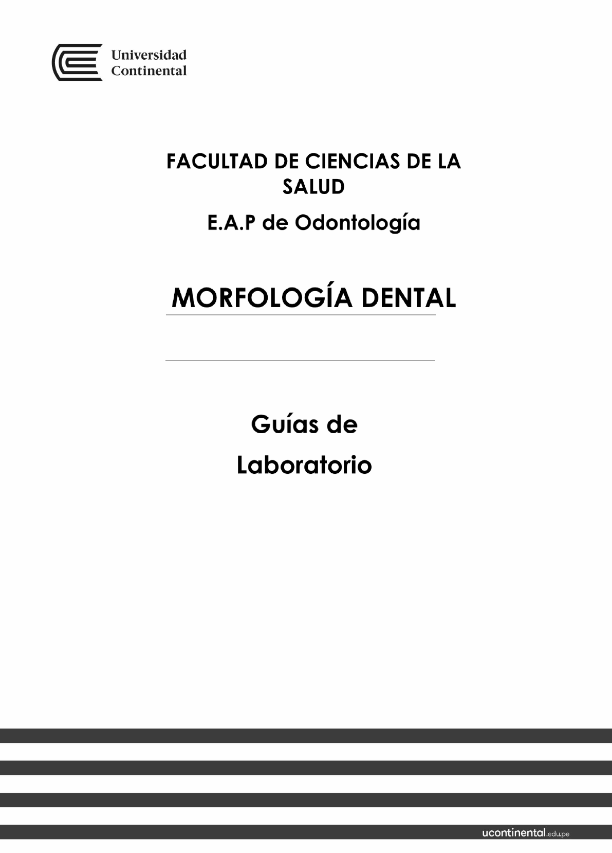 Visión Ser una de las 10 mejores universidades privadas del Perú al año 2020, reconocidos por nuestra excelencia académica y vocación de servicio, líderes en formación integral, con perspectiva global; promoviendo la competitividad del país. Misión Somos una universidad privada, innovadora y comprometida con el desarrollo del Perú, que se dedica a formar personas competentes, íntegras y emprendedoras, con visión internacional; para que se conviertan en ciudadanos responsables e impulsen el desarrollo de sus comunidades, impartiendo experiencias de aprendizaje vivificantes e inspiradoras; y generando una alta valoración mutua entre todos los grupos de interés. Universidad Continental Material publicado con fines de estudio 2017 Gestión Curricular ucontinental.edu.pe | 3 ÍNDICE VISIÓN 2 MISIÓN 2 ÍNDICE 3 NORMAS BÁSICAS DE LABORATORIO: QUINDECÁLOGO DEL CENTRO DE SIMULACIÓN 4 Introducción a la morfología dental 9 Diseño Del Instrumental del Gabinete de Mecánica Dental y sus Fundamentos Químicos y Ergonómicos para su Uso. Reconocimiento de las partes dentarias en macromodelos - obtención de una planimetría y su aplicación en un tallado 13 Tallado por desgaste de macromodelo de incisivos 1: troquel grosero 15 17 Tallado por Desgaste de Macromodelo de Incisivos 2: Troquel Alisado 20 Tallado por Desgaste de Macromodelo de Incisivos 3: Troquel Acabado / Relación de la Anatomía Pupar con La Exterior 22 Tallado por Desgaste de Macromodelo de Caninos / Réplica de Superficies Dentarias 24 1: Troquel Grosero y Alisado 26 Tallado por desgaste de macromodelo de caninos / réplica de superficies dentarias. 28 2: troquel alisado y acabado 30 32 Tallado por Desgaste de Macromodelo de Caninos / Detalles Finales. 34 3: Troquel Alisado y Acabado 37 Tallado por Desgaste de Macromodelo de Premolares / Morfología Comparada de Los Dientes Permanentes. 1: Troquel Grosero 39 Tallado por Desgaste de Macromodelo de Premolares / Morfología Comparada de los Dientes Temporales. 2: Troquel Grosero y Alisado 41 Tallado por Desgaste de Macromodelo de Premolares / Morfología de la Dentición Mixta. 3: Troquel Alisado y Acabado 44 Tallado por Desgaste de Macromodelo de Molares / Anomalías Dentarias de Número y Tamaño. 1: Troquel Grosero Tallado por Desgaste de Macromodelo de Molares / Anomalías Dentarias de Forma y Posición. 2: Troquel Grosero y Alisado Gestión Curricular ucontinental.edu.pe | 4 Tallado por Desgaste de Macromodelo de Molares / Anomalías Dentarias de Erupción y Estructura. 3: Troquel Alisado y Acabado Tallado por Desgaste Conjunto de Macromodelos Varios - Registros de Mordida: Lado de Trabajo y Balance Resumen y Discusión sobre la Evaluación Final Bibliografía Gestión Curricular ucontinental.edu.pe | 5 Normas y Protocolos de Seguridad Uso y Procedimientos Básicos del Laboratorio de Morfología Dental QUINDECÁLOGO DEL CENTRO DE SIMULACION CLÍNICA 1. Presentarse puntualmente, (CINCO MINUTOS ANTES DE LA HORA SEÑALADA) al laboratorio para cumplir los requisitos de ingreso en forma oportuna quedando prohibido salir del laboratorio durante la sesión, salvo urgencias o contingencias. 2. No ingresar bolsos loncheras ni más de una mochila o morral con los materiales esenciales requeridos para el desarrollo de la práctica correspondiente; utilizar los casilleros ubicados en la parte exterior del laboratorio para guardarlos. 3. Ser respetuoso en el trato con todos los miembros de la comunidad académica y el equipo de trabajo (estudiantes, docentes y administrativos). Mantener un adecuado comportamiento al interior del laboratorio, acatando y respetando las Normas del mismo. La música contenida y a un volumen moderado, por alternar sus propiedades tanto distractoras como de enfoque y concentración, generalmente se permite en actividades manuales que implican cierta rutina y repetición; siempre bajo responsabilidad y supervisión del docente. 4. Tanto estudiantes como docentes deben ingresar al laboratorio usando las barreras y la ropa adecuada de acuerdo a la actividad a realizar, para su protección frente a los riesgos presentes. Usar bata o mandil, delantal o chaqueta limpios, cabello recogido, uñas cortas; retirar anillos, pulseras, accesorios y gorros no médicos. 5. Se prohíbe estrictamente el ingreso de cualquier tipo de alimentos y envases, chicles, lápices de pasta o gel o plumones, aparatos de radio, etc., a las actividades del Centro de Simulación; además desconectar los celulares. No fumar, masticar chicle ni ninguna otra clase de alimentos ni bebidas dentro del laboratorio. 6. No exceder la capacidad máxima para optimizar el flujo intramural en el Centro previniendo de esta manera, entre otras cosas, el desorden en el traslado de mobiliario y sillas para compensar la falta de espacio y comodidad de los estudiantes; así mismo evitar deambular con los elementos de protección personal fuera de su área de trabajo. 7. Lavarse las manos con agua y jabón antiséptico al ingreso y salida del laboratorio, antes y después de cada procedimiento, para evitar la transferencia de grasa corporal a los simuladores. 8. Utilizar los equipos de simulación según normas de manejo sugeridas por los fabricantes y proveedores. Antes de utilizar el equipo y el simulador verificar las condiciones en que los recibe, con el propósito de reportar cualquier anomalía inmediatamente al docente responsable de la actividad y éste a su vez al personal de mantenimiento. 9. Usar sólo portaminas o lápices de carbón. NO BOLÍGRAFOS, MARCADORES o cualquier otro producto que dañe los simuladores, ya que existe el riesgo de tinción de los maniquíes y equipos. 10. Toda manipulación de simuladores debe ser con guantes de látex y demás elementos de bioseguridad que así lo requiera el procedimiento que se vaya a realizar, con el fin de evitar deterioro de los simuladores. Todo procedimiento realizado en simuladores de tareas debe cumplir con el paso previo de lubricar 
