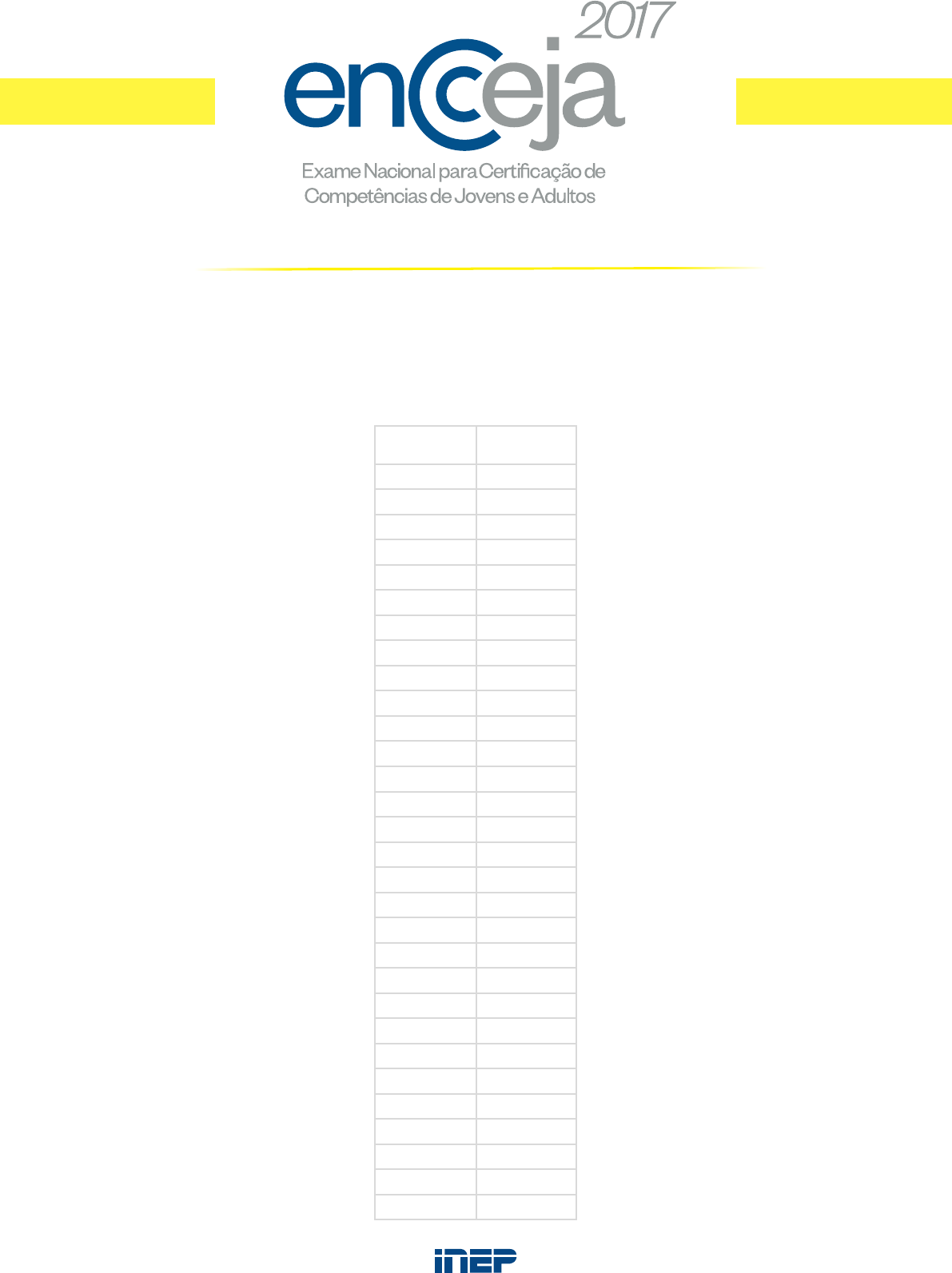 Ensino Fundamental Amarela Nacional QUESTÕES GABARITO 31 C 32 C 33 A 34 A 35 D 36 D 37 A 38 D 39 D 40 B 41 A 42 B 43 D 44 B 45 D 46 C 47 B 48 C 49 C 50 C 51 D 52 B 53 B 54 D 55 A 56 D 57 B 58 A 59 A 60 C Prova IV - Tarde Matemática