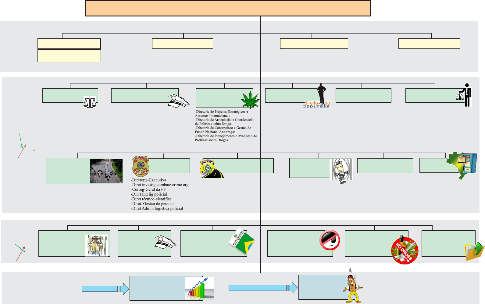 Secretaria Nacional de Justiça Secretaria Nacional de Segurança Pública Conselho Nacional de Segurança Departamento Policia Rodoviária Feceral Departamento Polícia Federal Secretaria Nacional do Consumidor Conselho Nacional Combate à Pirataria e Delitos contra a Propriedade Intelectual Defendoria Publica da União Secretaria Nacional de Políticas sobre Drogas -Departamento de Estrangeiros -Departamento de Justiça, Classificação, Titulos e Qualificação -Departamento de Recuperação de Ativos e cooperação jurídica internacional. -Departamento de proteção e defesa do consumidor -Dept Elaboração Normativa -Dept processo Legislativo -Diretoria-Executiva -Diretoria politicas penitencarias -Diretoria do Sistema Penitenc Federal -Diretoria de Operações -Diretoria de Inteligência -Diretoria de Logística -Diretoria de Projetos Especiais -Dept Politica Judiciária -Departameno de politicas, programas e projetos -depart pesquisa, analise de inf. desenvol. de pessoal em segur. publica -Dept execução e avaliação plano nacional seg publica -Dept força nacional seg publica Conselho Nacional de Políticas sobre Drogas CONAD Conselho Federal Gestor Fundo de Defesa dos Direitos Difusos Departamento Penitenciário Nacional Secretaria Reforma do Judiciário Secretaria Assuntos Legislativos Secretaria Extraordinária de Segurança de grandes eventos Conselho Administrativo de Defesa Econômica Fundação Nacional do Índio Comissão de Anistia Decreto 6.061/07 Estrutura Regimental Ministério da Justiça Secretaria Executiva Subsecretaria de Planejamento, Orçamento e Administração Consultoria Jurídica Gabinete do Ministro Conselho Nacional de Politica Criminal e Penitenciária Autarquia: Fundação Pública: Conselho Nacional de Arquivos CONARQ Arquivo Nacional O rg ã o s d e a o M in is tr o d e E s ta d o A s s is te n c ia D ir e ta e I m e d ia ta O rg ã o s s p e c íf ic o s in g u la re s E S O C rg ã o s o le g ia o d s E n ti d a d e s V in c u la d a s E S S E s p e c íf ic o s in g u la re s e c re ta ri a s C O n s e lh o s Policia Rodoviária Federal órgão permanente, integrante da estrutura do Ministério da Justiça VIII - implementar as medidas da Política Nacional de Segurança e Educação de Trânsito IV - executar serviços de prevenção, atendimento de acidentes e salvamento de vítimas nas rodovias federais; Art 2° O documento de identidade funcional dos servidores policiais da Polícia Rodoviária Federal confere ao seu portador livre porte de arma e franco acesso aos locais sob fiscalização do órgão, nos termos da legislação em vigor, assegurando - lhes, quando em serviço, prioridade em todos os tipos de transporte e comunicação. art 20 da Lei 9.503/97 decreto nº 1.655, de 3 de outubro de 1995 a ordem preservar incolumidade das pessoas o patrimônio da União de terceiros XI - fiscalizar o nível de emissão de poluentes e ruído produzidos pelos veículos automotores ou pela sua carga, de acordo com o estabelecido no art. 66, além de dar apoio, quando solicitado, às ações específicas dos órgãos ambientais. Página 1 Página 2